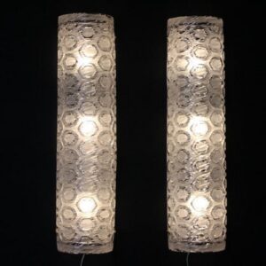 Paire de grandes appliques murales cylindriques en verre de Murano transparent et blanc texturé