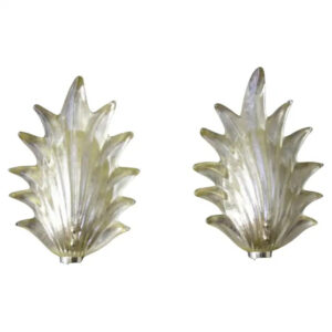 Paire de grandes appliques en verre de Murano transparent en forme de feuille de palmier de style Barovier