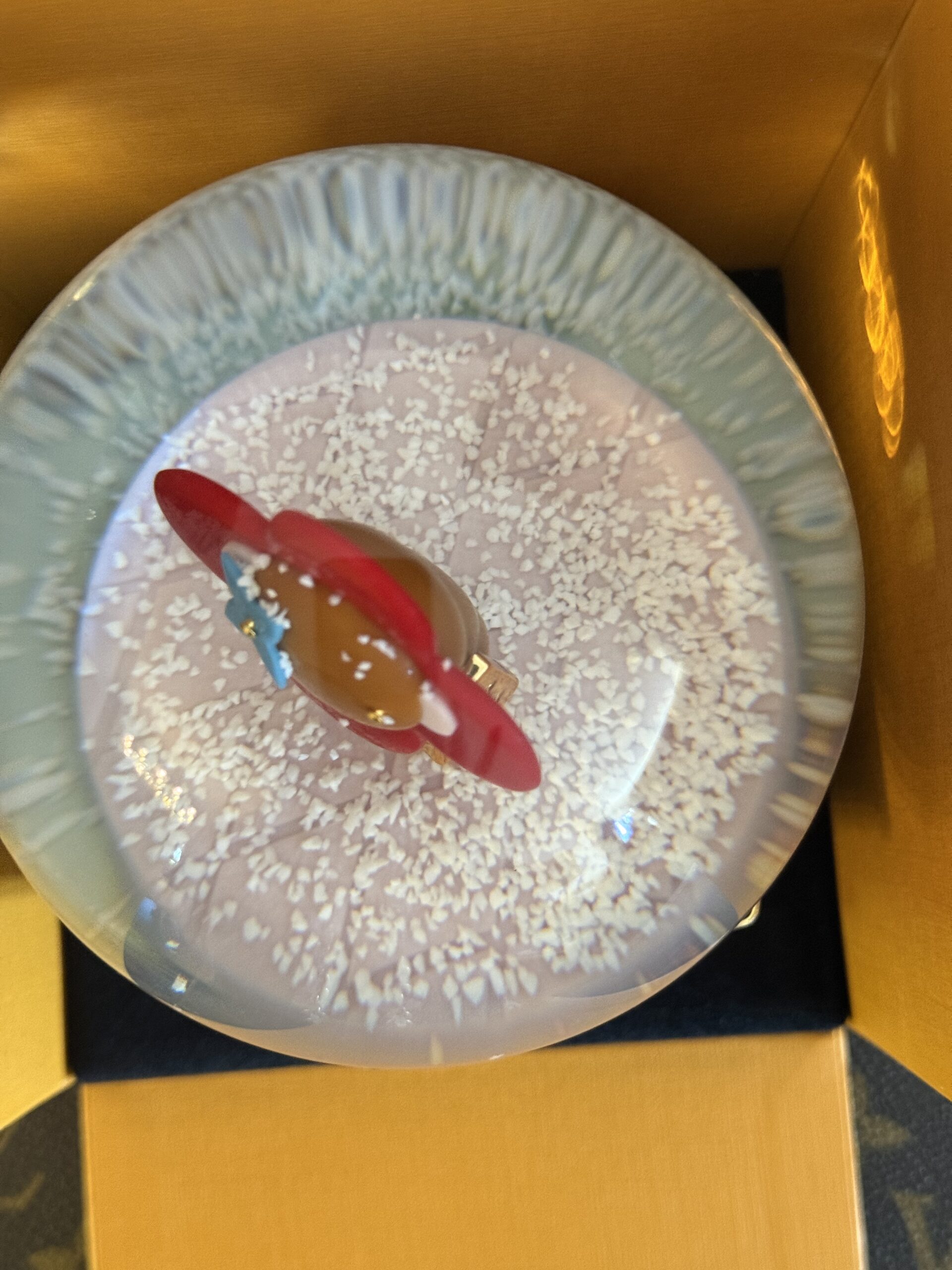 Elle a été utilisée comme objet de décoration, accessoire de sac, puis même comme icône de la haute joaillerie. Cette boule à neige Louis Vuitton Vivienne Doll avec boîte à musique est un objet luxueux et de collection. Elle est vêtue d’une tenue marron et rouge, avec des flocons de neige qui virevoltent tout autour pour ajouter une touche poétique. Cette boule repose sur une malle monogrammée Vuitton. Elle est dotée de coins et d’une serrure dorés. Pour remonter la boîte à musique, il suffit de tourner un bouton en forme de fleur LV. La boîte à musique ajoute une touche de magie, ce qui en fait un cadeau unique et ravissant. Elle apporte une touche élégante et raffinée à tout décor intérieur.