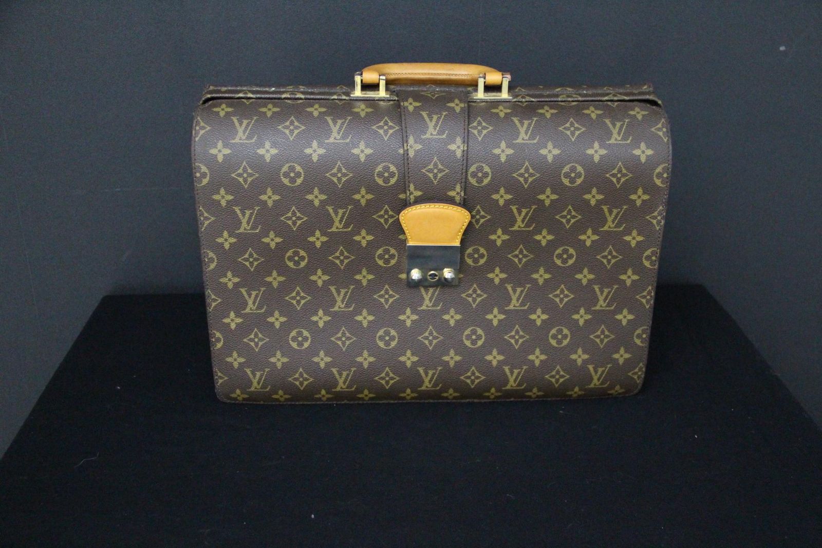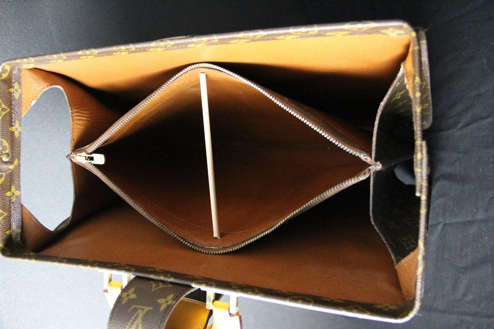 Cette mallette Louis Vuitton très originale est dotée d’une toile monogrammée et d’une serrure en laiton. Elle possède également une magnifique poignée en cuir légèrement patinée et en bon état.