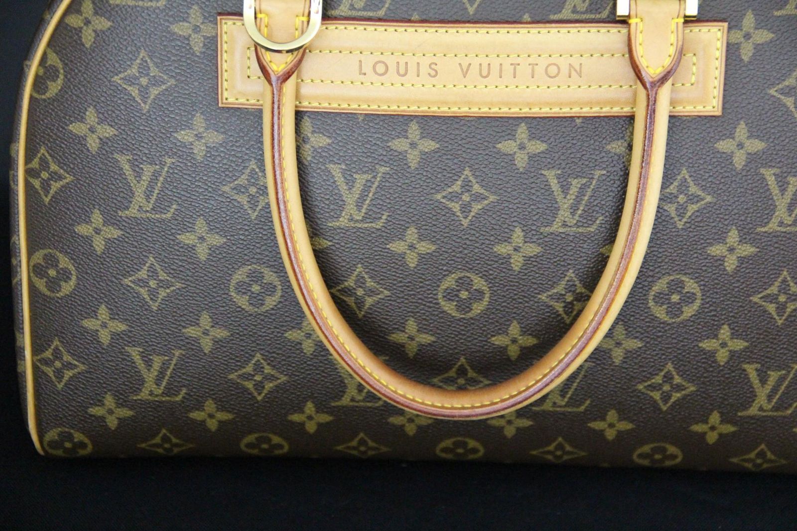 Cette pièce emblématique et intemporelle de la maison Louis Vuitton est confectionnée dans la toile Monogram signature de la marque, avec des finitions en cuir vachetta naturel et des ferrures dorées polies. Il s’agit d’un élégant sac à poignées supérieures structuré. Habituellement, ce modèle est disponible en toile à carreaux, très rarement en toile Monogram. Il s’agissait d’une édition spéciale. Il comporte également son code de date.