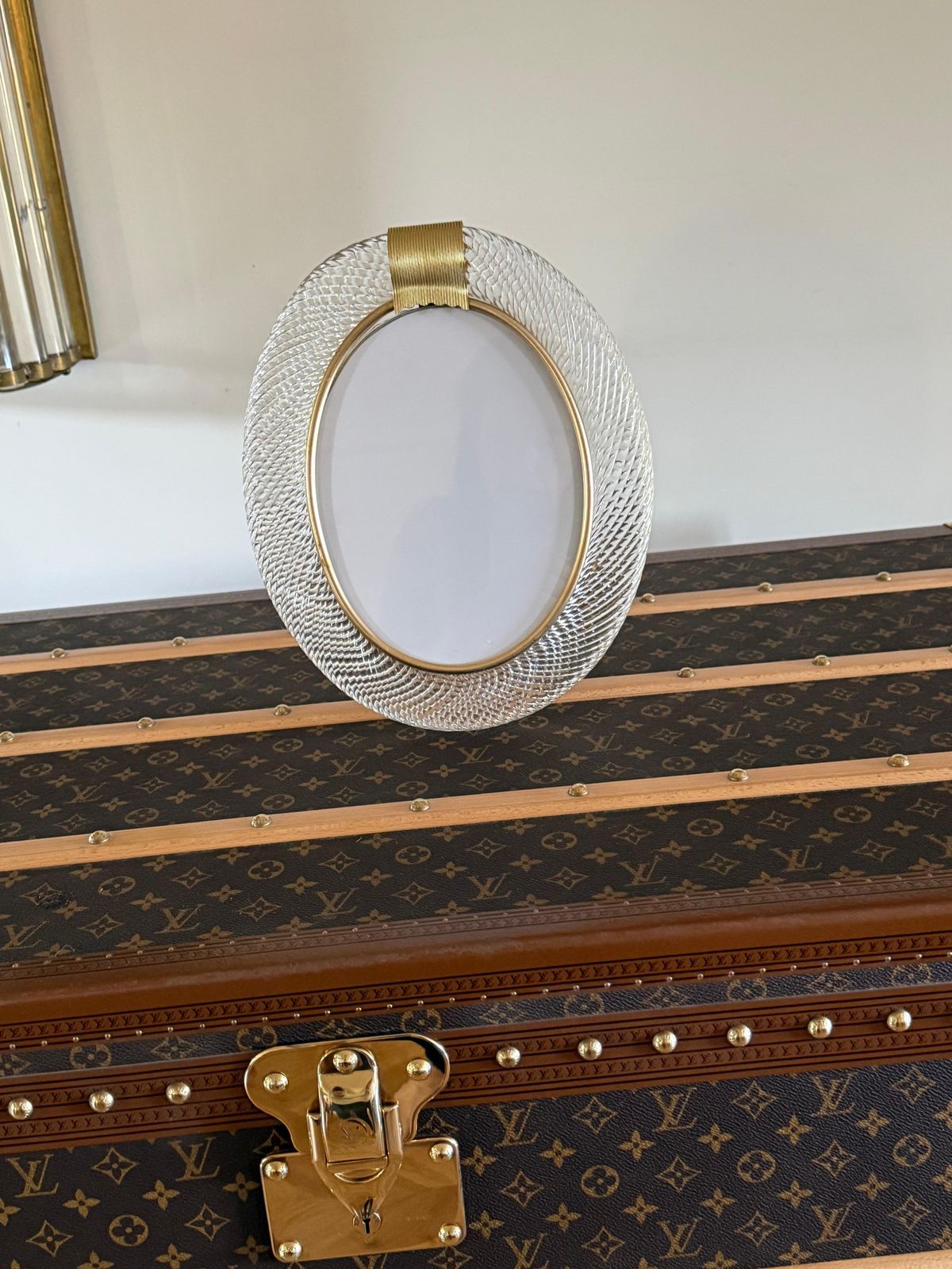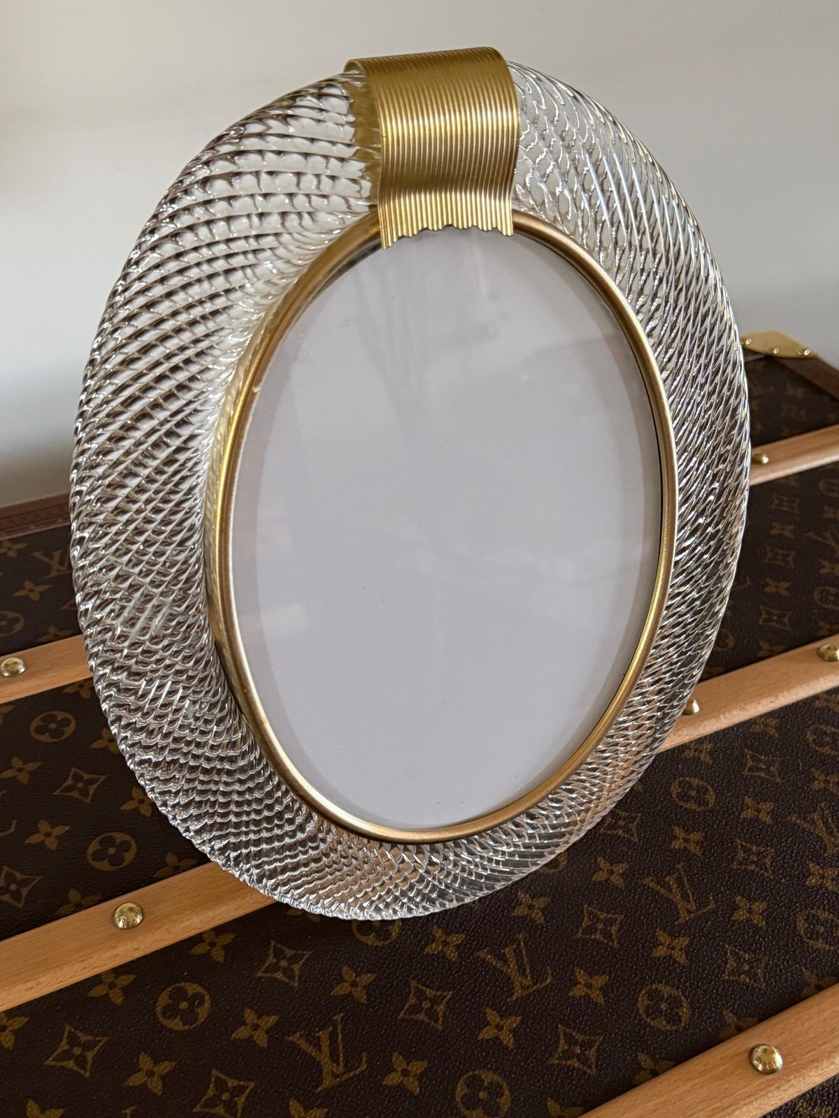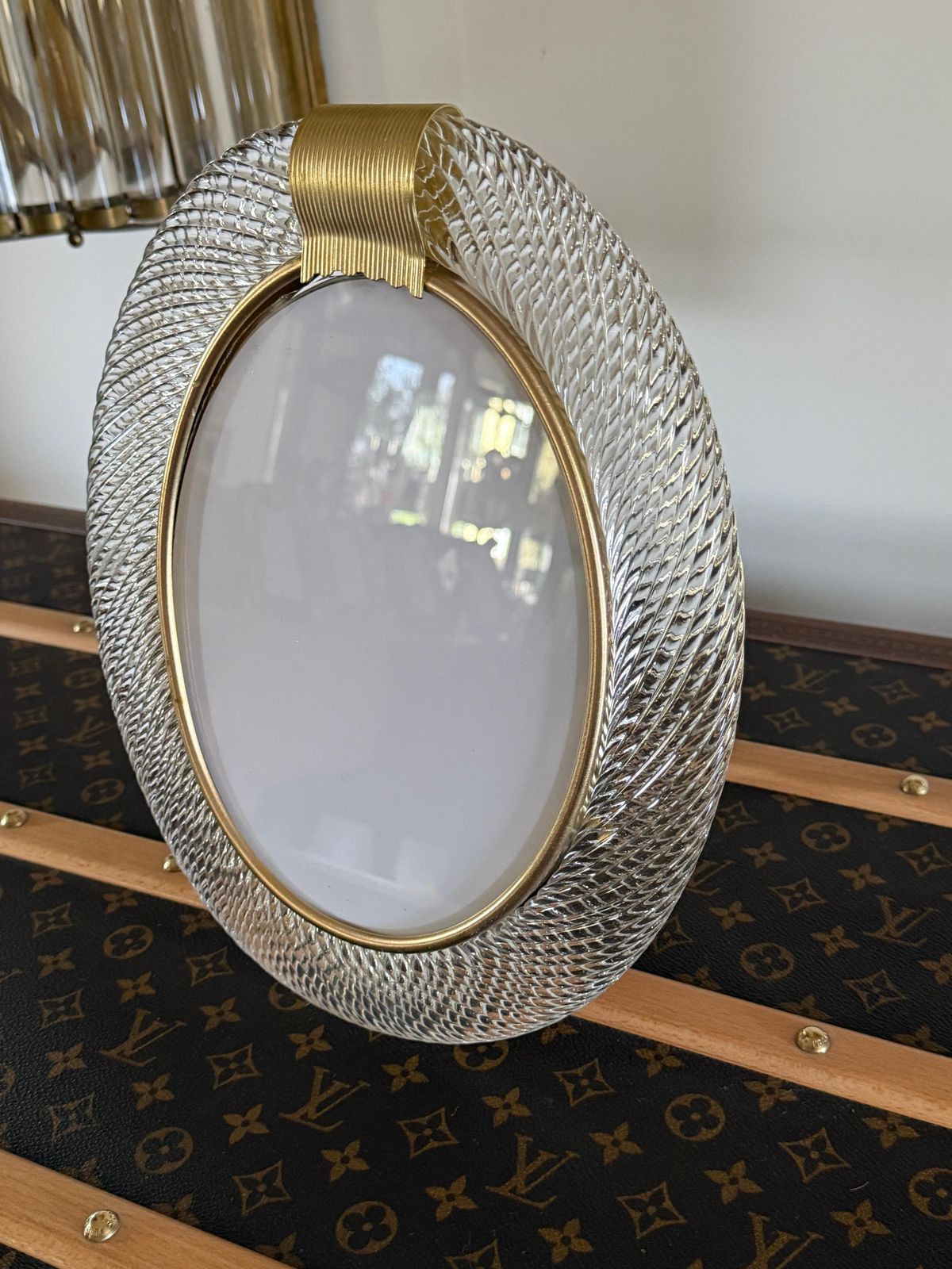 Ce magnifique cadre photo vertical est purement dans la fabrication du verre vénitien. La technique utilisée pour obtenir ce riche effet de corde torsadée est appelée « torciglione » et requiert des artisans hautement qualifiés.