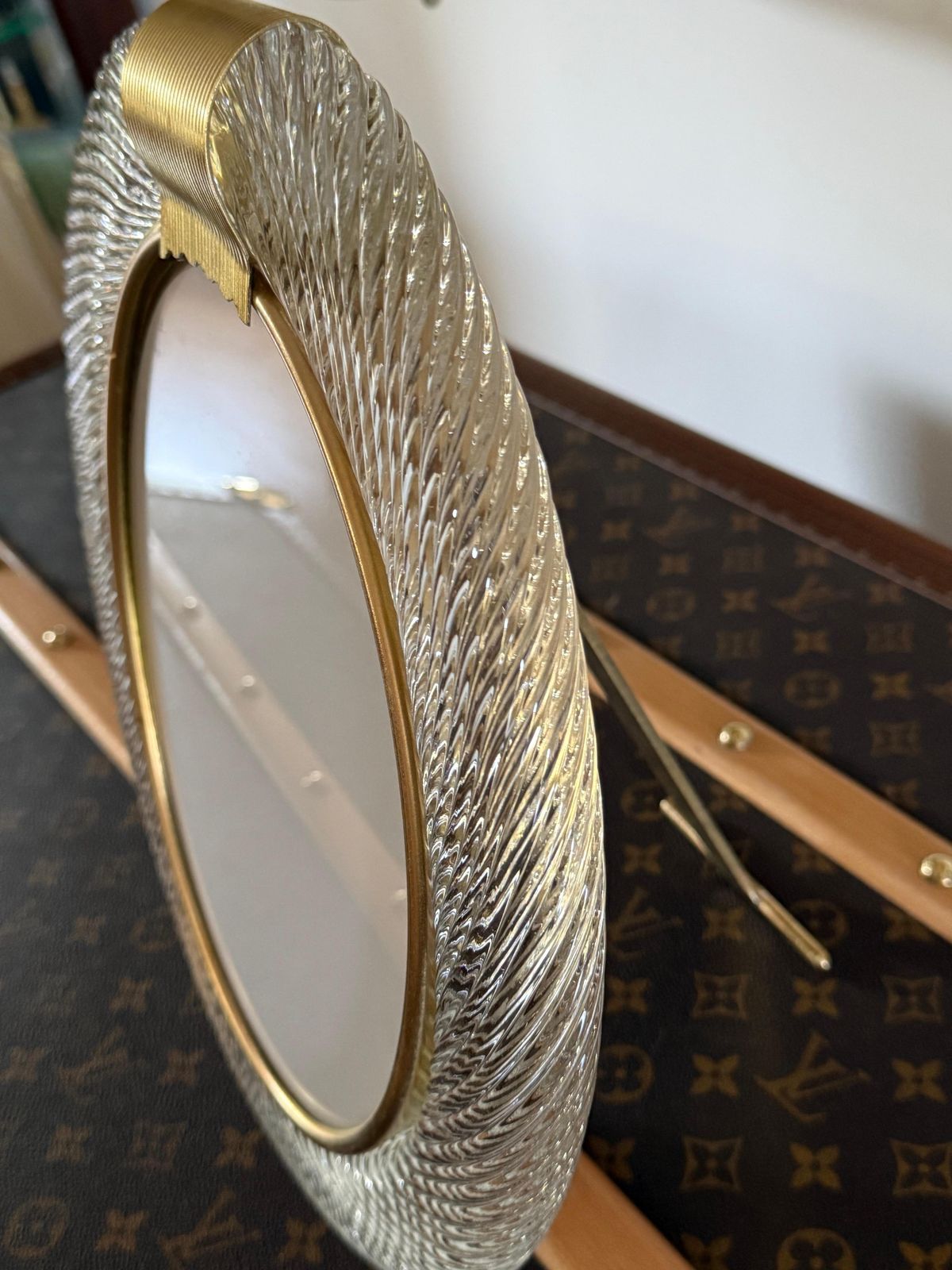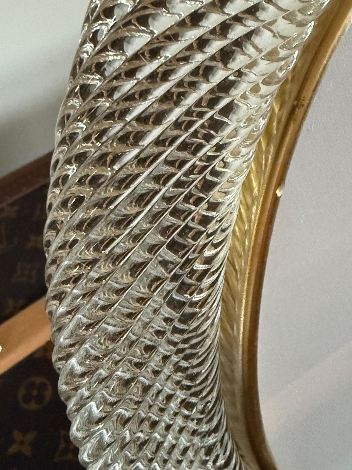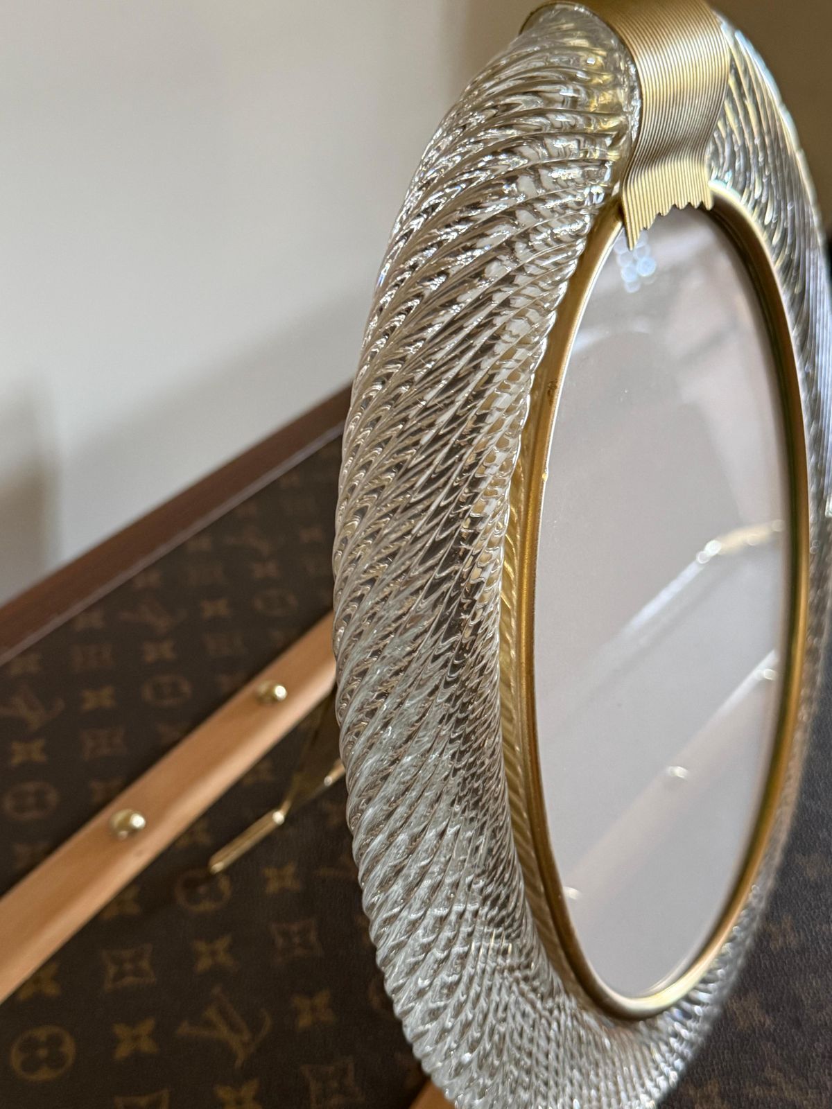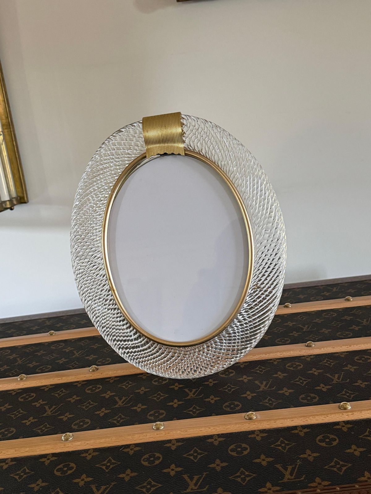 Ce magnifique cadre photo vertical est purement dans la fabrication du verre vénitien. La technique utilisée pour obtenir ce riche effet de corde torsadée est appelée « torciglione » et requiert des artisans hautement qualifiés.