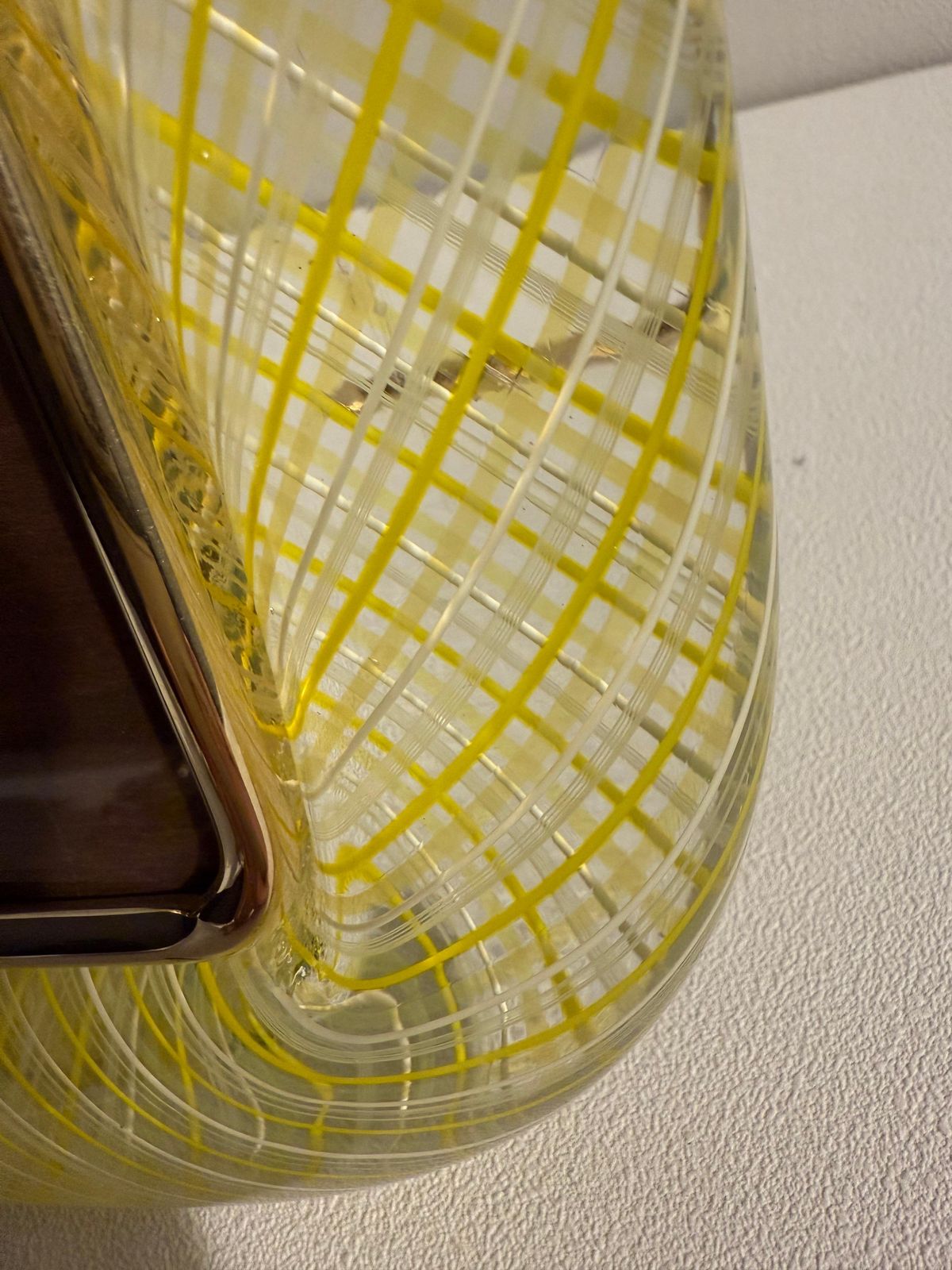 « Filigrana » est une technique traditionnelle qui a vu le jour au 16e siècle. Cette technique requiert des artisans très compétents. Ils utilisent de longues tiges de verre qu’ils superposent, entrelacent et fusionnent. Chaque tige est enroulée autour d’un cylindre de verre et soufflée. À la fin de cette opération, le maître verrier doit maintenir chaque ligne de couleur séparée, avec la même épaisseur et la même courbure autour du verre, aussi vite qu’il le peut avant que la température ne baisse. Le résultat de cette technique est presque hypnotique car il produit un effet de filet torsadé parfait. Il peut être assorti à des intérieurs vintage, classiques, art déco, mid century ou contemporains et sera parfait pour orner vos bibliothèques, vos consoles, vos étagères ou vos coffres…