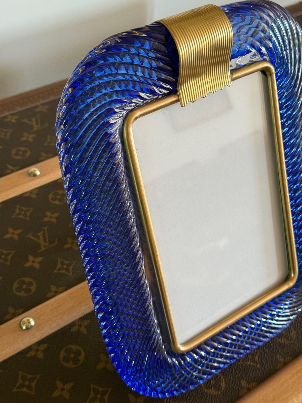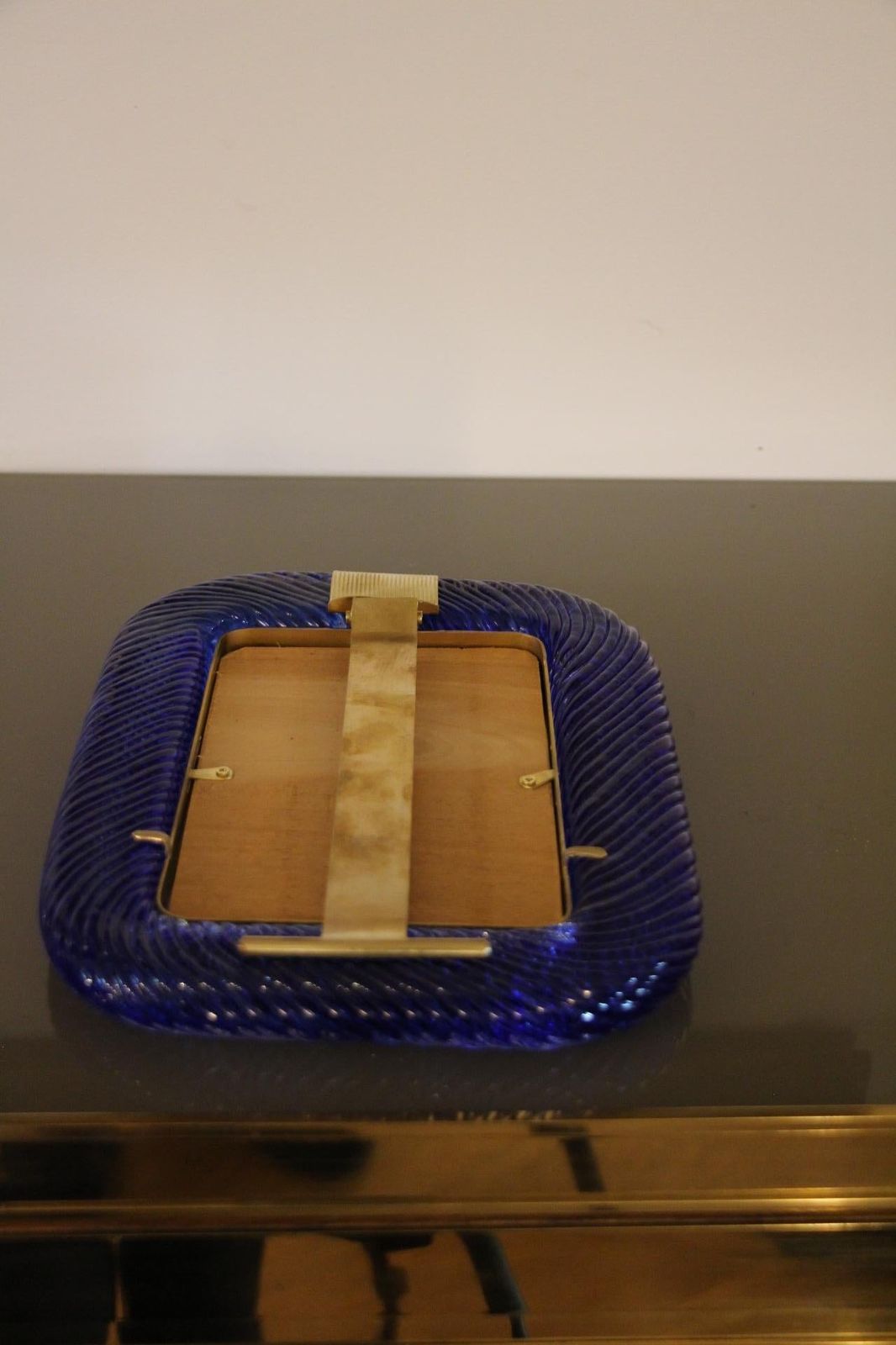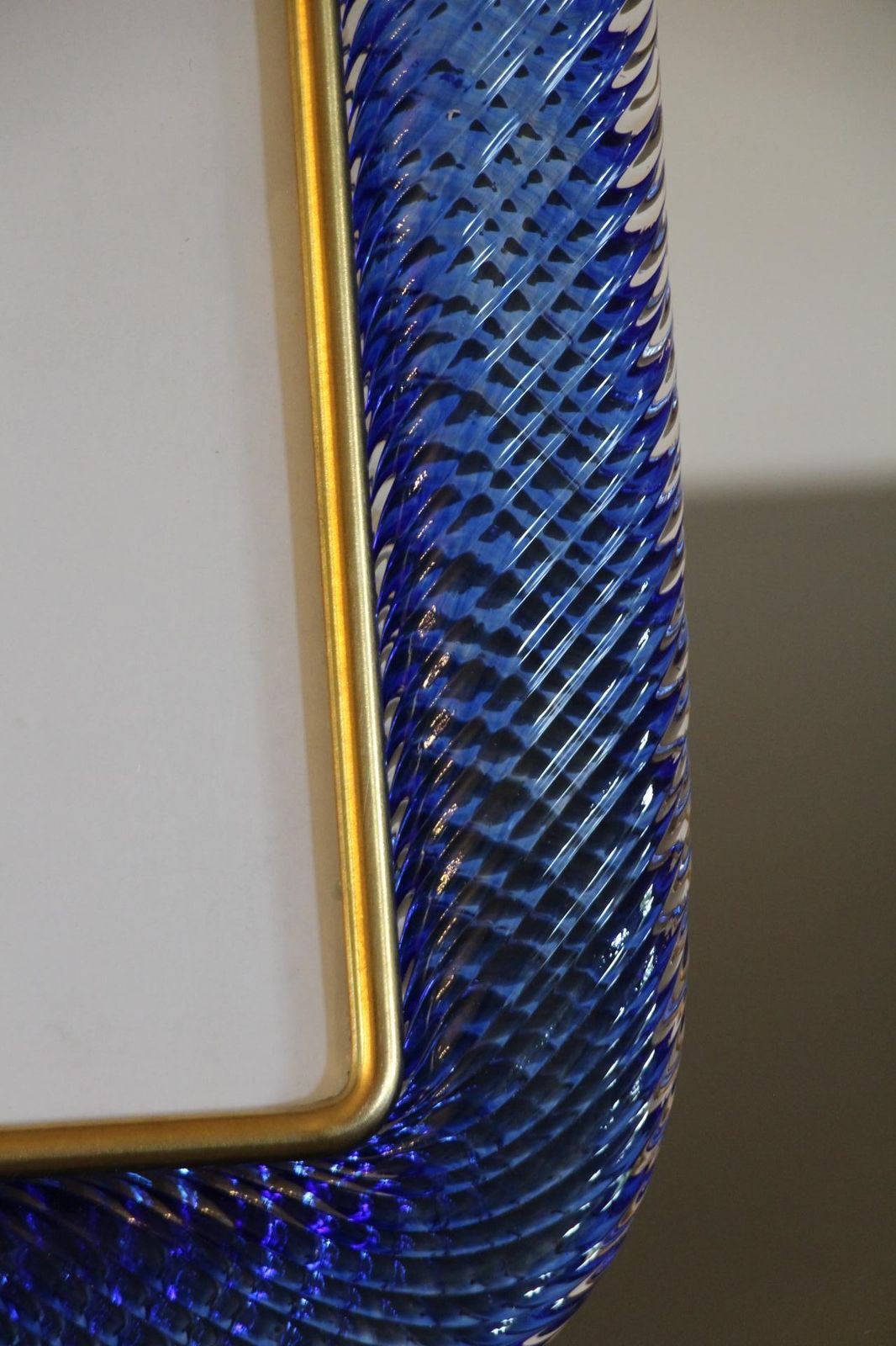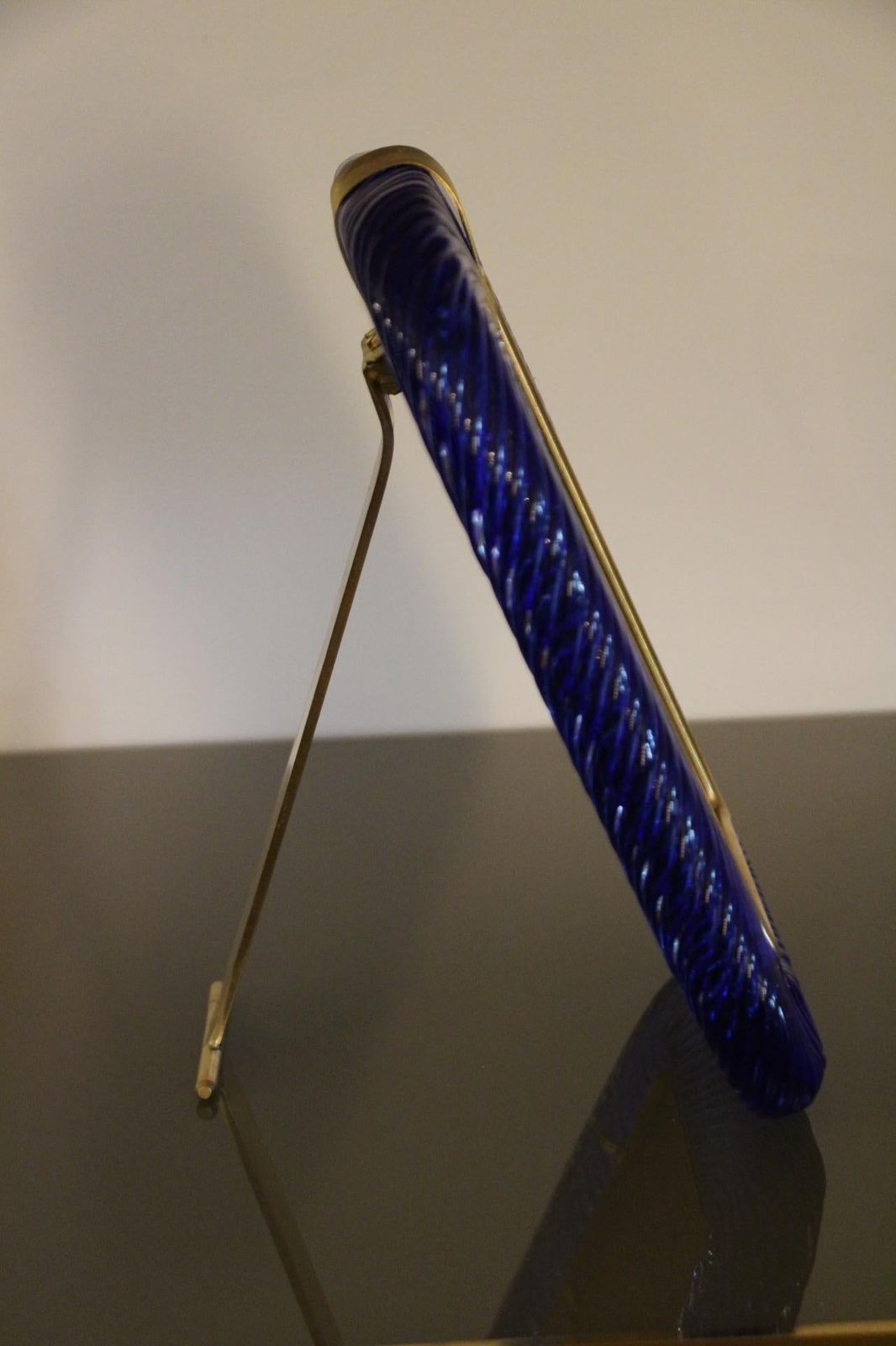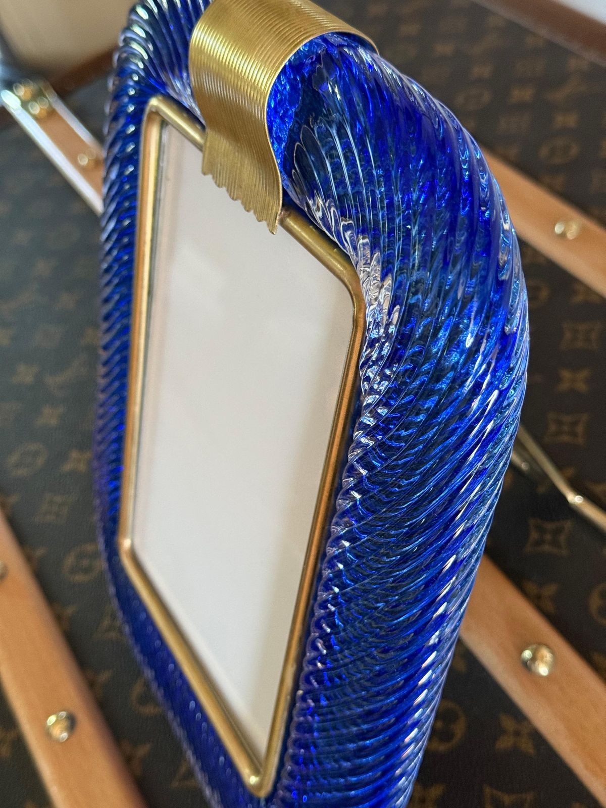 Ce magnifique cadre photo vertical est purement dans la tradition de la fabrication du verre vénitien. La technique utilisée pour obtenir ce riche effet de corde torsadée est appelée « torciglione » et requiert des artisans hautement qualifiés. Ce cadre photo est en verre soufflé de Murano d’un bleu saphir très vif, recouvert de cristal. Il peut être assorti à des intérieurs vintage, classiques, art déco, mid century ou contemporains et sera parfait pour orner vos bibliothèques, vos consoles, vos étagères ou vos coffres.