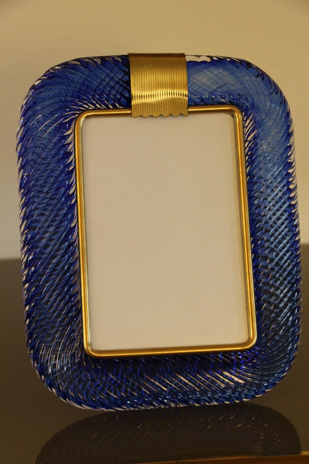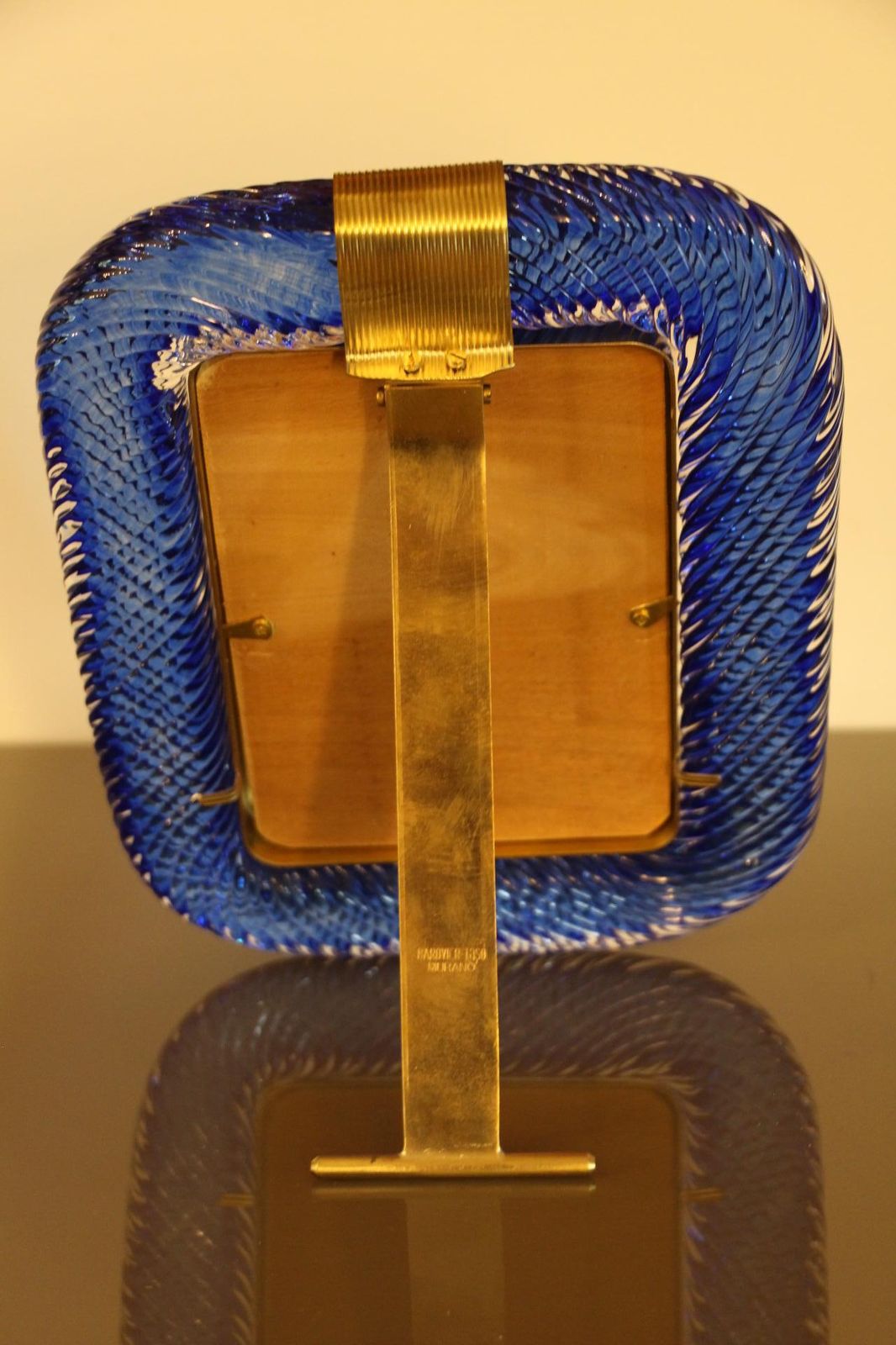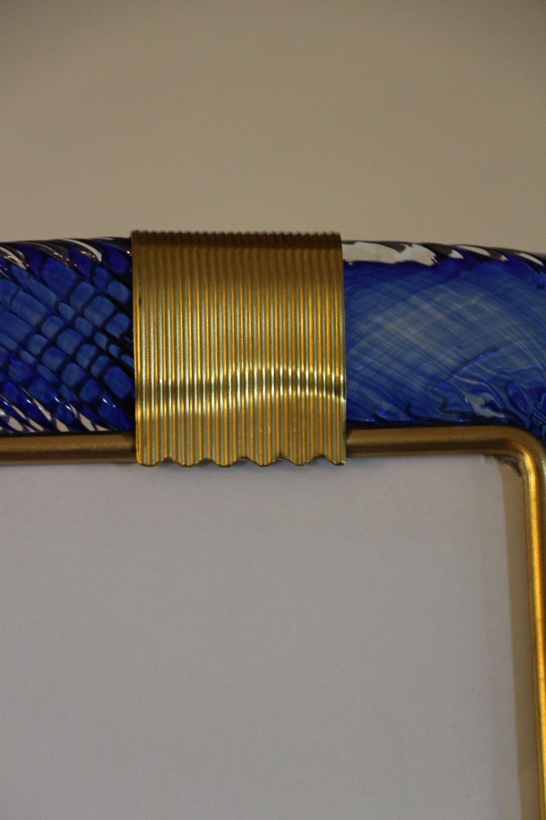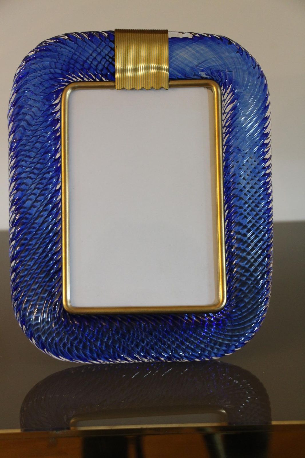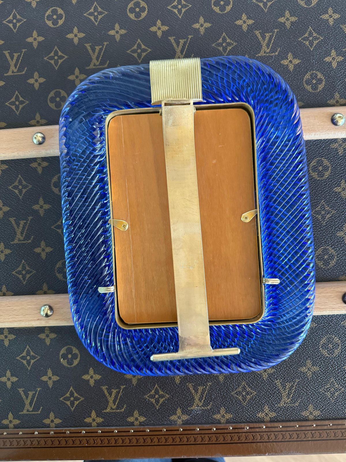 Ce magnifique cadre photo vertical est purement dans la tradition de la fabrication du verre vénitien. La technique utilisée pour obtenir ce riche effet de corde torsadée est appelée « torciglione » et requiert des artisans hautement qualifiés. Ce cadre photo est en verre soufflé de Murano d’un bleu saphir très vif, recouvert de cristal. Il peut être assorti à des intérieurs vintage, classiques, art déco, mid century ou contemporains et sera parfait pour orner vos bibliothèques, vos consoles, vos étagères ou vos coffres.