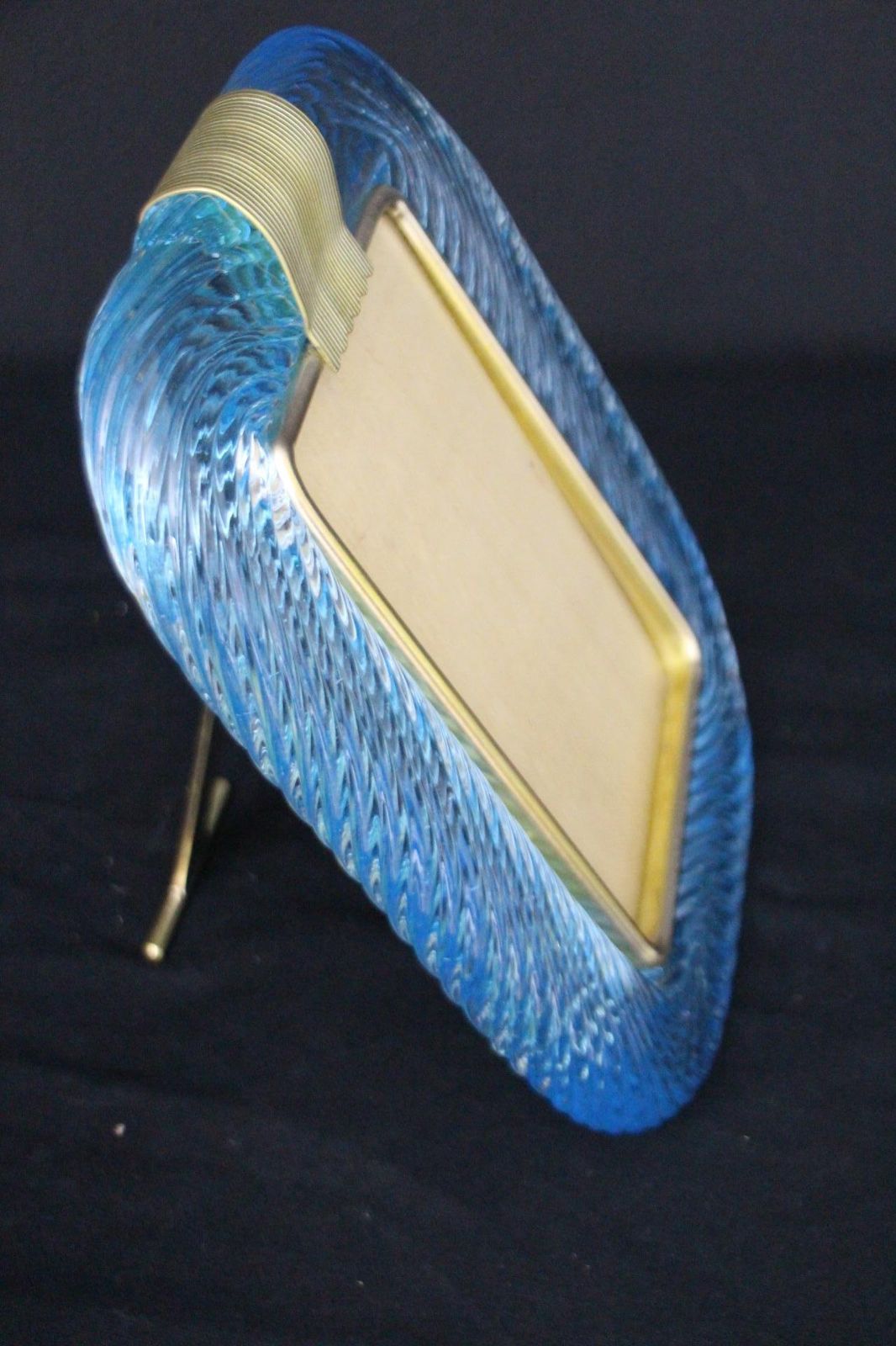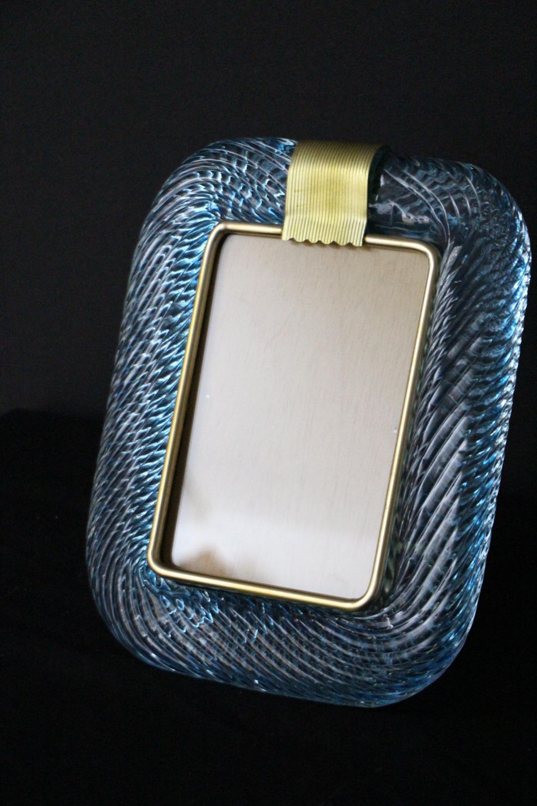 Ce magnifique cadre photo vertical est purement dans la tradition de la fabrication du verre vénitien. La technique utilisée pour obtenir ce riche effet de corde torsadée est appelée « torciglione » et requiert des artisans hautement qualifiés.