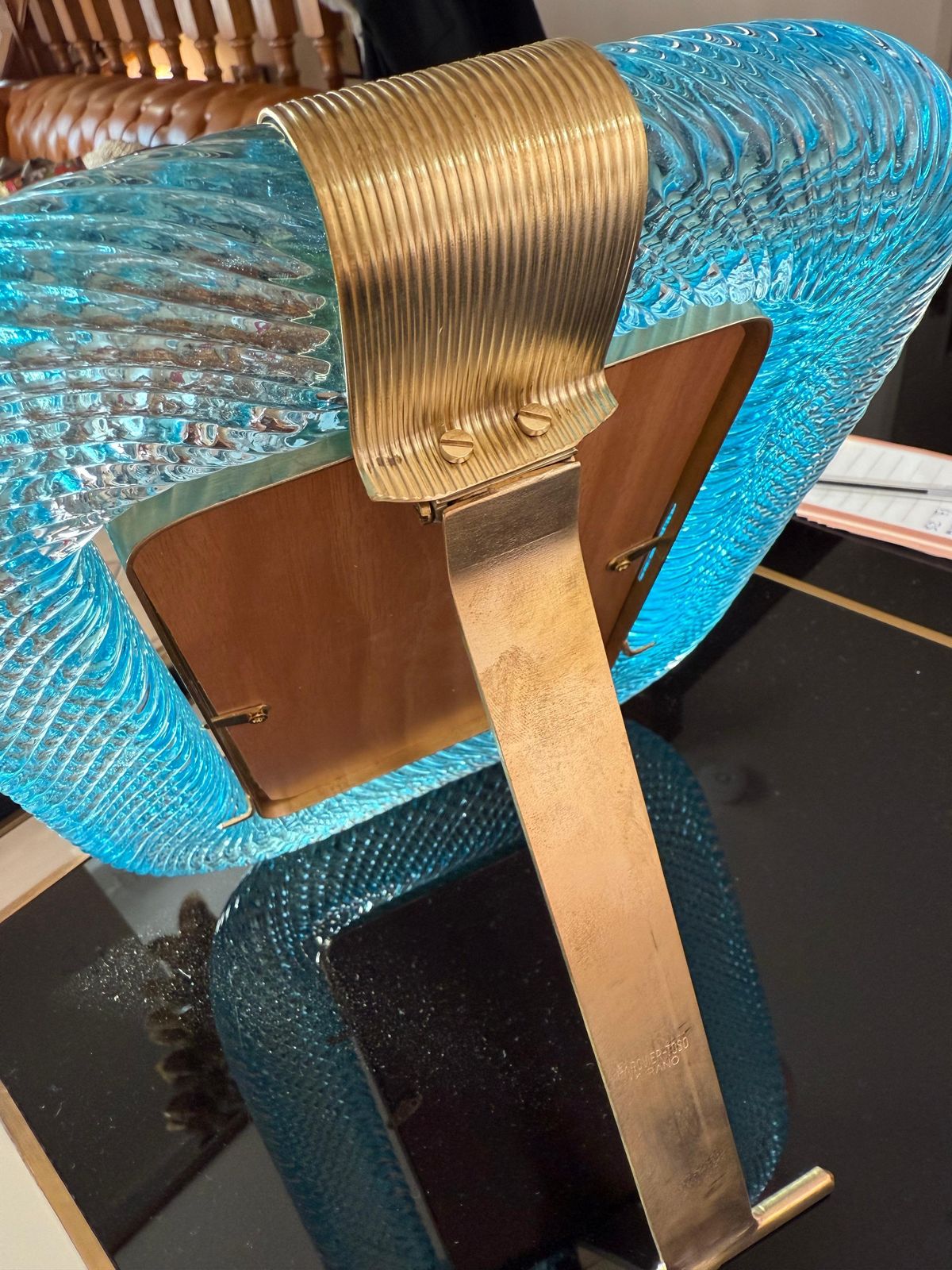 • Matériaux et techniques: Verre d’art, Verre brun, Laiton, Verre de Murano, Fait main