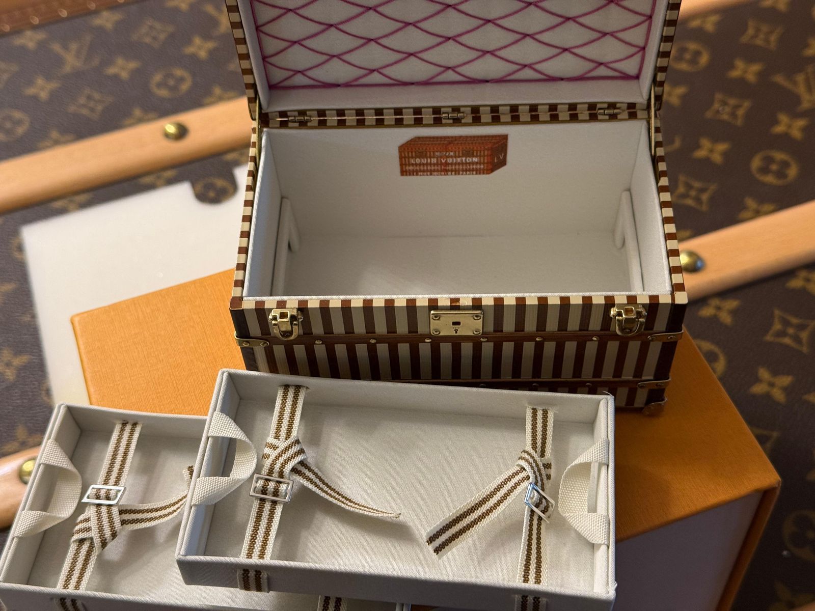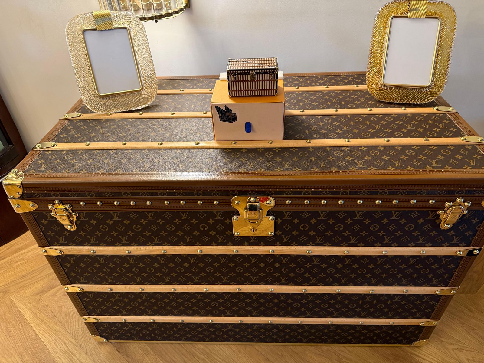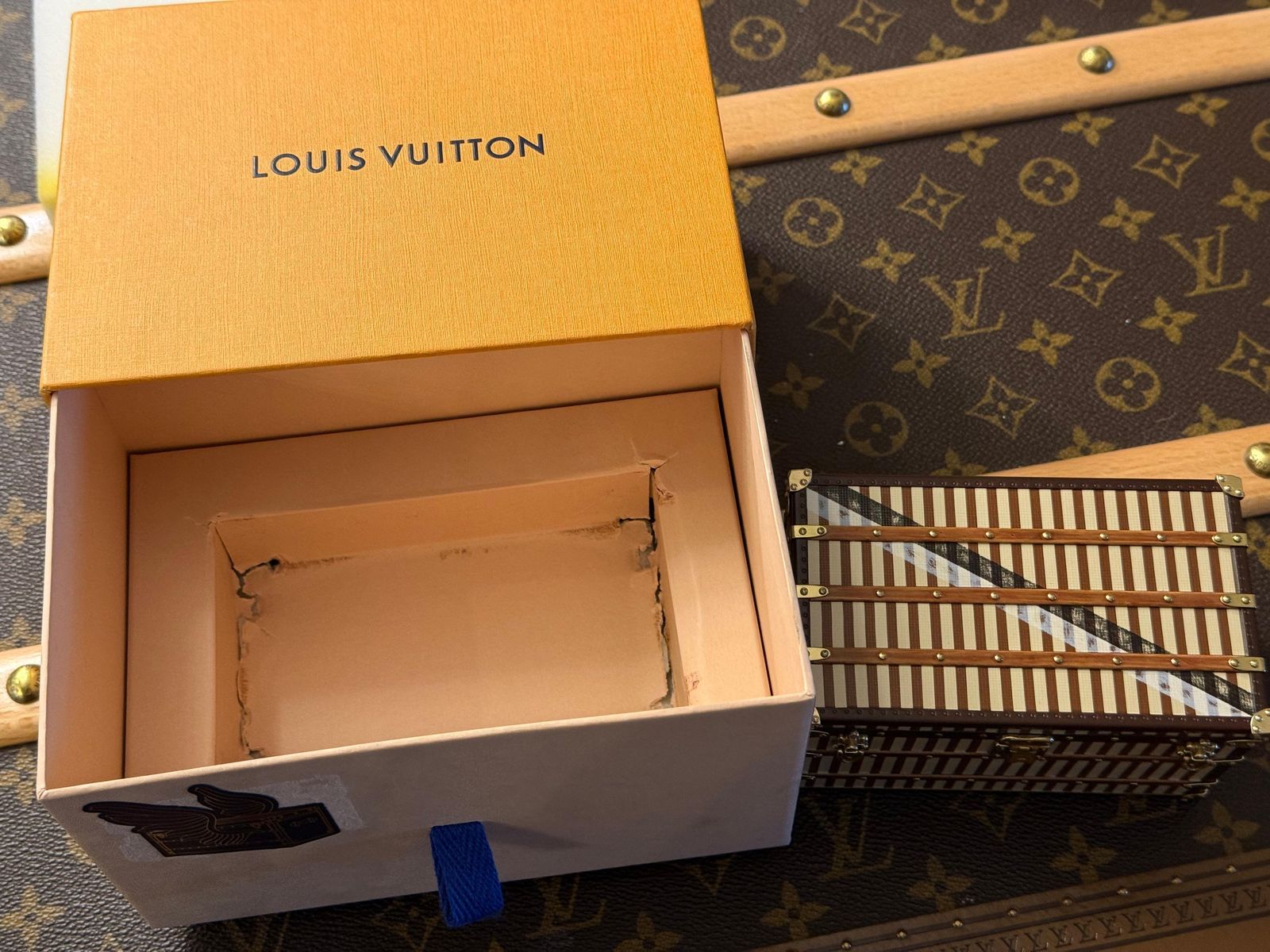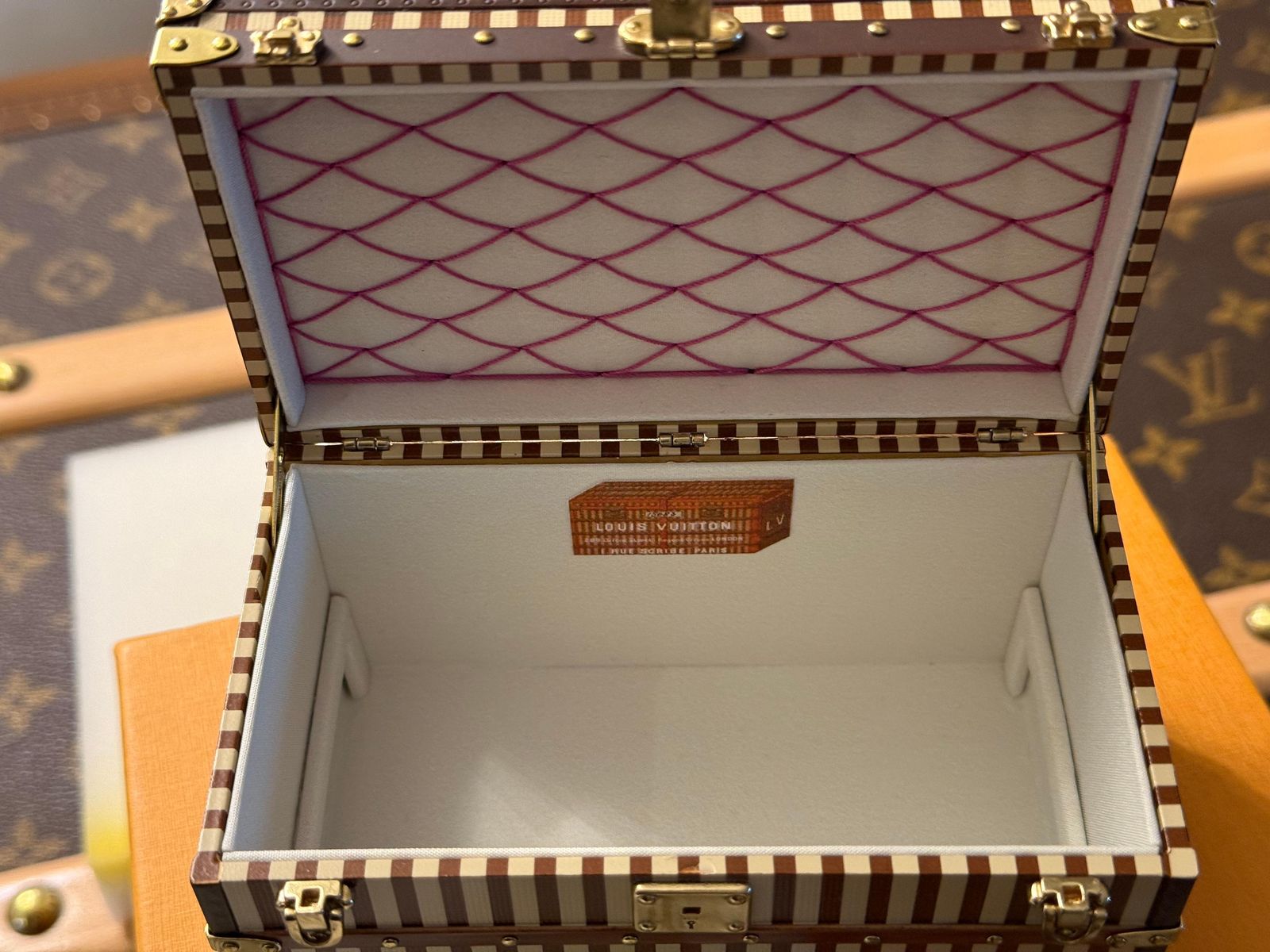 Presse-papier Louis Vuitton, boîte à bijoux Louis Vuitton, malle Vuitton