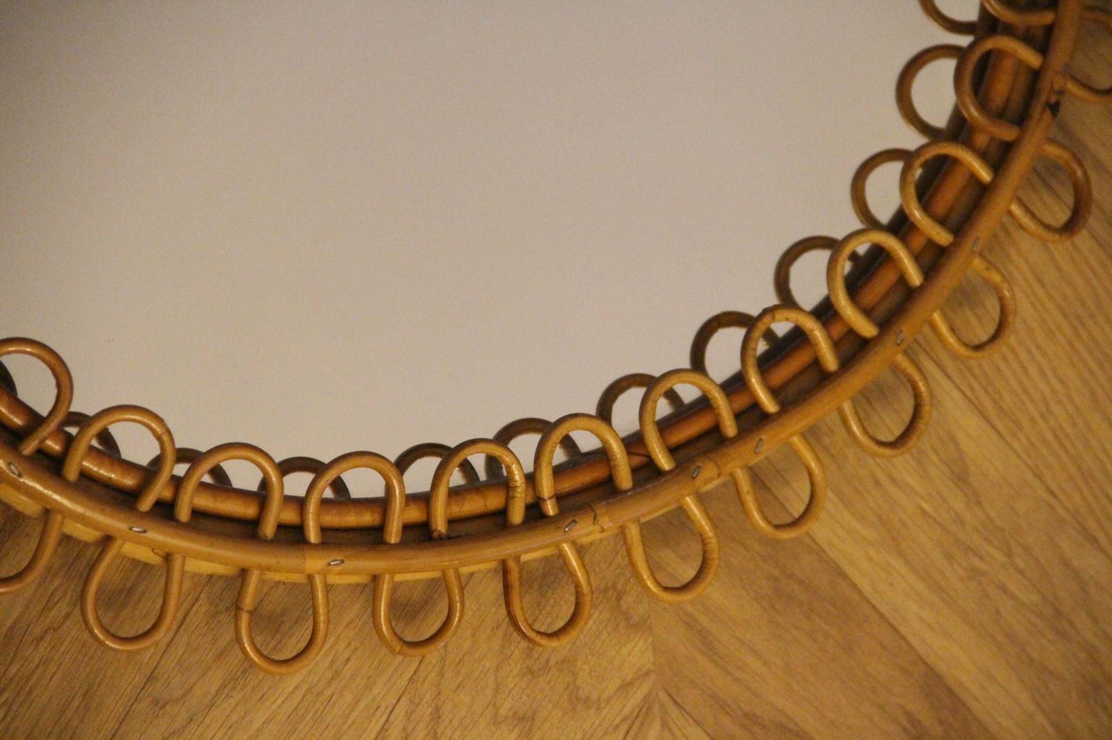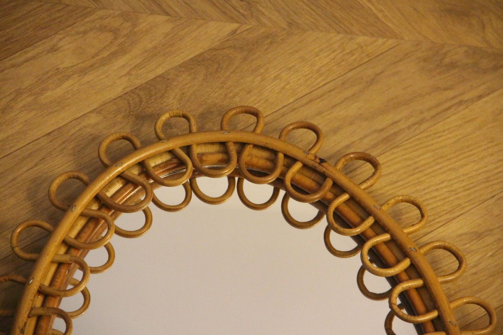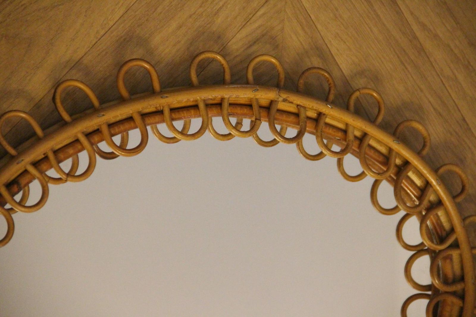 C’est la pièce idéale pour recréer un style des années 1960 ou un look inspiré de la Riviera. Il présente une magnifique patine couleur miel et son miroir est très clair. Son dos est recouvert de carton. Il peut être accroché dans un hall d’entrée, un salon, une chambre ou un bureau pour créer une ambiance très cool et tendance.