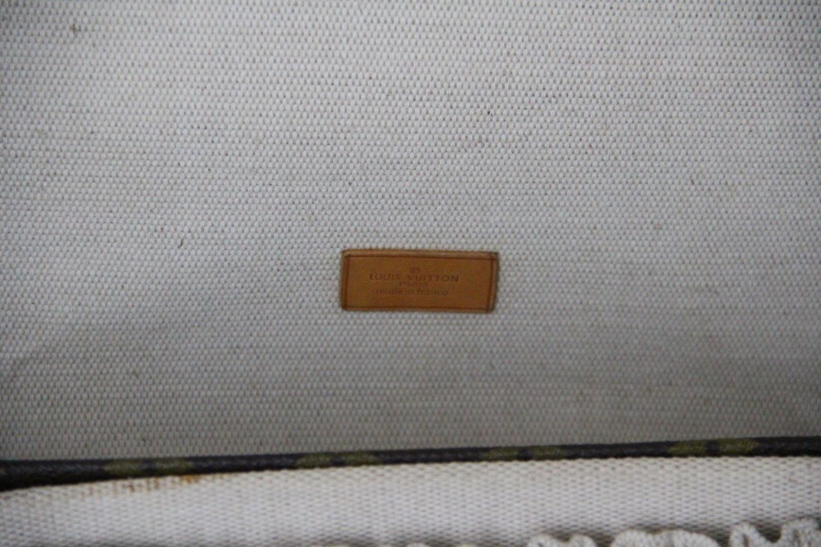 Intérieur d’origine beige avec poche. Intérieur très propre, sans tache ni odeur. Étiquette Louis Vuitton en cuir à l’intérieur. Pieds de protection en laiton doré. Elle est livrée avec sa boîte Louis Vuitton d’origine. Vous pouvez voyager avec cette magnifique pièce ou simplement l’utiliser comme élément de décoration haut de gamme, par exemple comme table de chevet, table d’appoint ou boîte à bijoux. Cette taille n’est plus disponible dans les boutiques Louis Vuitton, c’est une véritable pièce de collection.