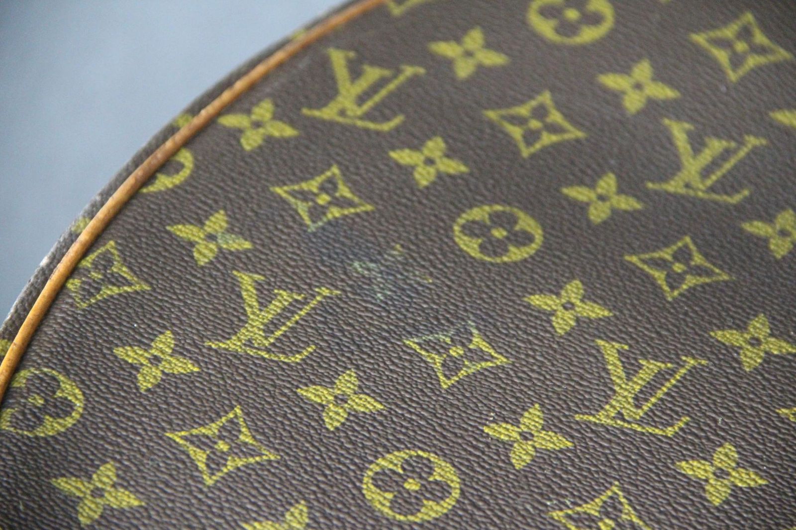 Veuillez noter que sa bandoulière en cuir a été refaite récemment par Louis Vuitton, ainsi que les coutures à l’arrière. Son état est correct, mais veuillez noter que, comme le montrent les photos, sa surface supérieure est légèrement ondulée.