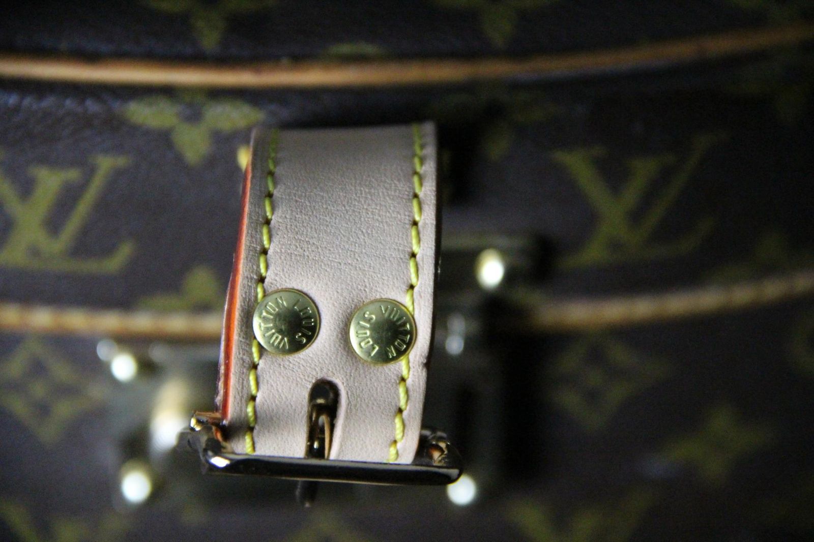 Veuillez noter que sa sangle en cuir a été refaite récemment chez Louis Vuitton, ainsi que les coutures à l’arrière. Son état est correct, mais veuillez noter que, comme le montrent les photos, sa surface supérieure est légèrement ondulée.