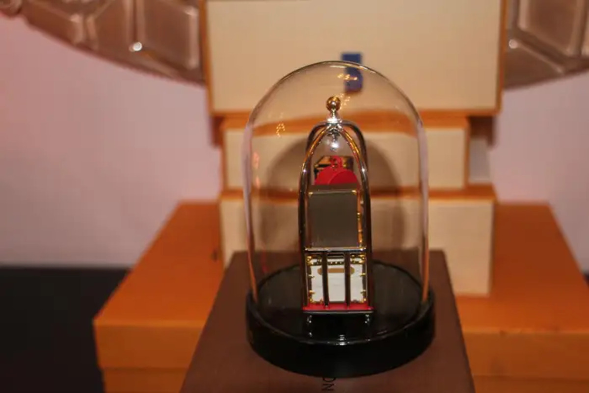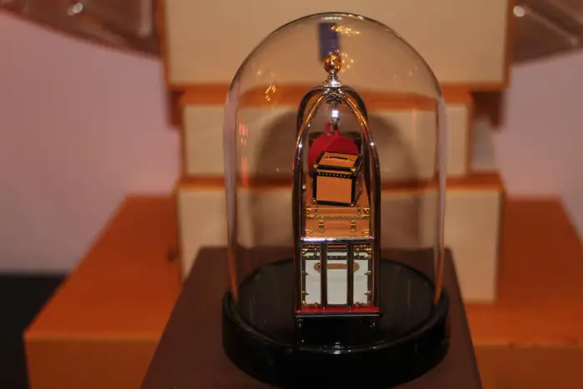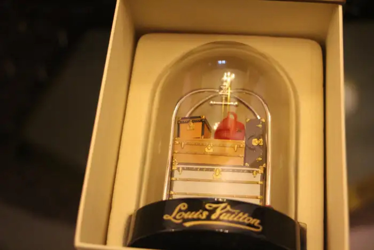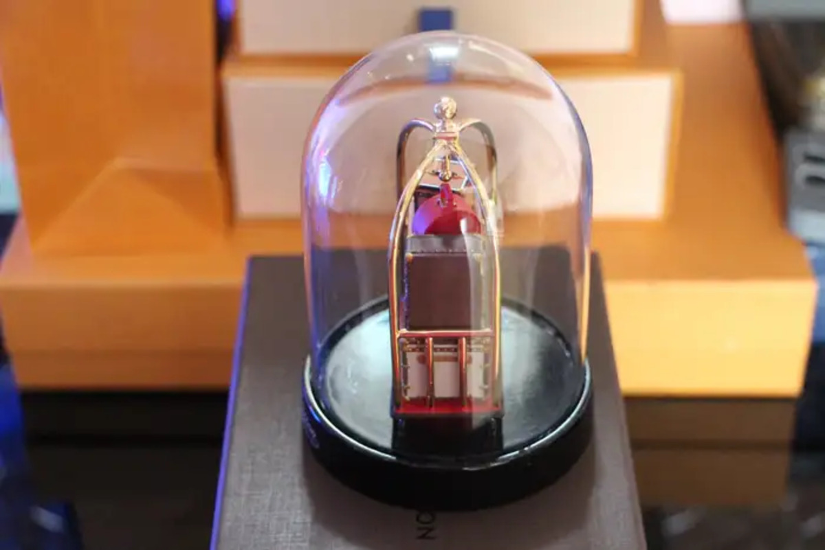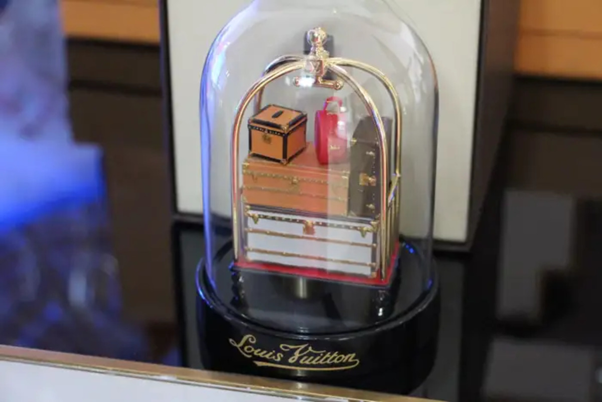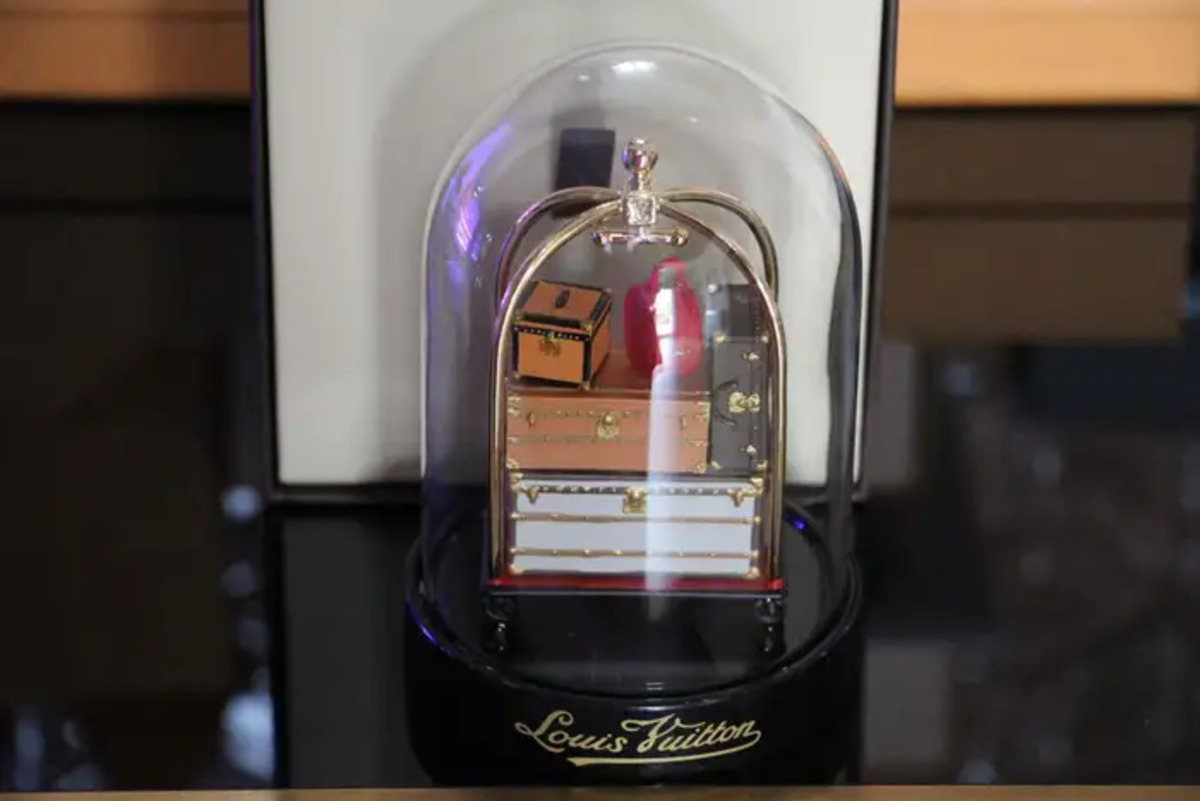 Il s’agit d’une édition très limitée .C’est un dôme en verre transparent avec une base en acrylique marquée Louis Vuitton. Cette pièce très décorative est livrée avec son coffret d’origine. Elle est en parfait état.