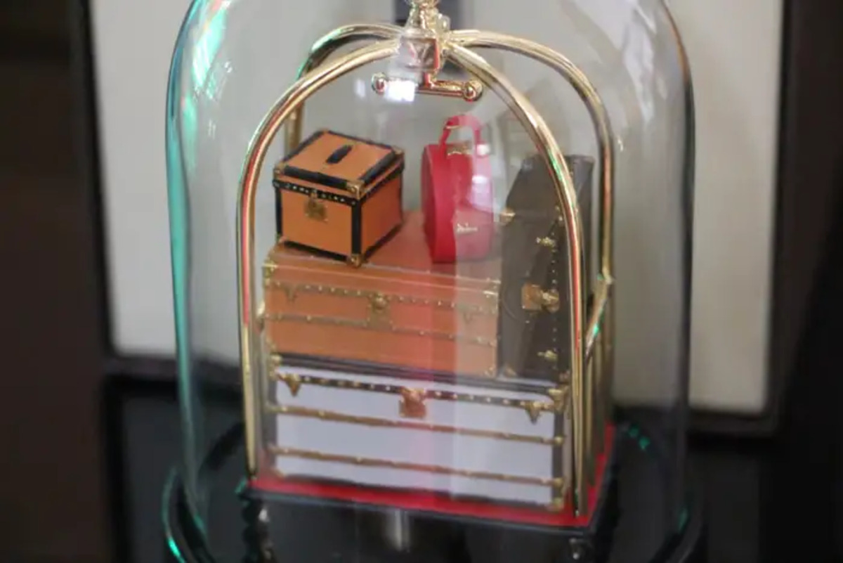 Cette boule à neige Louis Vuitton VIP « chariot a bagages » a été réalisée en 2010. Elle est extrêmement limitée et constitue une pièce de collection. Elle représente un chariot d’hôtel avec diverses valises , ainsi que des malles à chapeaux et autres malles courrier.