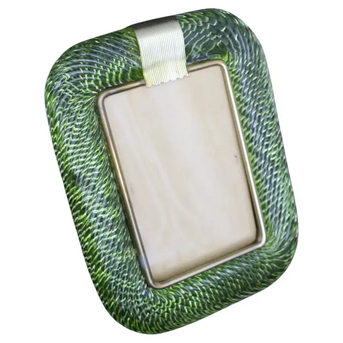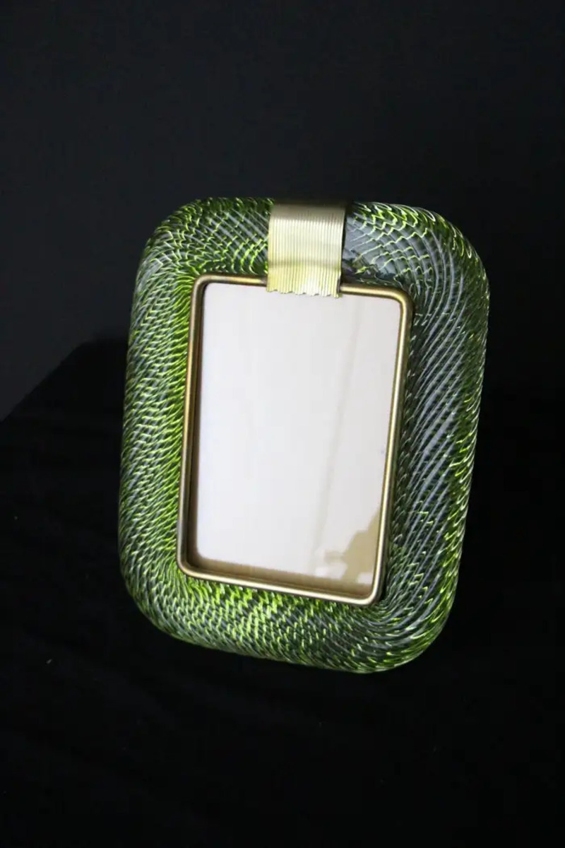 Cadre photo des années 2000 en verre de Murano torsadé vert olive et laiton de Barovier e Toso