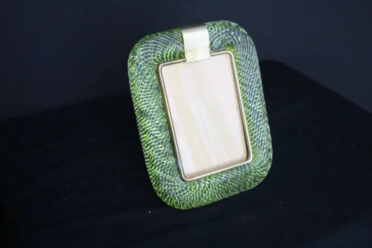Ce magnifique cadre photo vertical est purement dans la fabrication du verre vénitien La technique utilisée pour obtenir ce riche effet de corde torsadée est appelée “torciglione” et requiert des artisans hautement qualifiés.