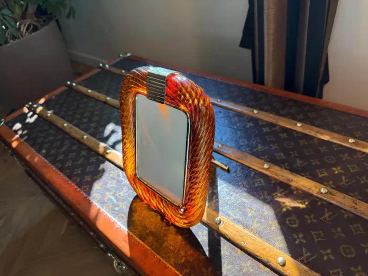 Ce magnifique cadre photo vertical s’inscrit dans la pure tradition verrière de Venise. La technique utilisée pour obtenir ce riche effet de corde torsadée, appelée « torciglione », requiert des artisans hautement qualifiés. Ce cadre photo arbore une couleur ambrée éclatante aux accents orangés.