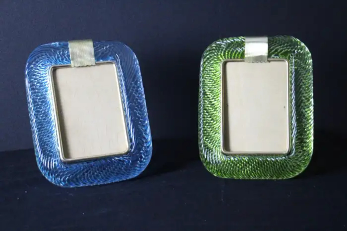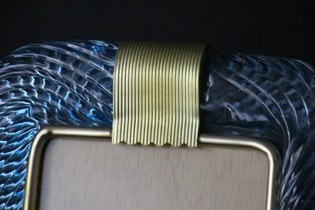 Ce magnifique cadre photo année 2000 vertical est purement dans la fabrication du verre vénitien La technique utilisée pour obtenir ce riche effet de corde torsadée est appelée “torciglione” et requiert des artisans hautement qualifiés.