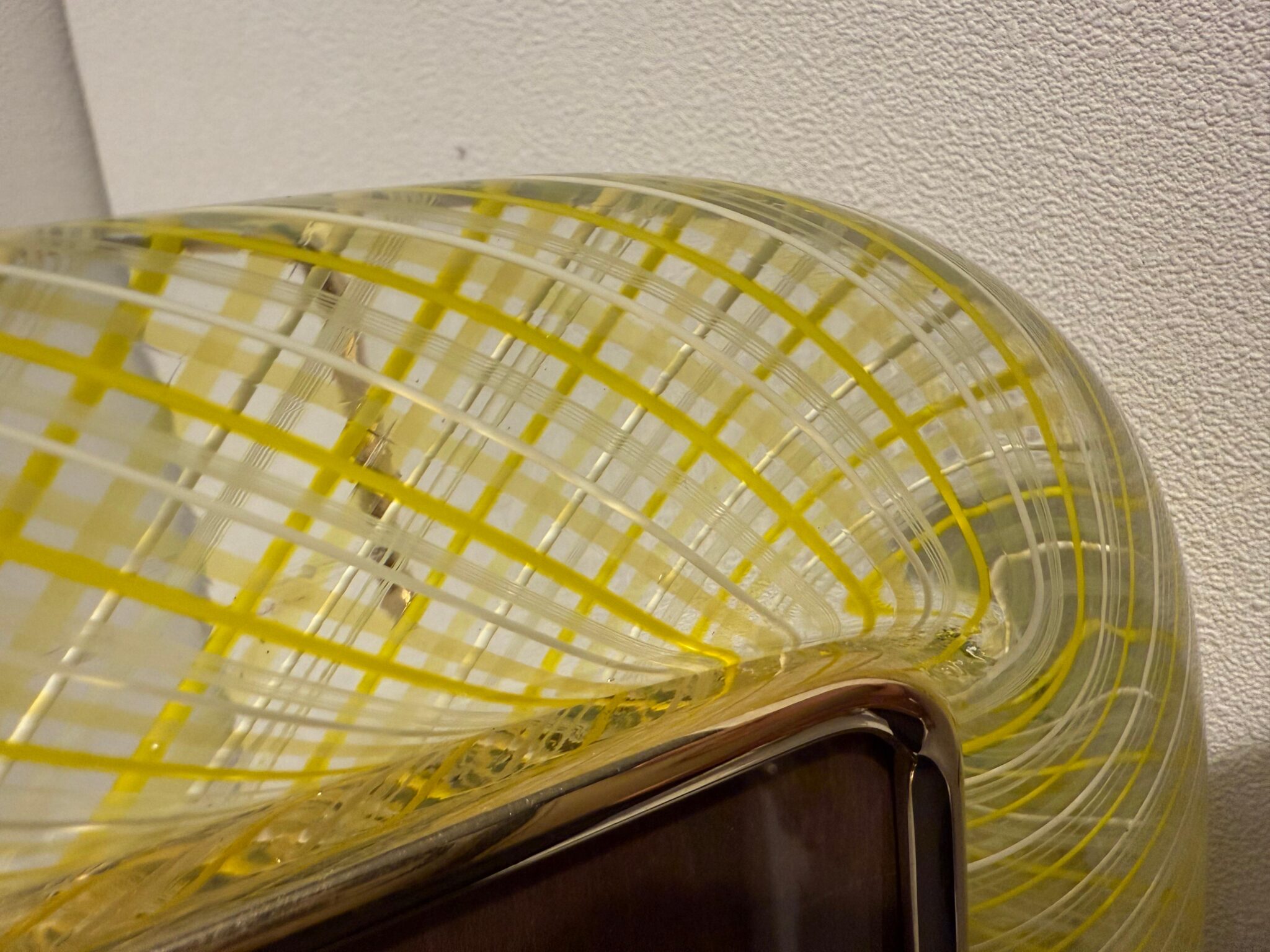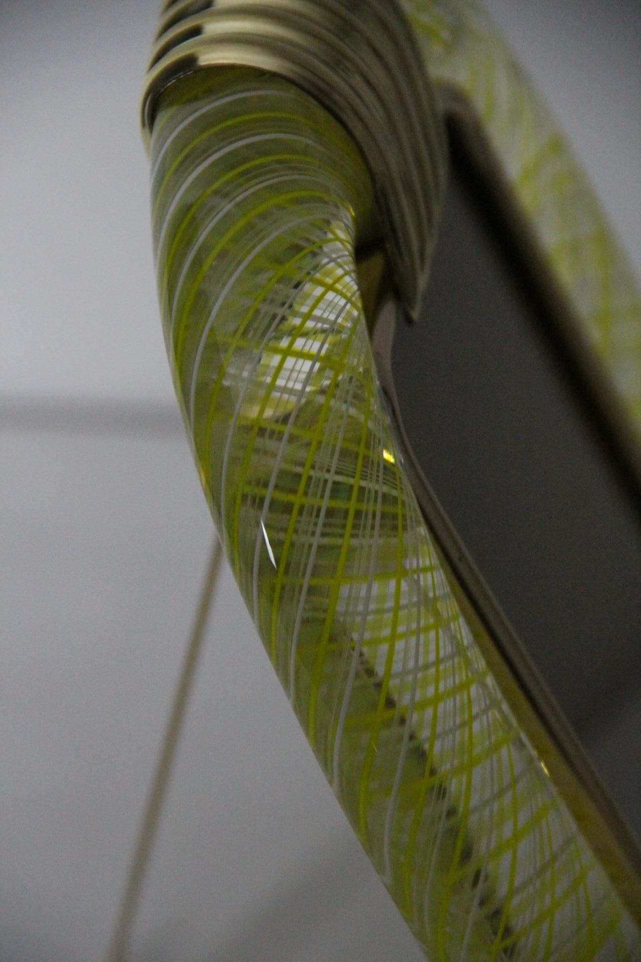 À la fin de cette opération, le maître verrier doit garder chaque ligne de couleur séparée, avec la même épaisseur et la même courbure autour du verre, aussi rapidement que possible avant que la température ne baisse. Le résultat de cette technique est presque hypnotique car il produit un effet de filet parfait.