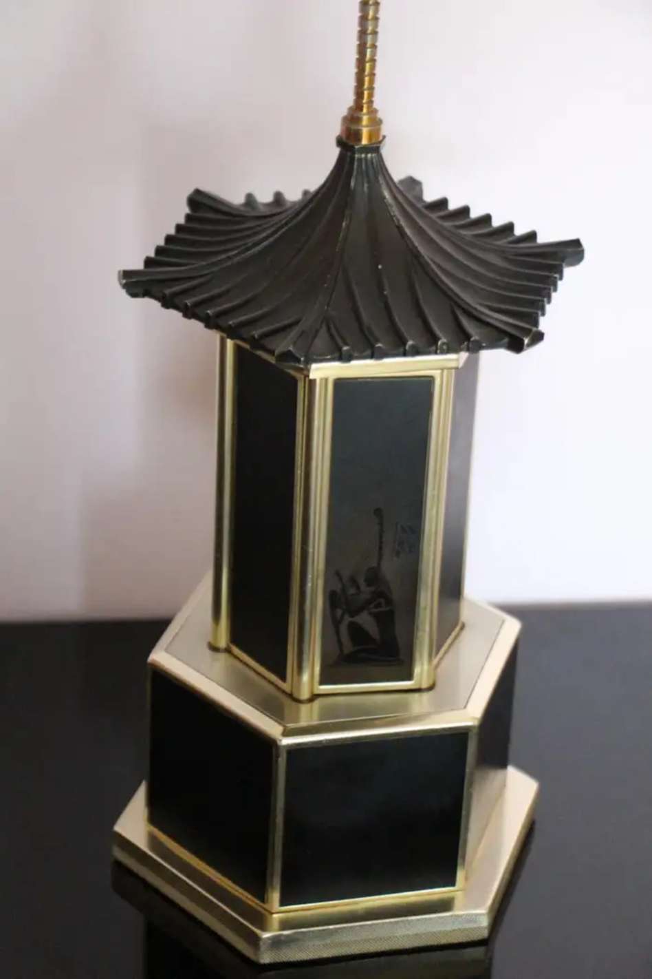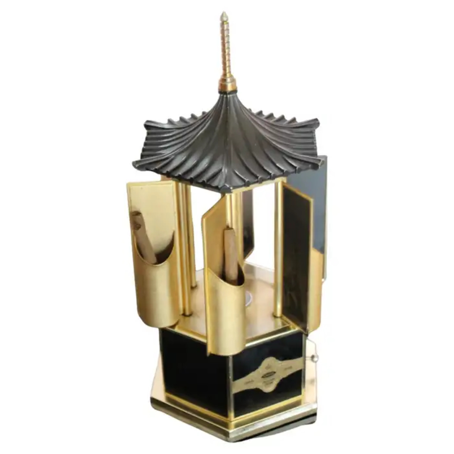 Ce carrousel à cigares vintage du milieu du siècle avec boîte à musique est absolument incroyable. Il comprend un extérieur laqué noir et laiton. L’humidificateur comporte 6 panneaux latéraux rotatifs, dont un sur deux est décoré d’ornements.