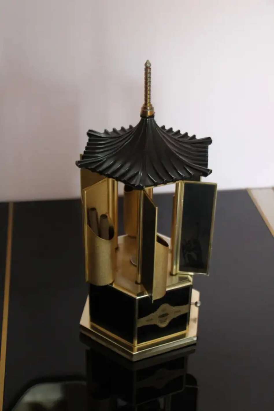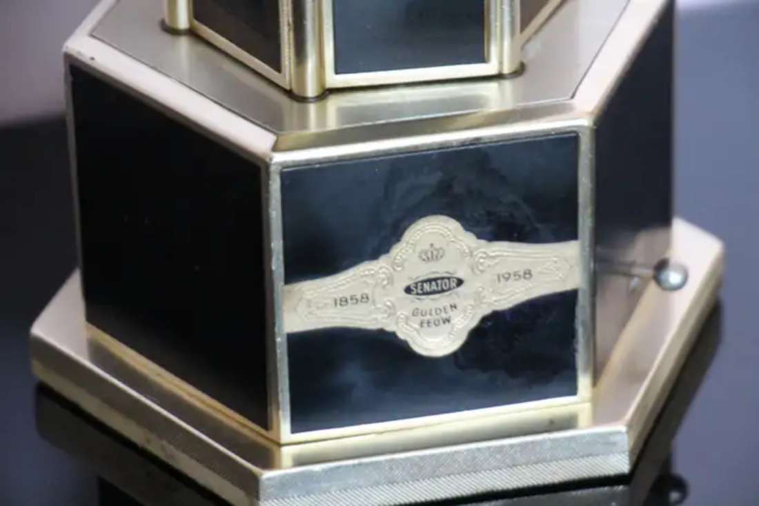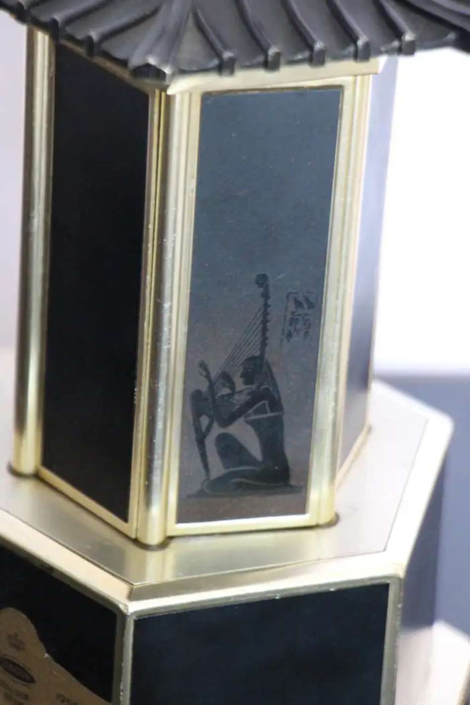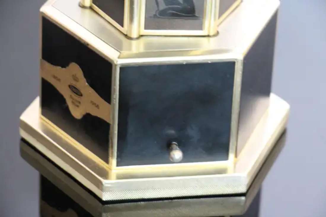 Un levier est situé à la base du carrousel et, lorsqu’il est tiré, il ouvre et ferme les 6 panneaux automatiquement. Cette pièce est une boîte décorative haut de gamme. En plus d’être un moyen de rangement pour les cigares, cette cave à cigares musicale vintage très élégante et rare pourrait être réutilisée à des fins décoratives, dans des projets d’artisanat ou pour commencer une collection .