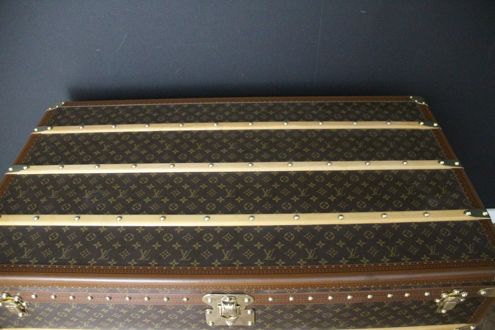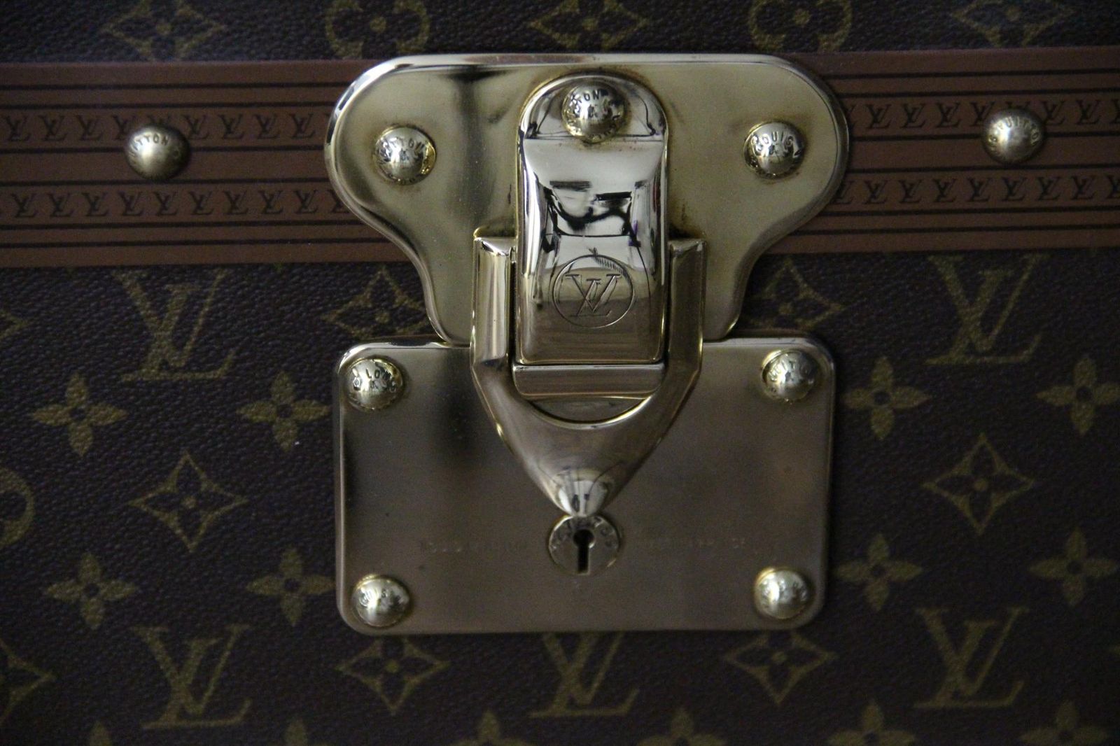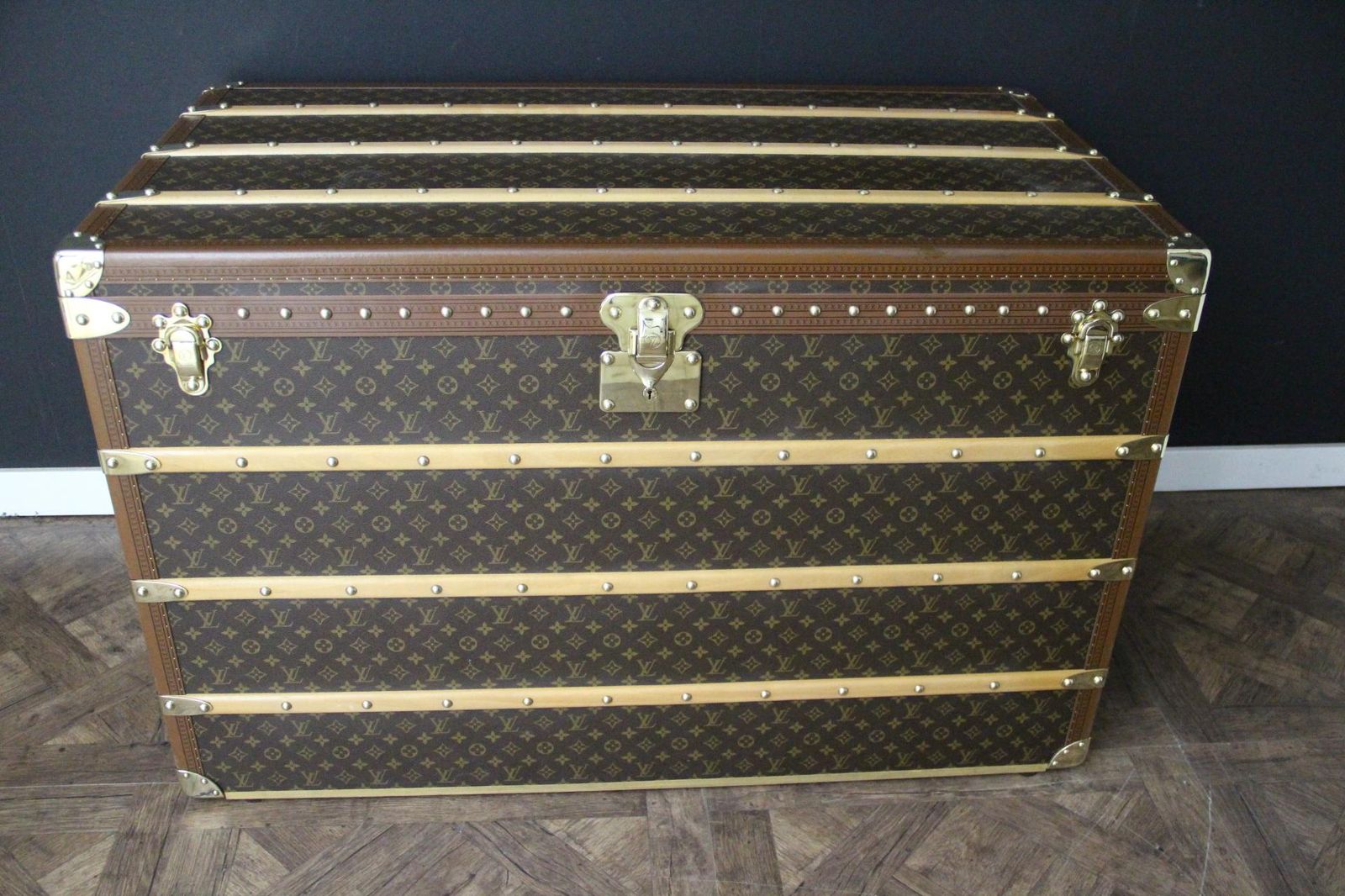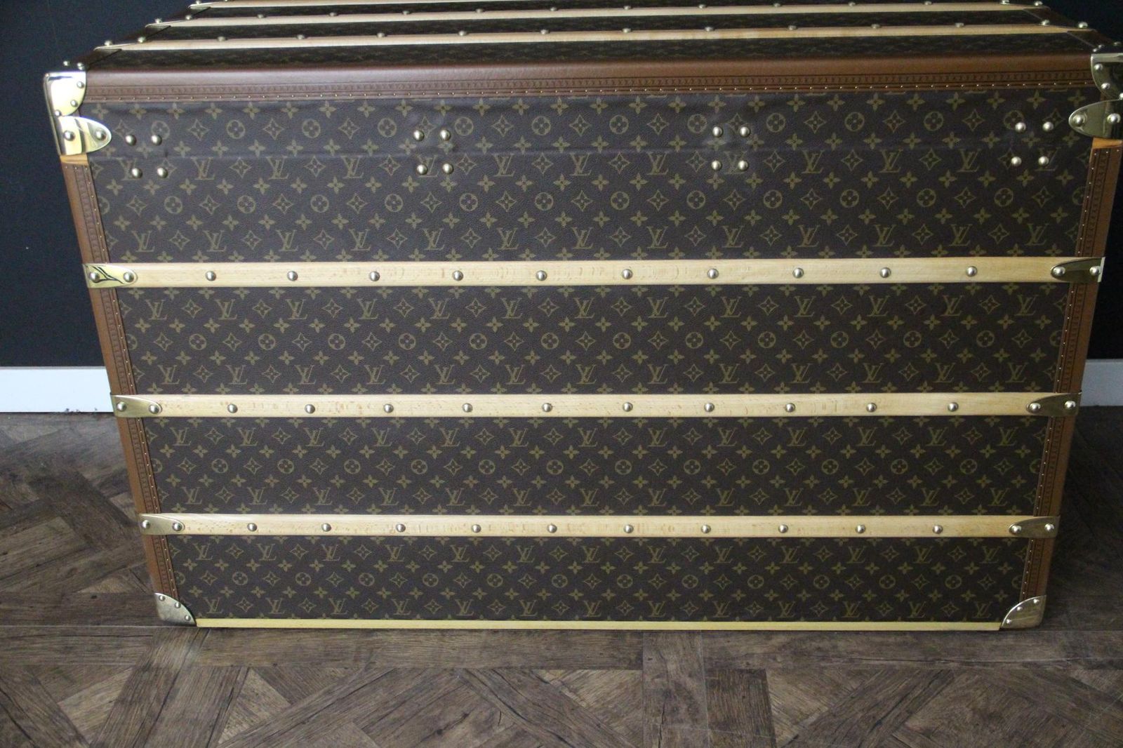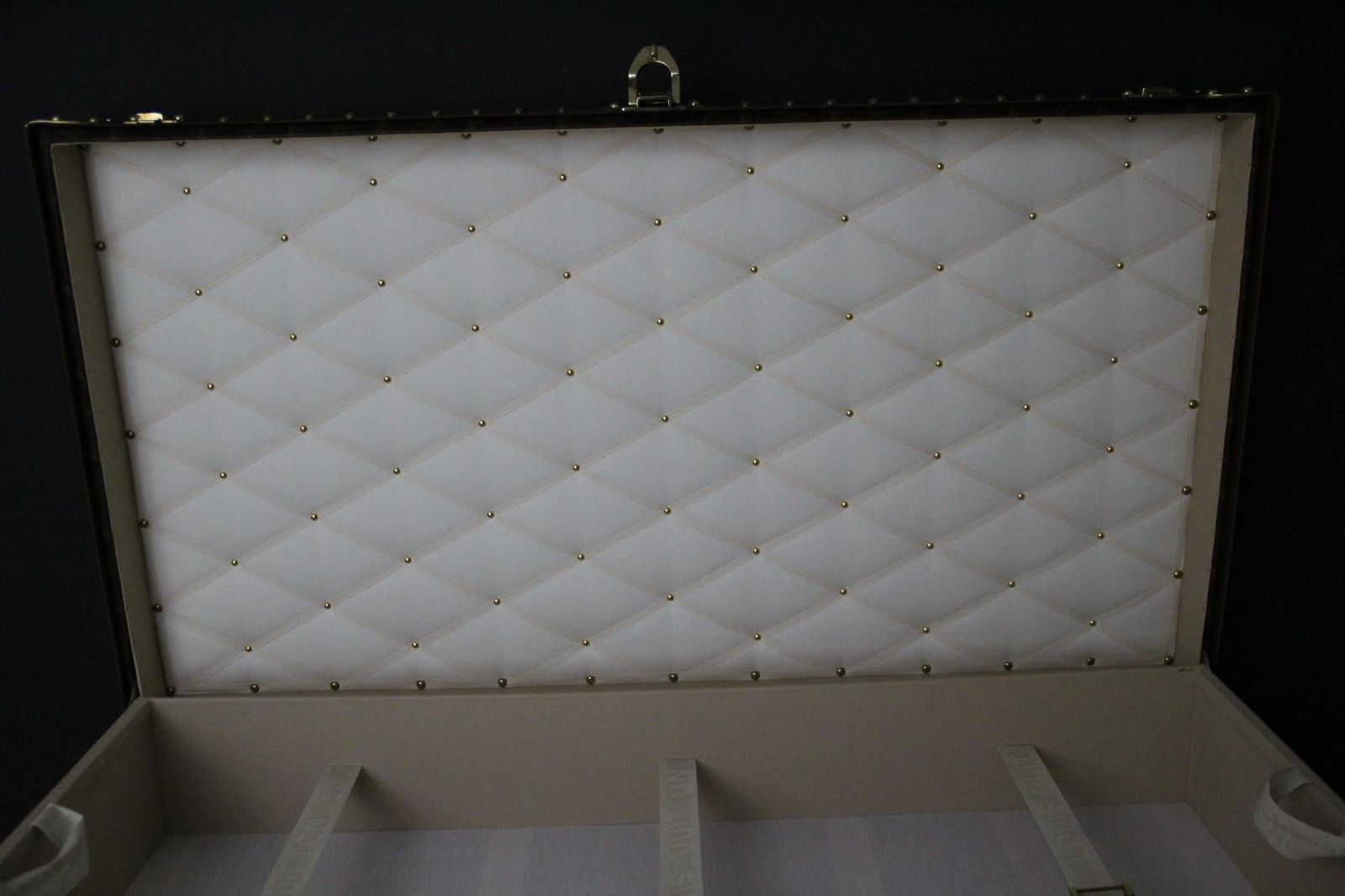 Il s’agit de la plus grande malle jamais produite par Louis Vuitton et elle est très impressionnante. Tout son intérieur est entièrement d’origine, avec ses 3 plateaux amovibles, son capiton sous le capot, son ruban brodé Louis Vuitton, son étiquette Louis Vuitton et son numéro de série. Elle est en très bon état. Elle est très spacieuse et serait très pratique pour le rangement. De plus, elle ne dégage aucune odeur. Elle possède toujours ses 2 clés Vuitton d’origine.