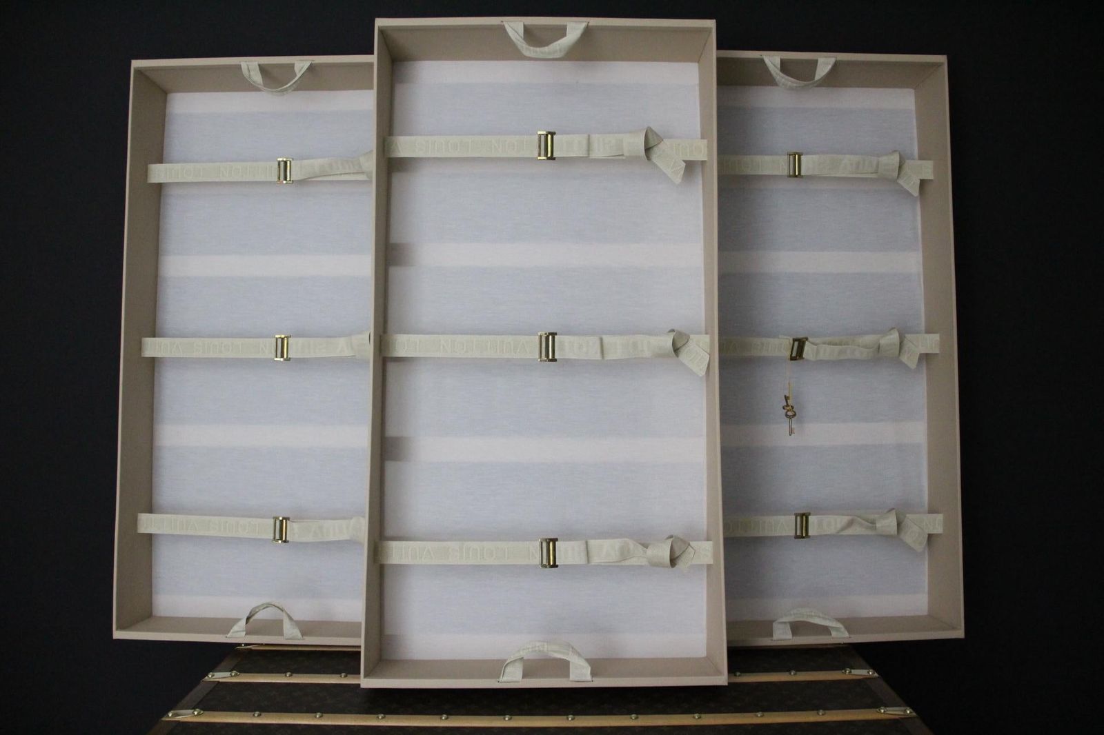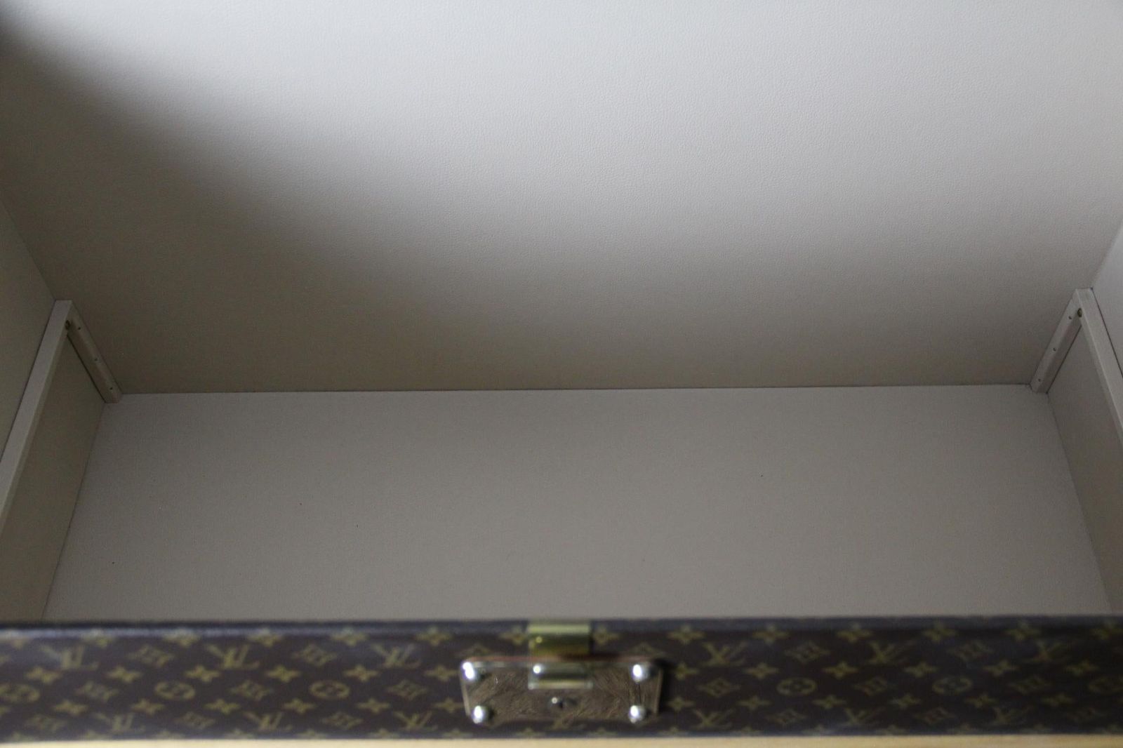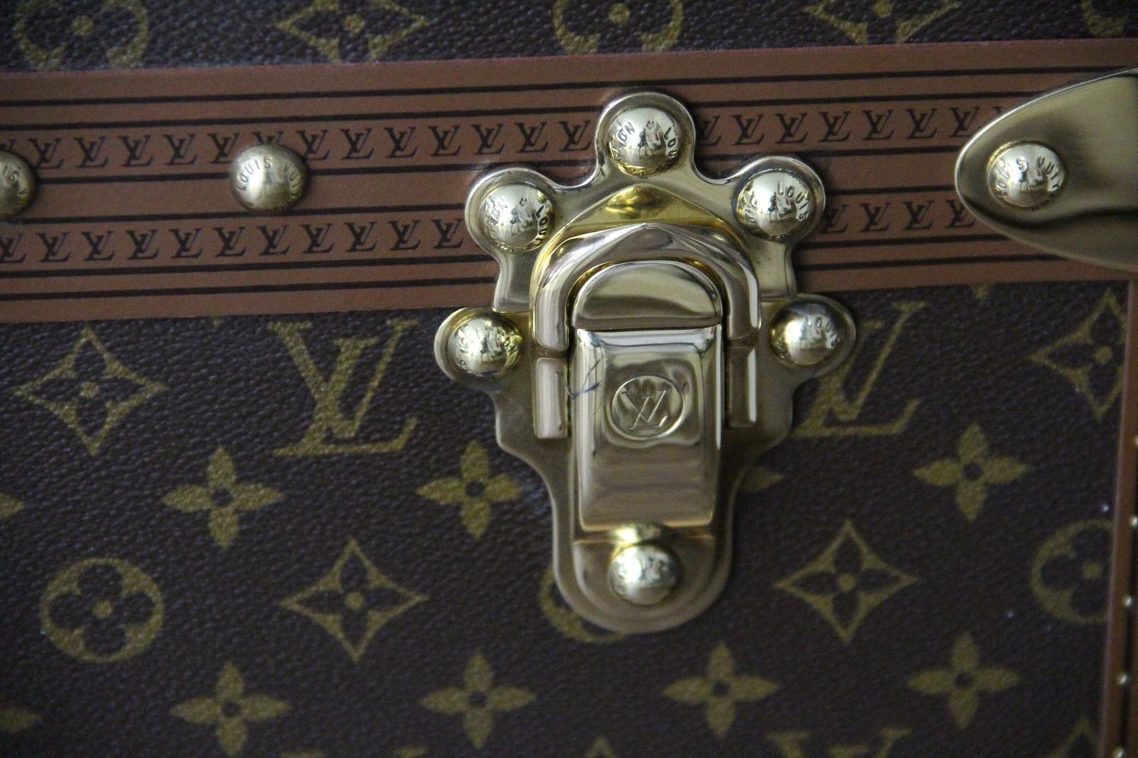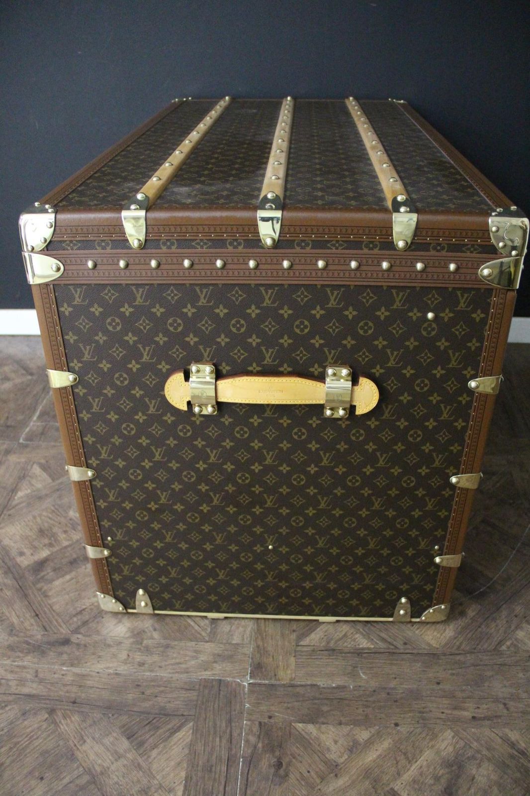 Il s’agit de la plus grande malle jamais produite par Louis Vuitton et elle est très impressionnante. Tout son intérieur est entièrement d’origine, avec ses 3 plateaux amovibles, son capiton sous le capot, son ruban brodé Louis Vuitton, son étiquette Louis Vuitton et son numéro de série. Elle est en très bon état. Elle est très spacieuse et serait très pratique pour le rangement. De plus, elle ne dégage aucune odeur. Elle possède toujours ses 2 clés Vuitton d’origine.
