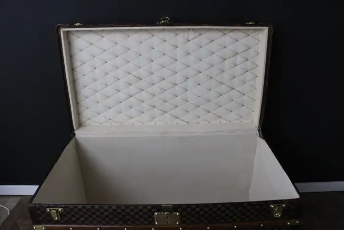 Il s’agit de la plus grande malle jamais produite par Louis Vuitton et elle est très impressionnante. Son intérieur a été entièrement refait, à l’identique. Il est parfaitement propre. Il est très spacieux et serait très pratique pour le stockage. De plus, il n’y a pas d’odeur.