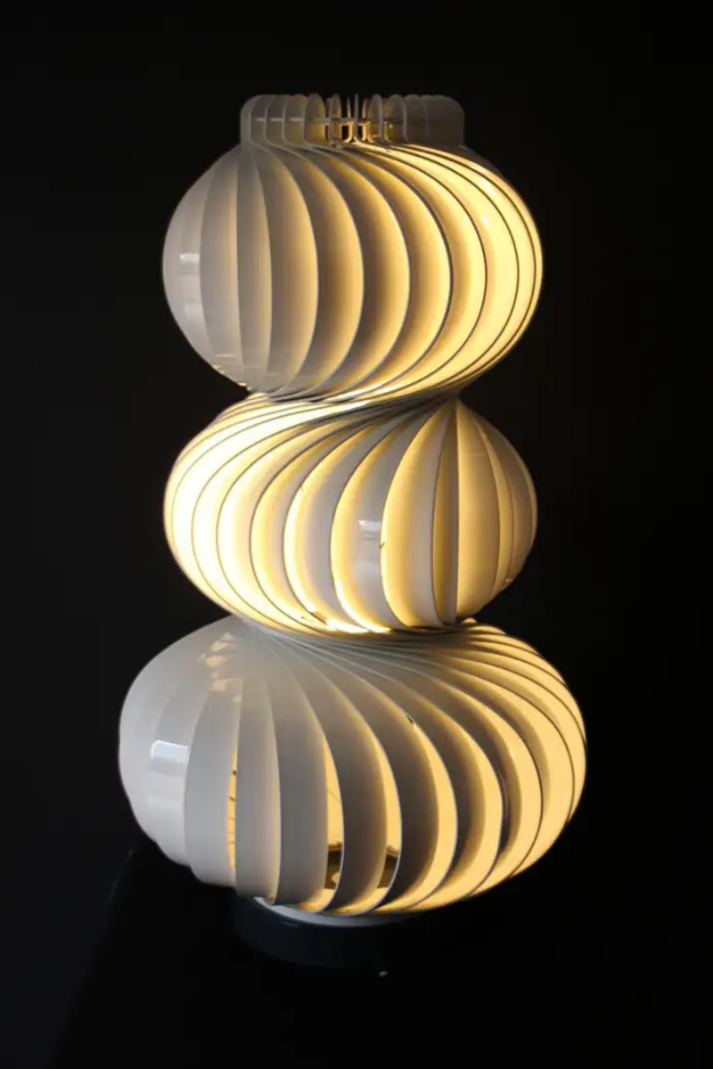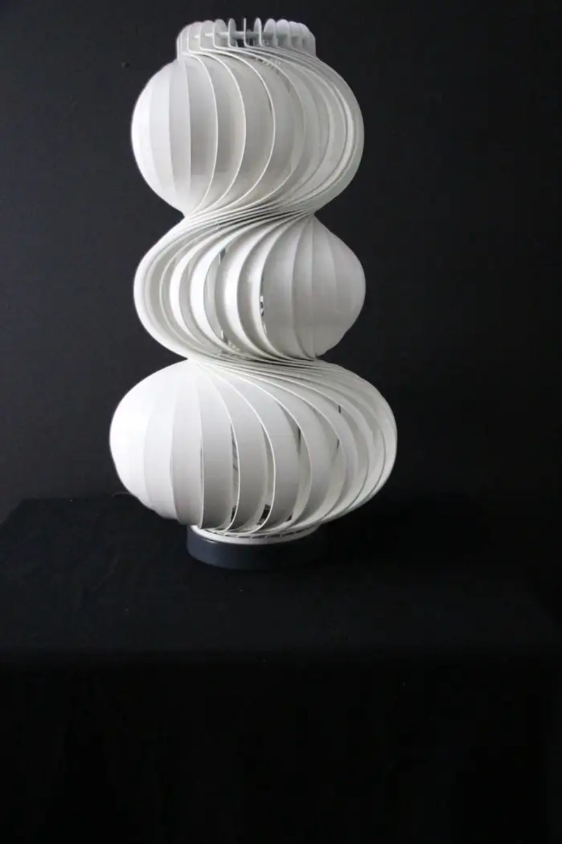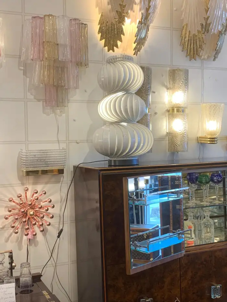 Cette création iconique est née dans l’esprit d’Olaf von Bohr pour Valenti en 1968 et s’appelait Medusa. Elle peut être utilisée comme lampe de table, lampe de bureau, ou comme lampadaire. Elle a été construite en Italie, en assemblant des lamelles d’acier pliées autour d’un cercle central afin de créer une lumière enchanteresse tout autour. Cette belle lampe projette des rayons lumineux tout autour d’elle. Les diffuseurs en aluminium peint en blanc ont été pliés et assemblés à la main. Elle est dotée d’une base ronde en métal laqué noir. Cette lampe Méduse Valenti nécessite deux ampoules E27. C’est une lampe parfaite pour les intérieurs moderne ou des années 70. Il s’agit d’une véritable œuvre d’art qui crée une lumière très agréable ainsi qu’un fabuleux objet de décoration.