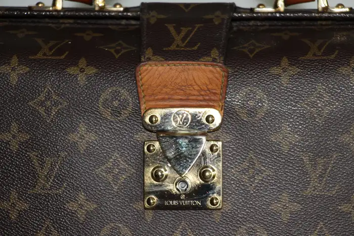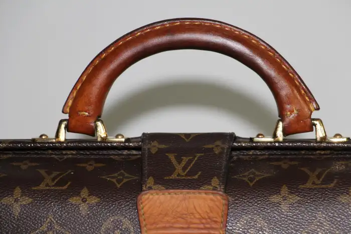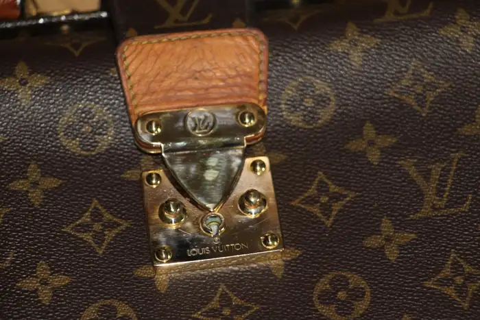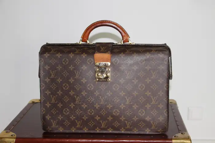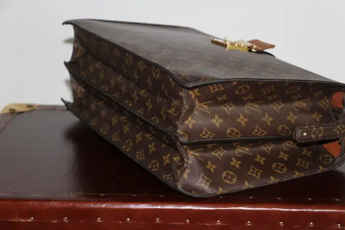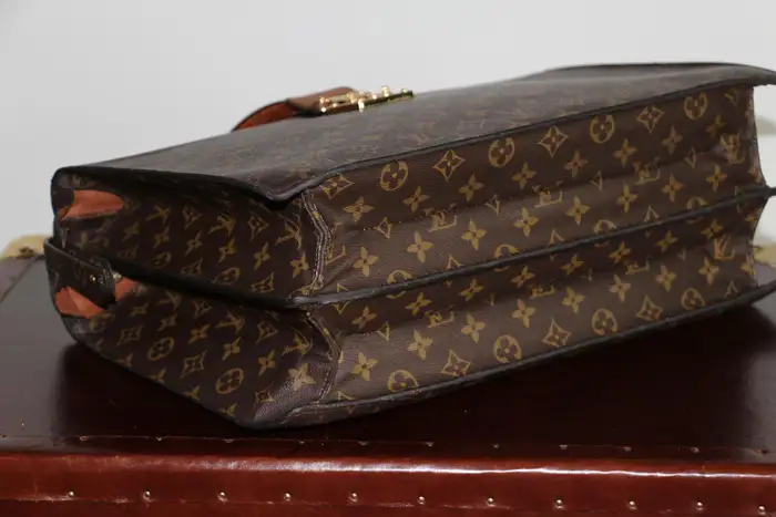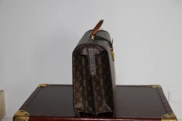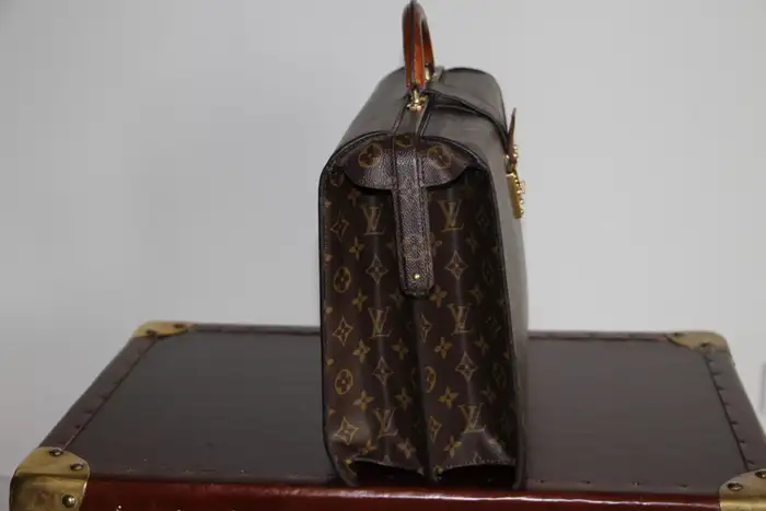 Ce Louis Vuitton porte feuille très inhabituel est doté d’une toile monogramme et d’une serrure en laiton massif estampillée Louis Vuitton. Il est également doté d’une magnifique poignée en cuir en parfait état. Ce sac Louis Vuitton est aussi élégant que pratique.