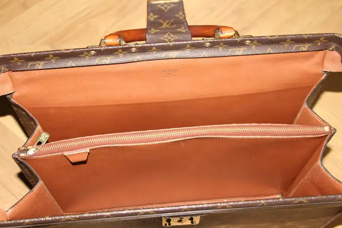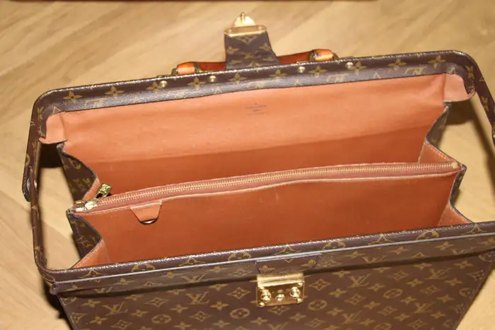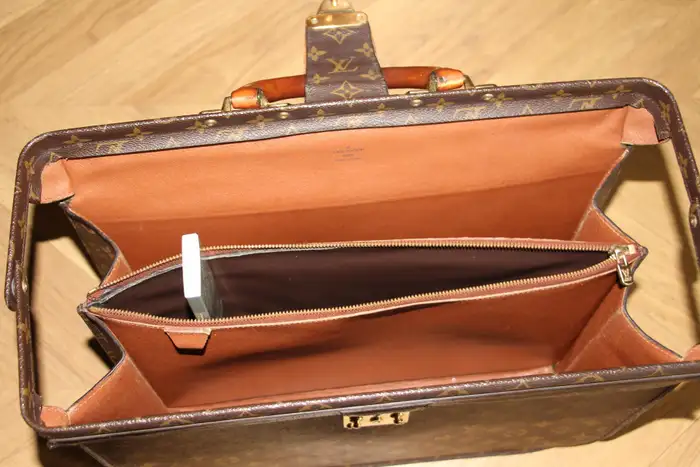 L’intérieur est très propre et sans odeur. Louis Vuitton estampillé à l’intérieur. Il est très difficile de le trouver en si bon état. De plus, comme il n’est plus vendu dans les magasins Louis Vuitton, ce Louis Vuitton porte feuille est une véritable pièce de collection. Sa taille est idéale pour ranger documents et ordinateurs.