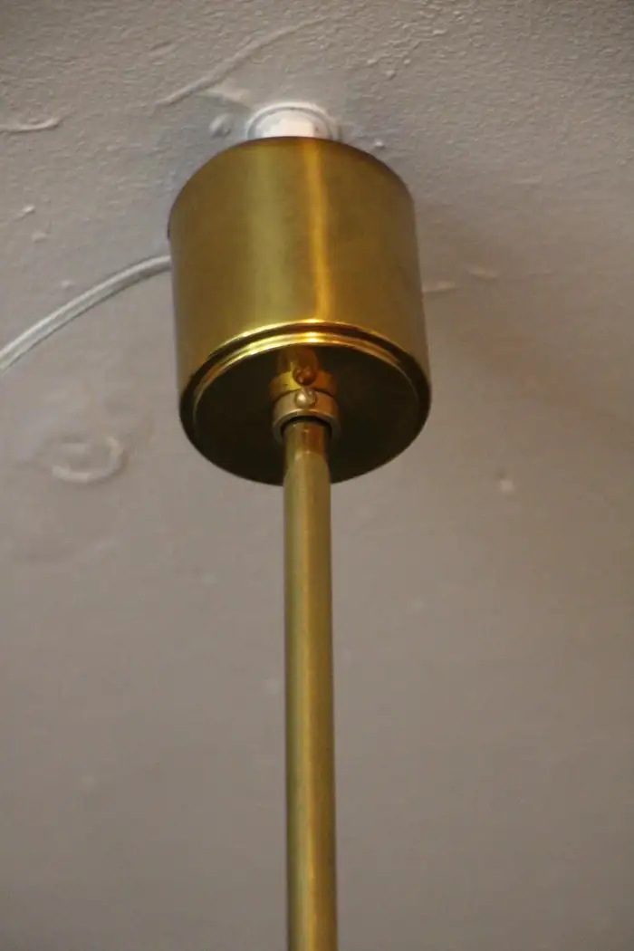 Cette suspension est si élégante et crée une telle présence dans une pièce qu’elle se transformera à coup sûr en véritable sujet de conversation… Elle est câblée pour les États-Unis et l’Europe. Sa hauteur actuelle est de 96 cm, mais elle peut être raccourcie à 55 cm sur demande spéciale.