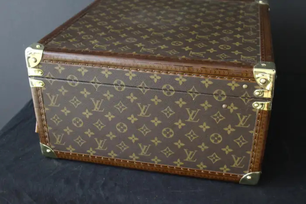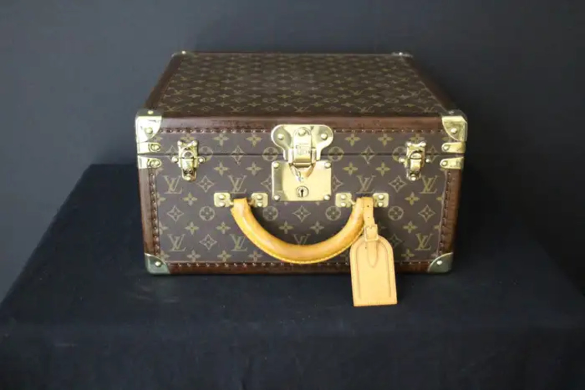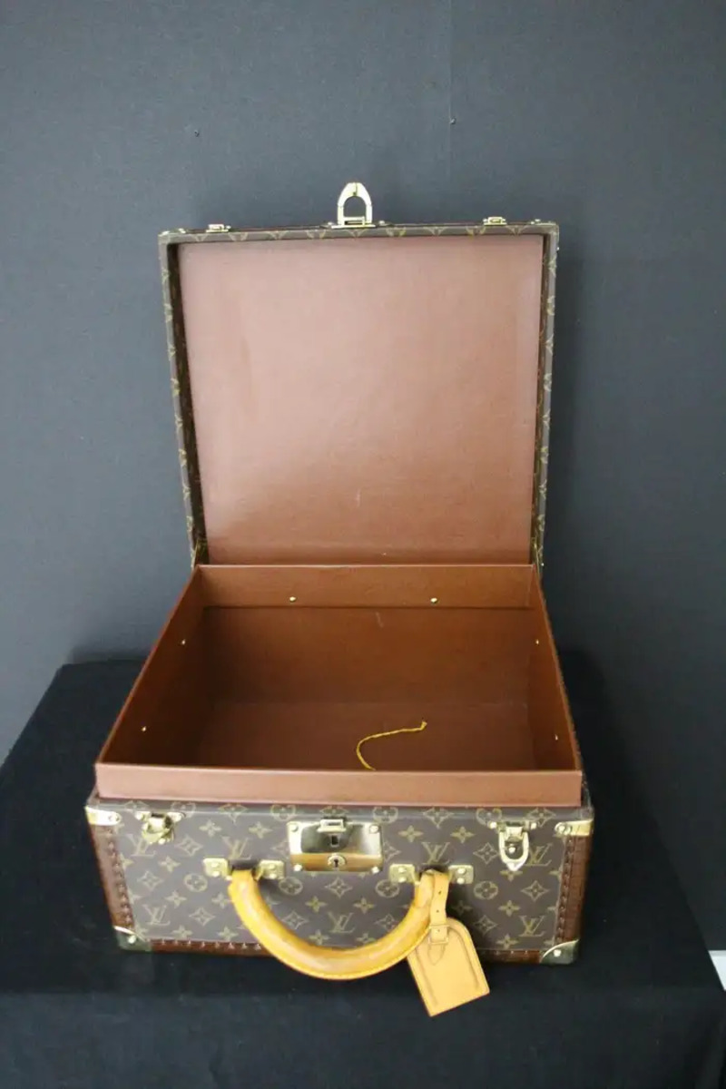 Cette magnifique malle à chapeau Louis Vuitton carrée est ornée d’une toile monogramme, de finition en laiton, de coins, d’une serrure et de fermoirs estampillés Louis Vuitton et d’une poignée en cuir très solide et confortable. Elle dispose également d’un porte-nom Louis Vuitton entièrement en cuir. Son intérieur est en cuir marron et en parfait état avec son numéro de série embossé. Cette magnifique malle à chapeau Louis Vuitton est livrée avec ses 2 clés d’origine en état de marche. Elle pourrait être utilisée comme un élément de décoration haut de gamme comme une petite table basse, une table de chevet ou une table d’appoint mais pourrait également être utilisé pour voyager avec style, évidemment…Sa forme “carrée” est très inhabituelle et recherchée. Ce bagage vintage est plein de charme et typique du “chic à la francaise”….