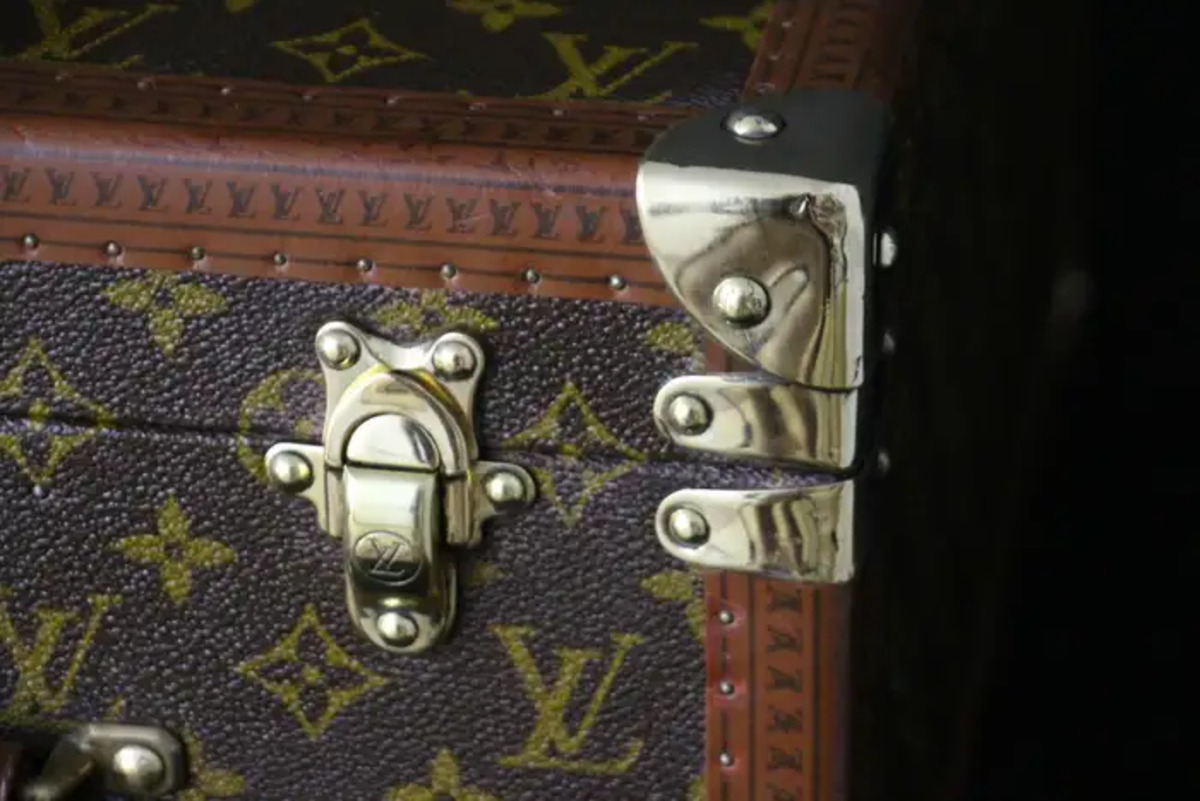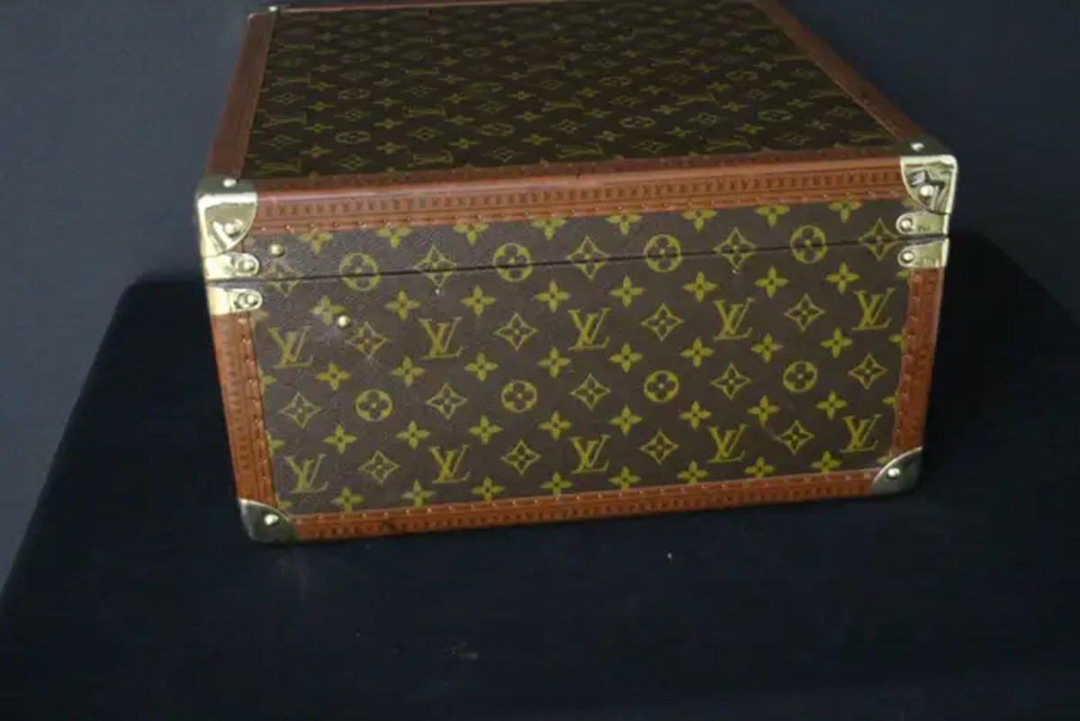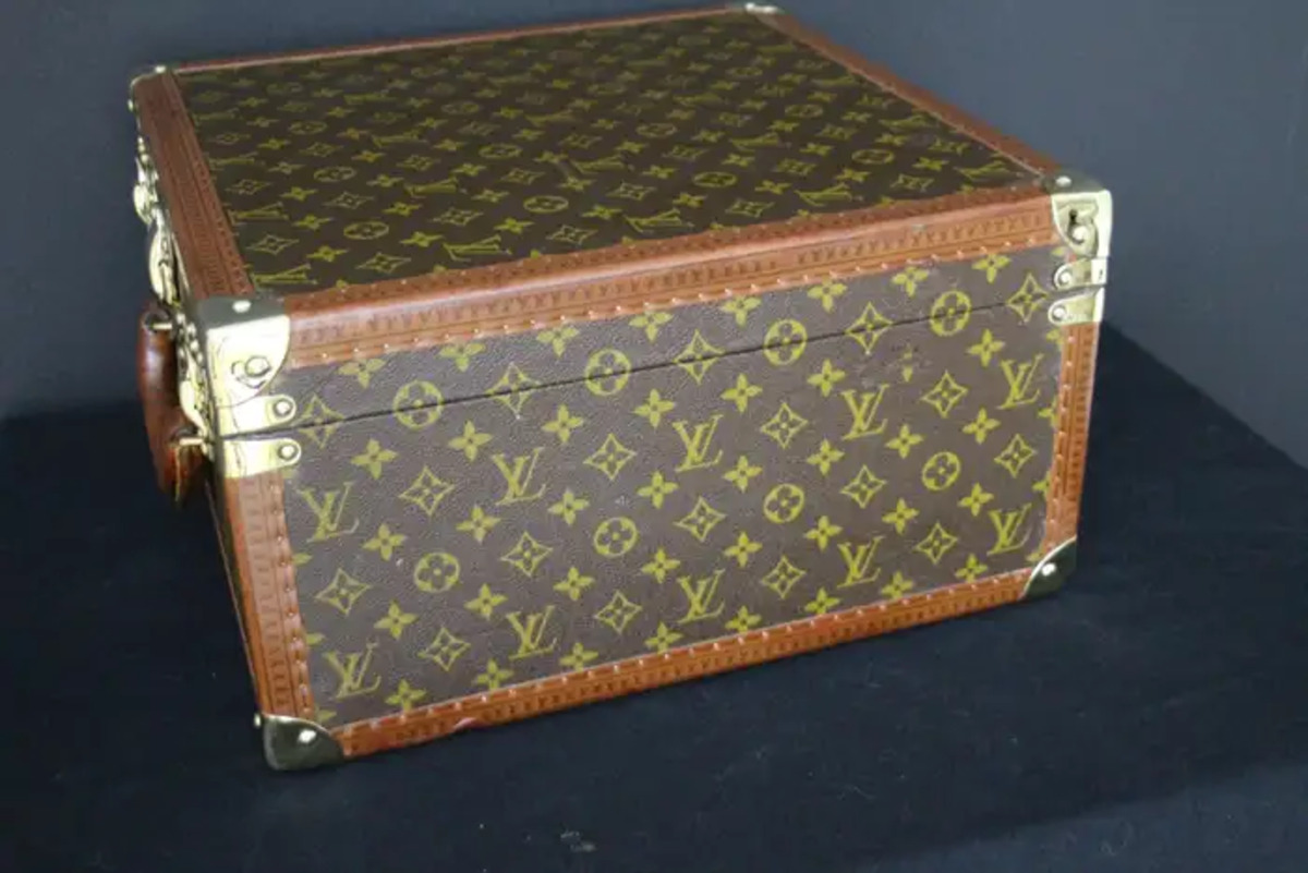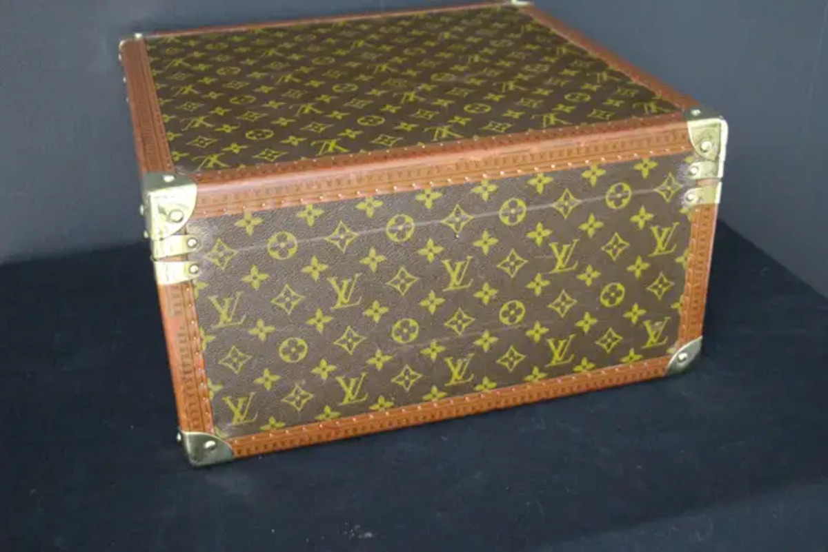 Cette magnifique malle à chapeau Louis Vuitton monogramme vintage avec des finitions en laiton, des coins, une serrure et des fermoirs estampillés Louis Vuitton et une poignée en cuir très robuste et confortable.