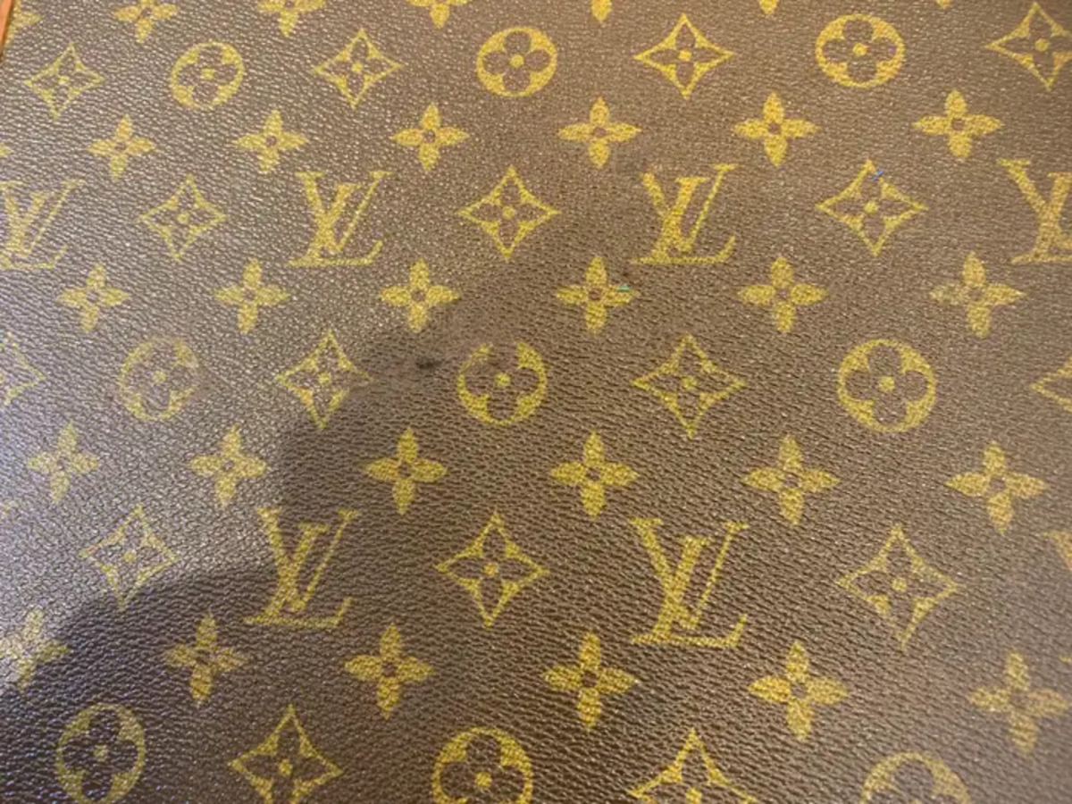 Sa bordure de couleur chocolat est également entièrement monogrammée. Son intérieur est en toile lavable beige et en parfait état. Il pourrait parfaitement être utilisé pour ranger des vêtements, des bijoux ou d’autres petits objets.