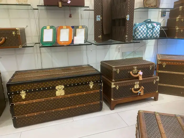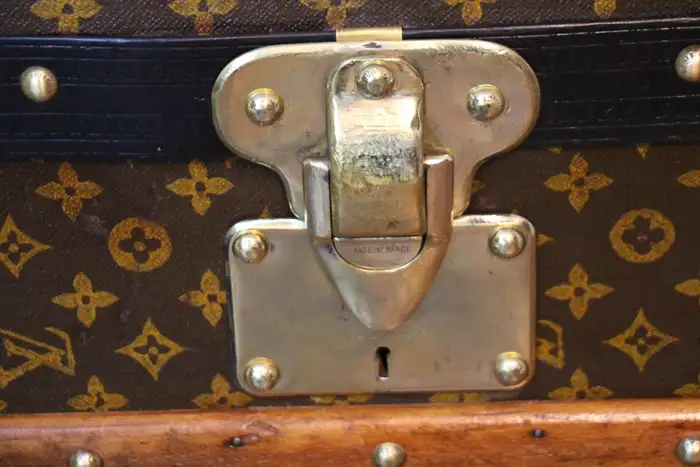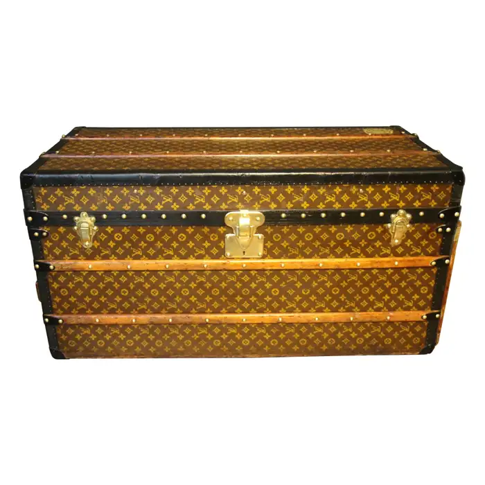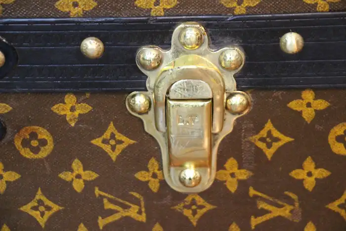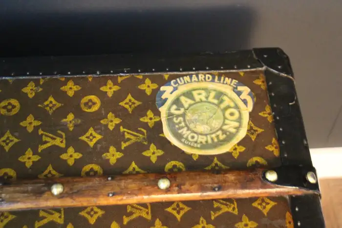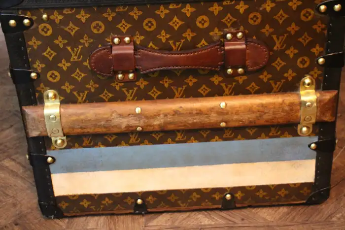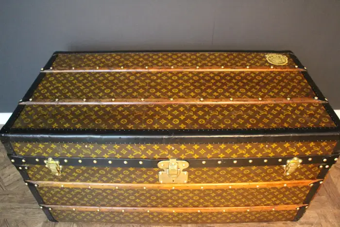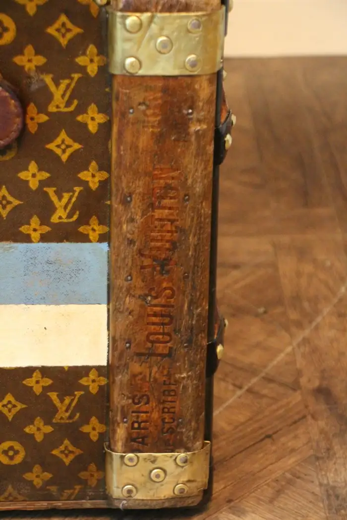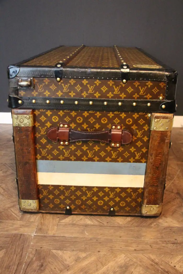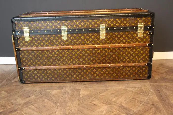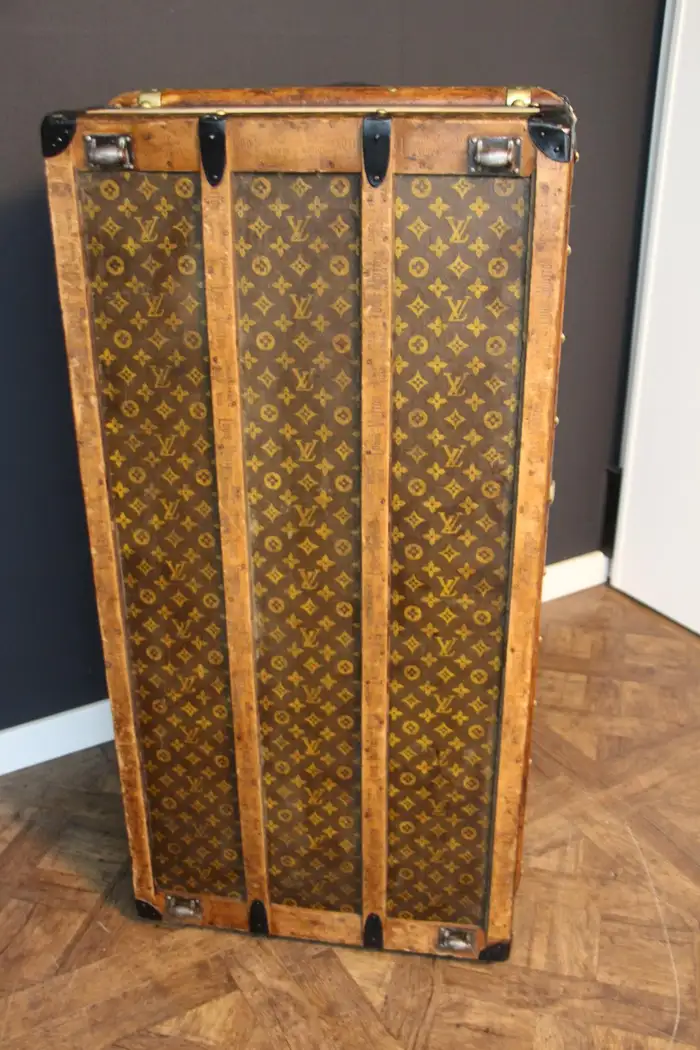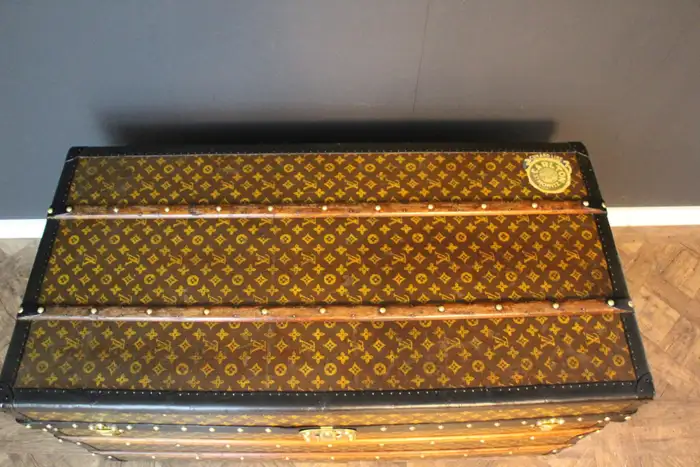 A l’origine, cette Malle de voyage Louis Vuitton monogrammée était une malle qui a été vidée et regarnie pour la convertir d’une malle-armoire en une malle-courrier d’une taille étonnante.