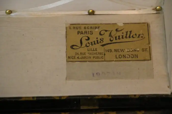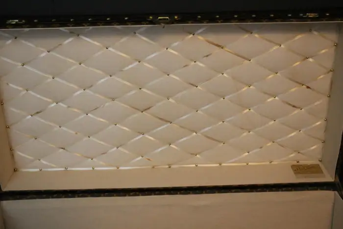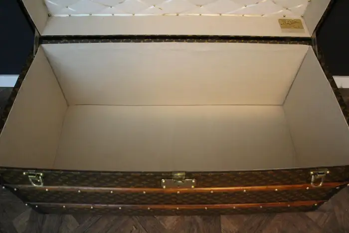Son intérieur a été regarni et est vide. Il a conservé son numéro de série ainsi que son étiquette Louis Vuitton d’origine. L’intérieur est plutôt propre et pourrait facilement servir de rangement.