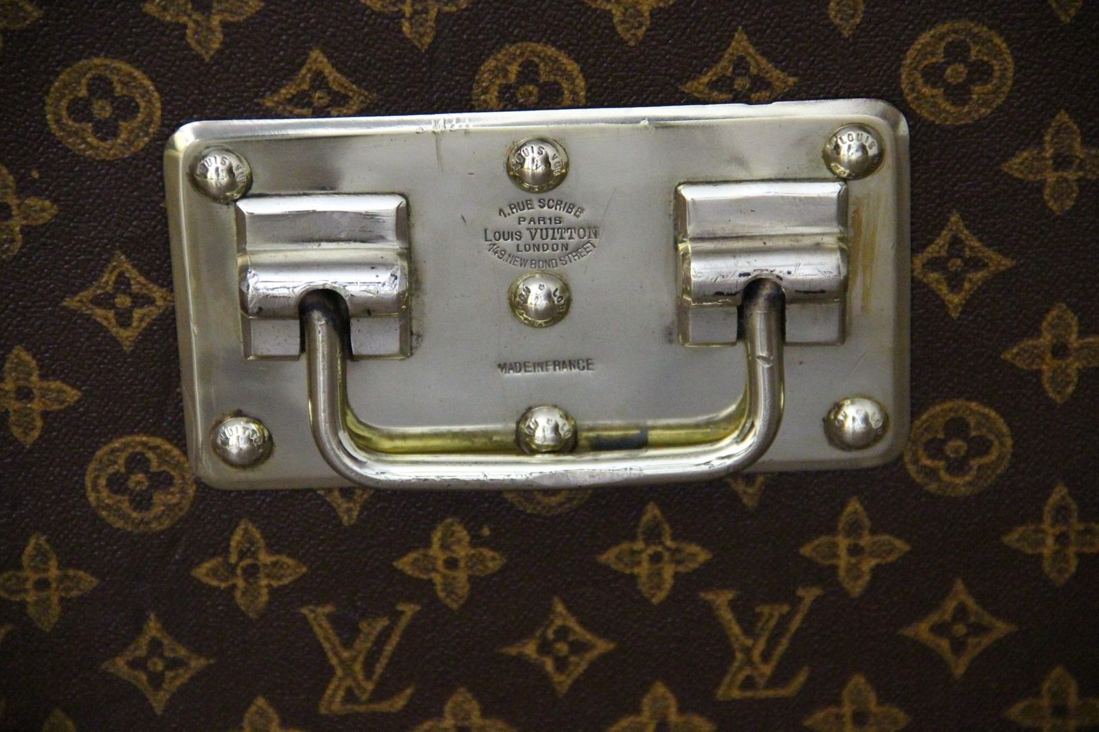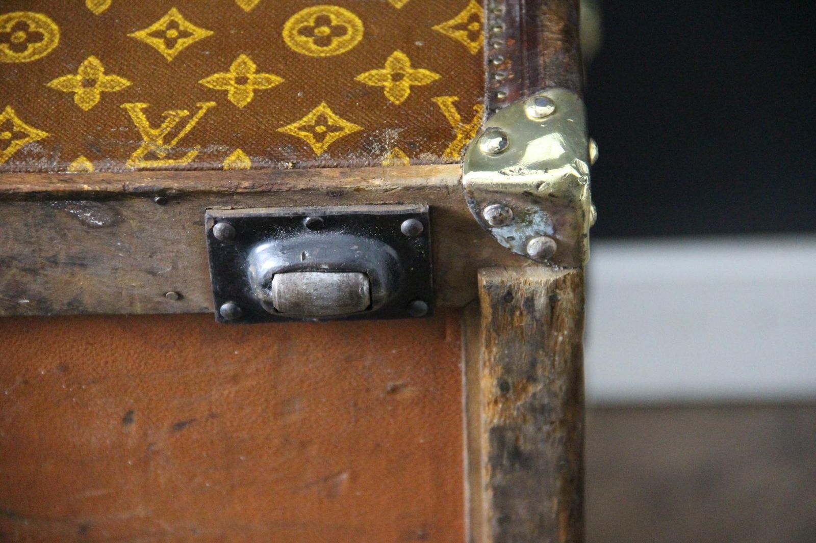 Sa patine est magnifique. De plus, sa forme est très recherchée. Elle possède encore sa doublure d’origine, son capiton d’origine sous le capot, son étiquette Louis Vuitton et son numéro de série. Son intérieur est plutôt propre et frais compte tenu de son âge, sans odeur.