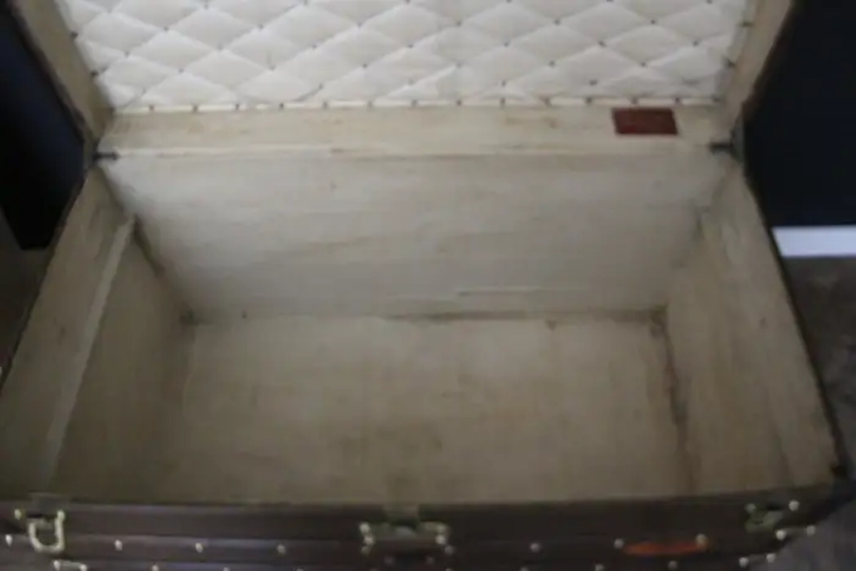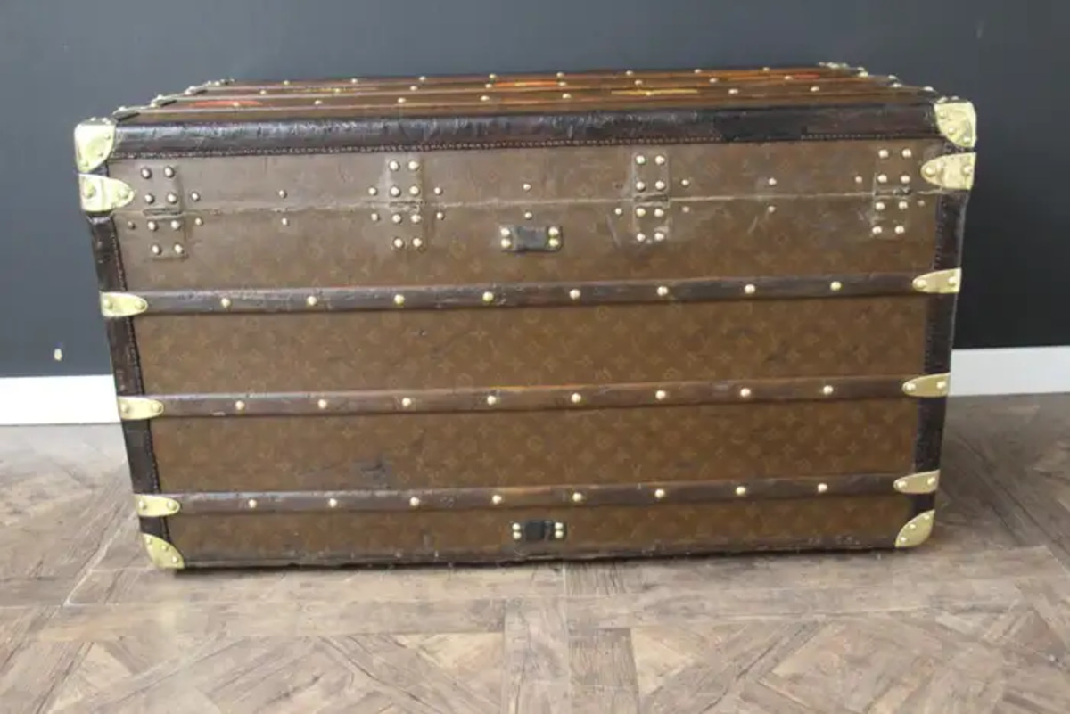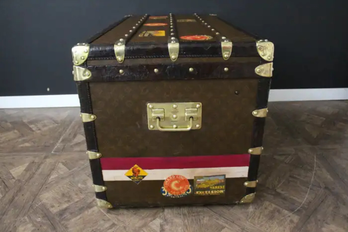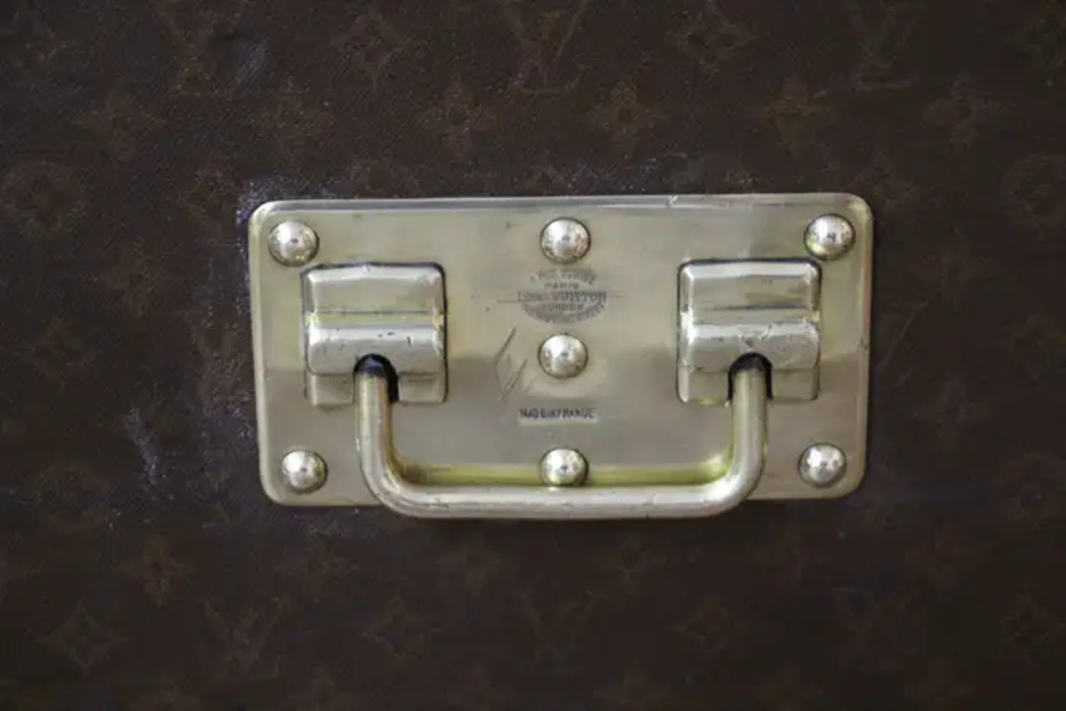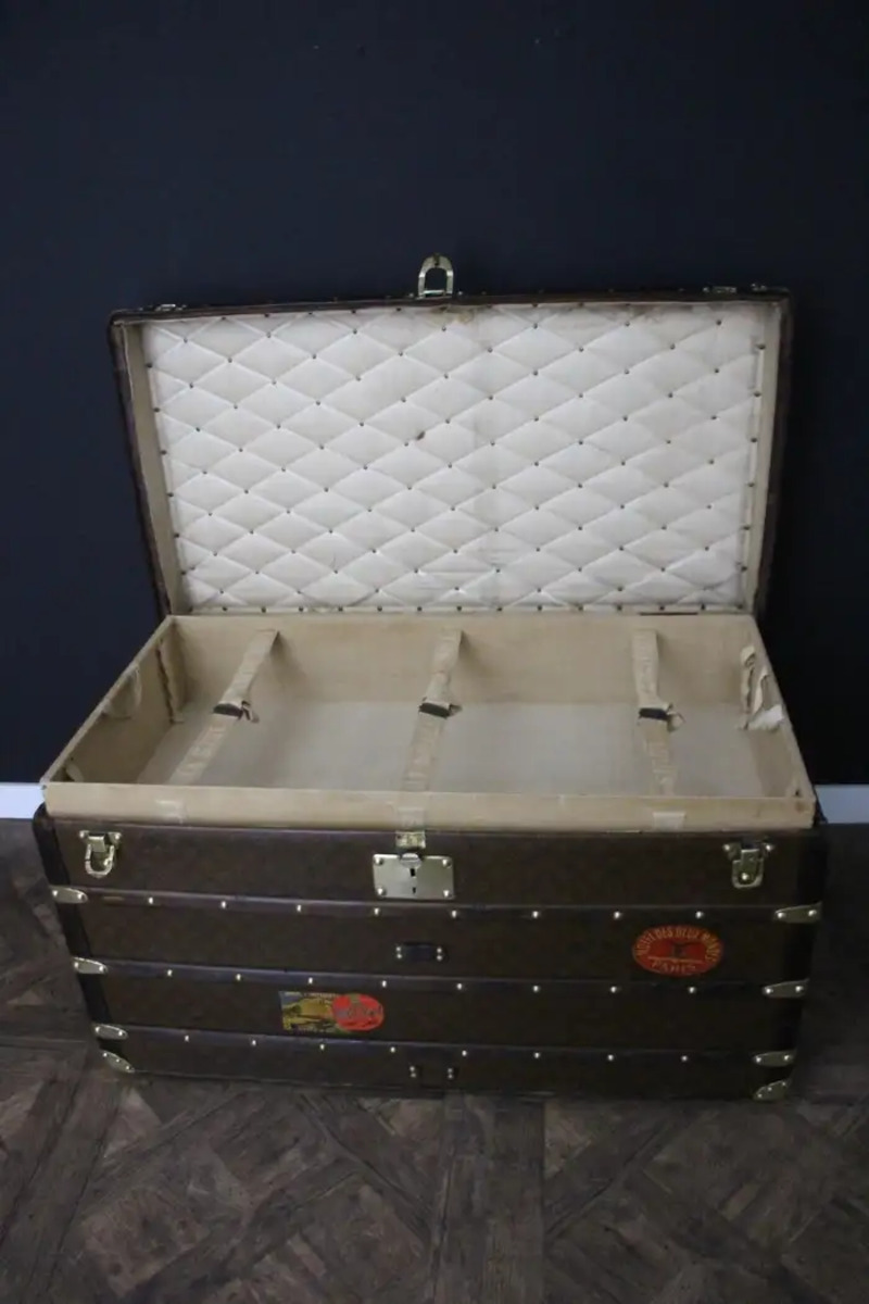 Cette malle Vuitton offre une belle patine d’origine aussi chaleureuse qu’élégante. Ses nombreux labels de voyage ajoutent un aspect très spécial et unique à cette magnifique malle. L’intérieur est également d’origine et complet avec son plateau amovible. Il possède encore son label intérieur Louis Vuitton et son numéro de série.