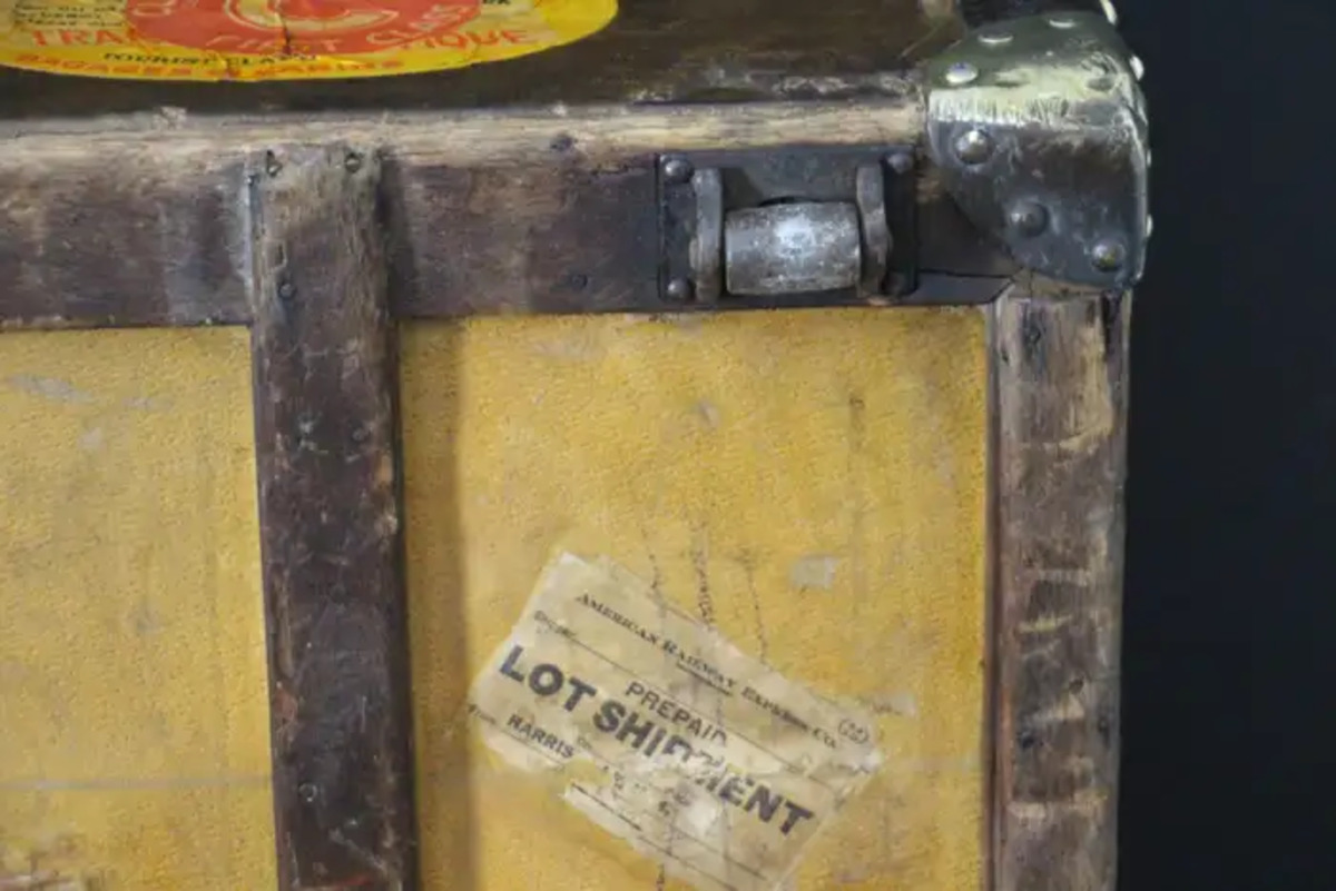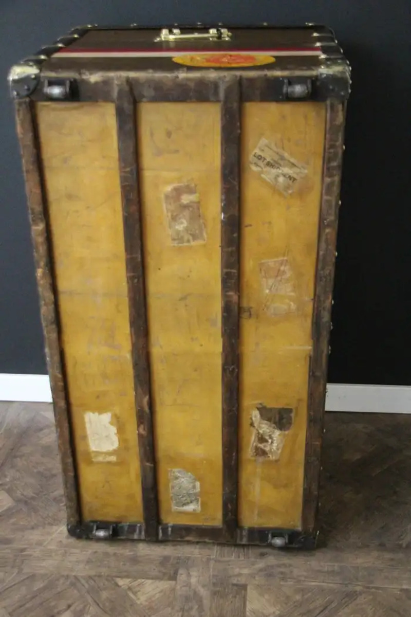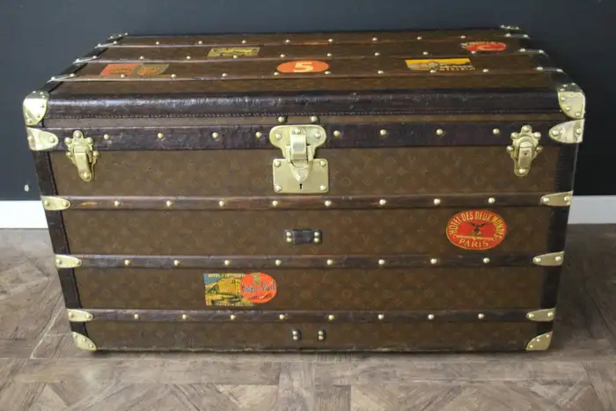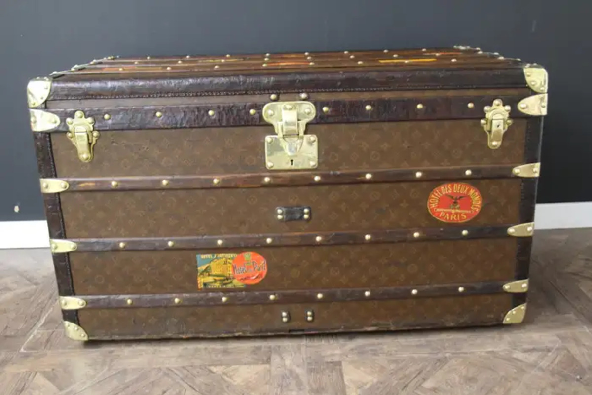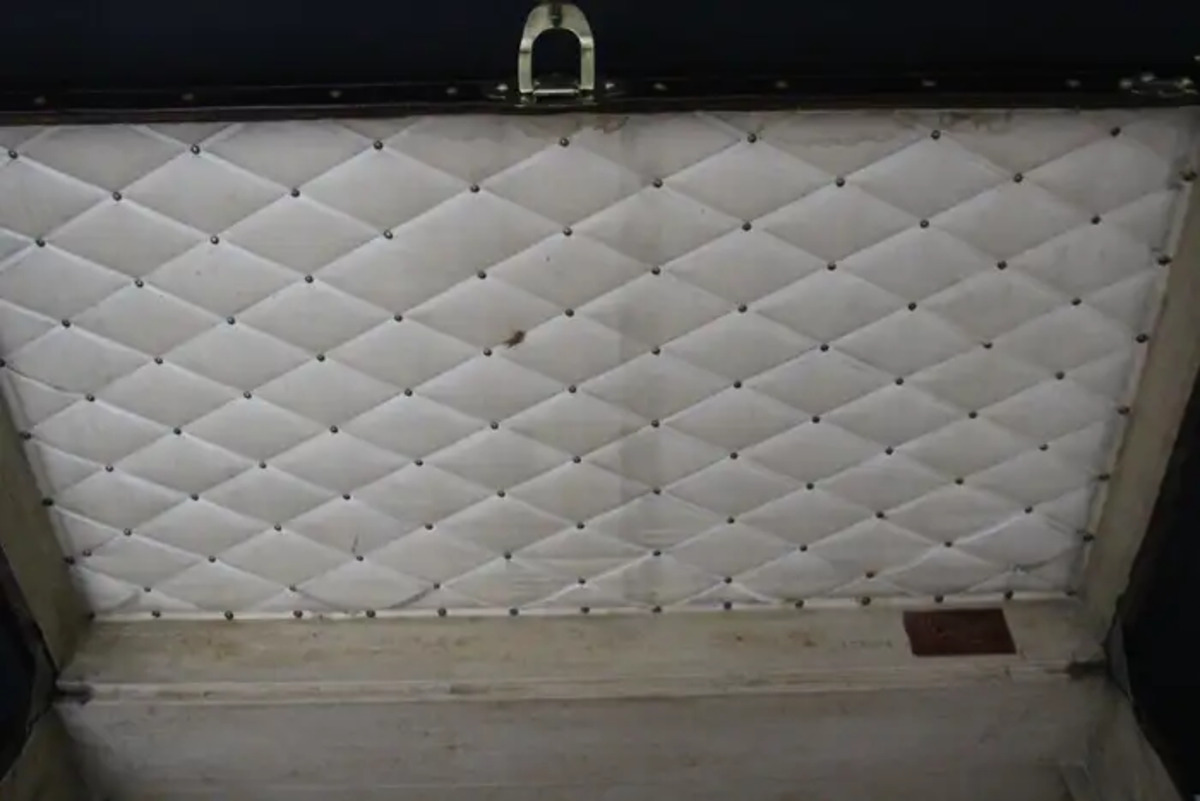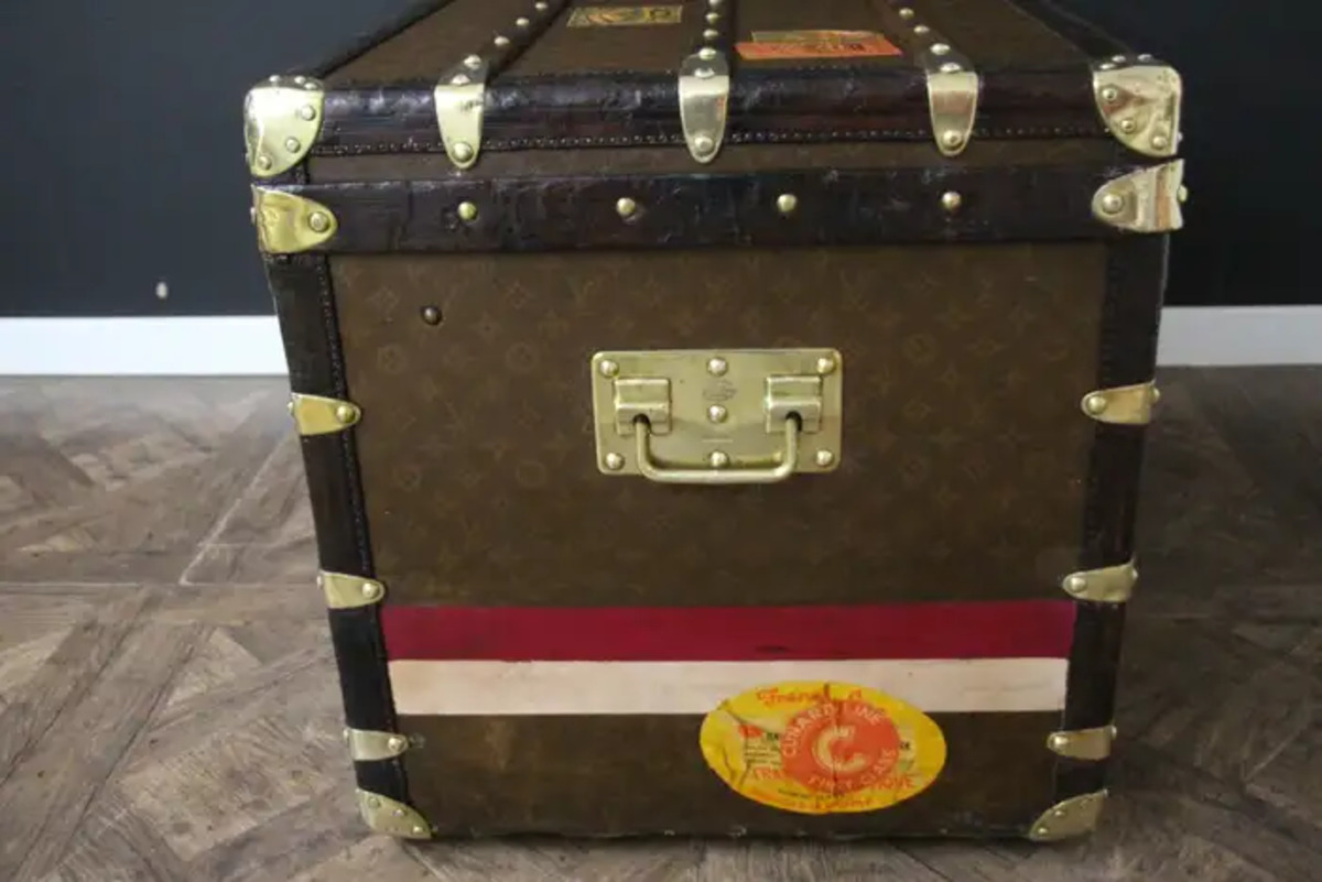 Cette malle Vuitton offre une belle patine d’origine aussi chaleureuse qu’élégante. Ses nombreux labels de voyage ajoutent un aspect très spécial et unique à cette magnifique malle. L’intérieur est également d’origine et complet avec son plateau amovible. Il possède encore son label intérieur Louis Vuitton et son numéro de série.