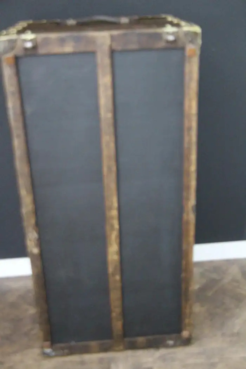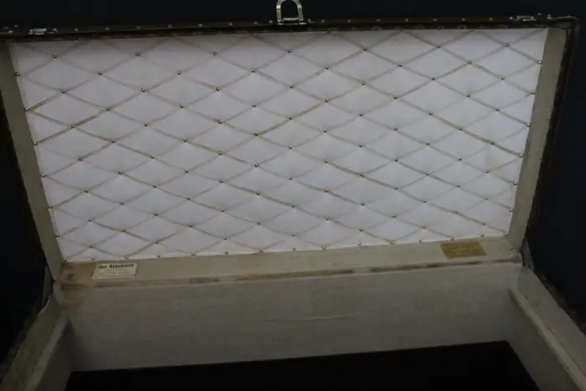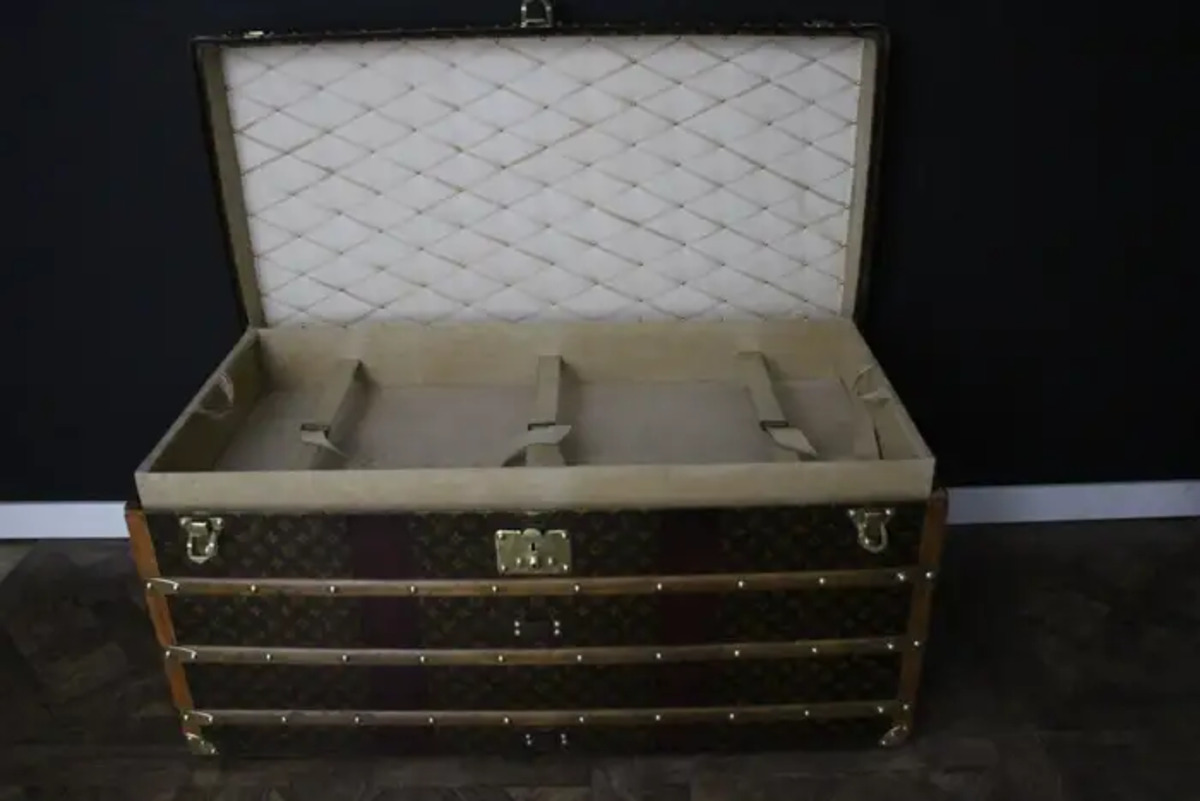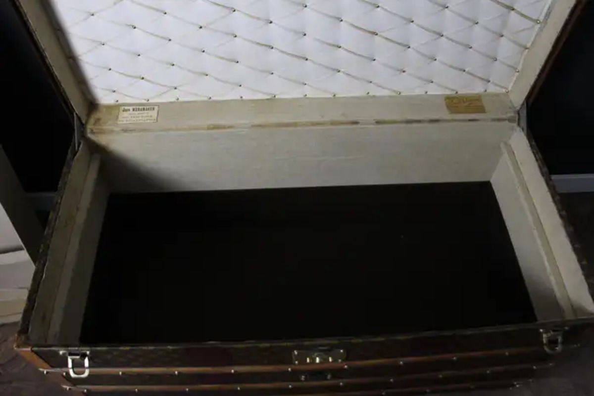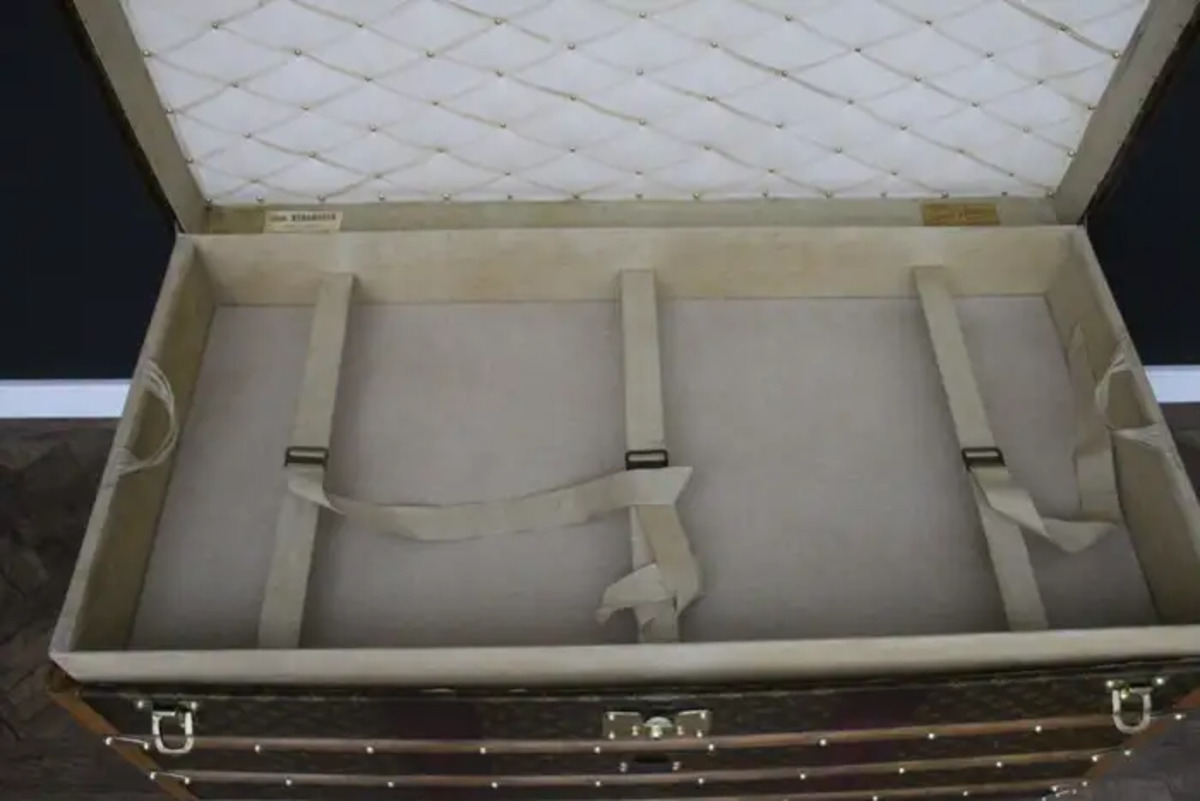 Cette très belle malle Vuitton présente une belle patine d’origine et est très élégante. Son intérieur est entièrement d’origine à l’exception du capiton du capot et du fond qui ont été refaits il y a quelques années. Néanmoins, elle dispose toujours de son plateau amovible Louis Vuitton d’origine ainsi que son étiquette intérieure Louis Vuitton et son numéro de série.