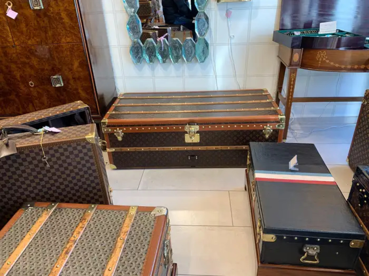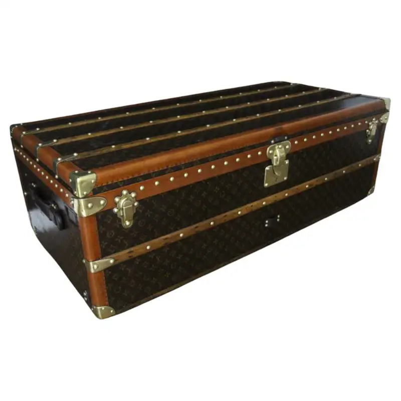 Il est également doté d’un plateau intérieur amovible. Son fond a conservé sa toile monogramme d’origine. Cette très belle malle Vuitton peut être placée en table basse très élégante ou comme bout de lit..