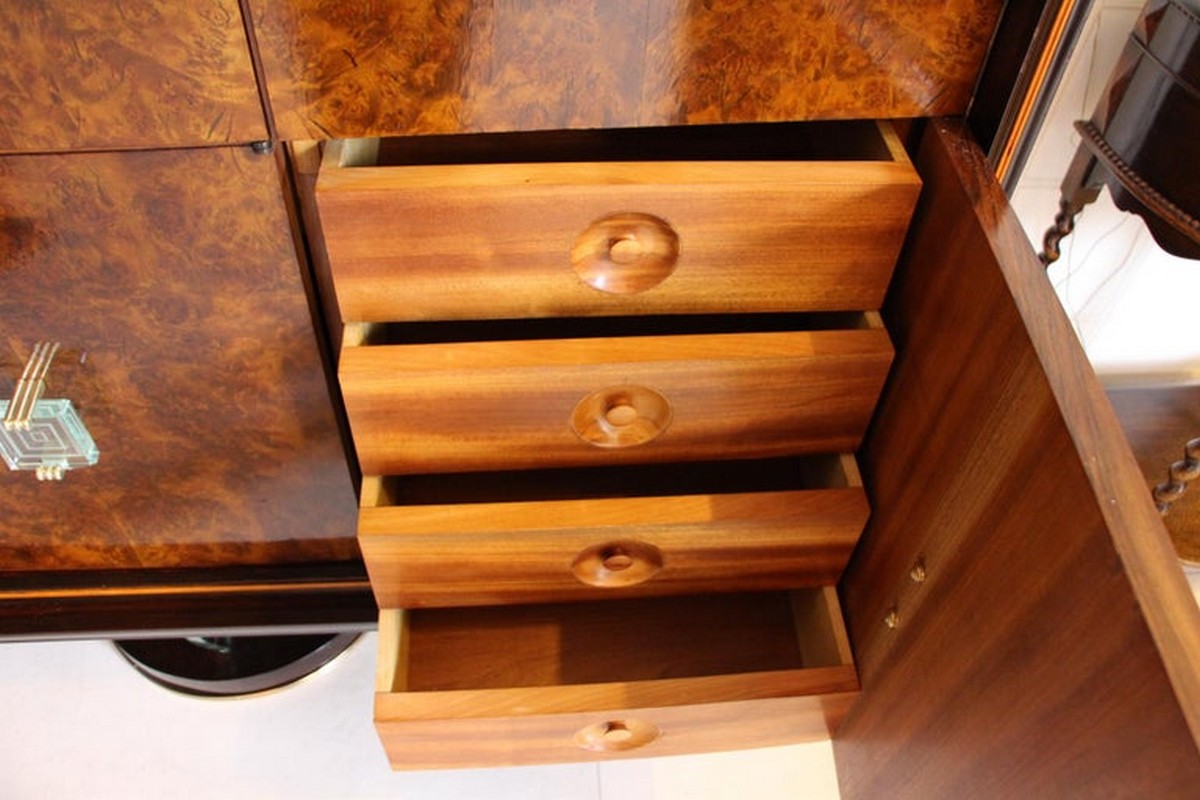 Ce meuble bar Art déco est un véritable chef-d’œuvre italien de l’époque, en très bon état avec de légères marques d’usure dues à l’âge et à un usage modéré.