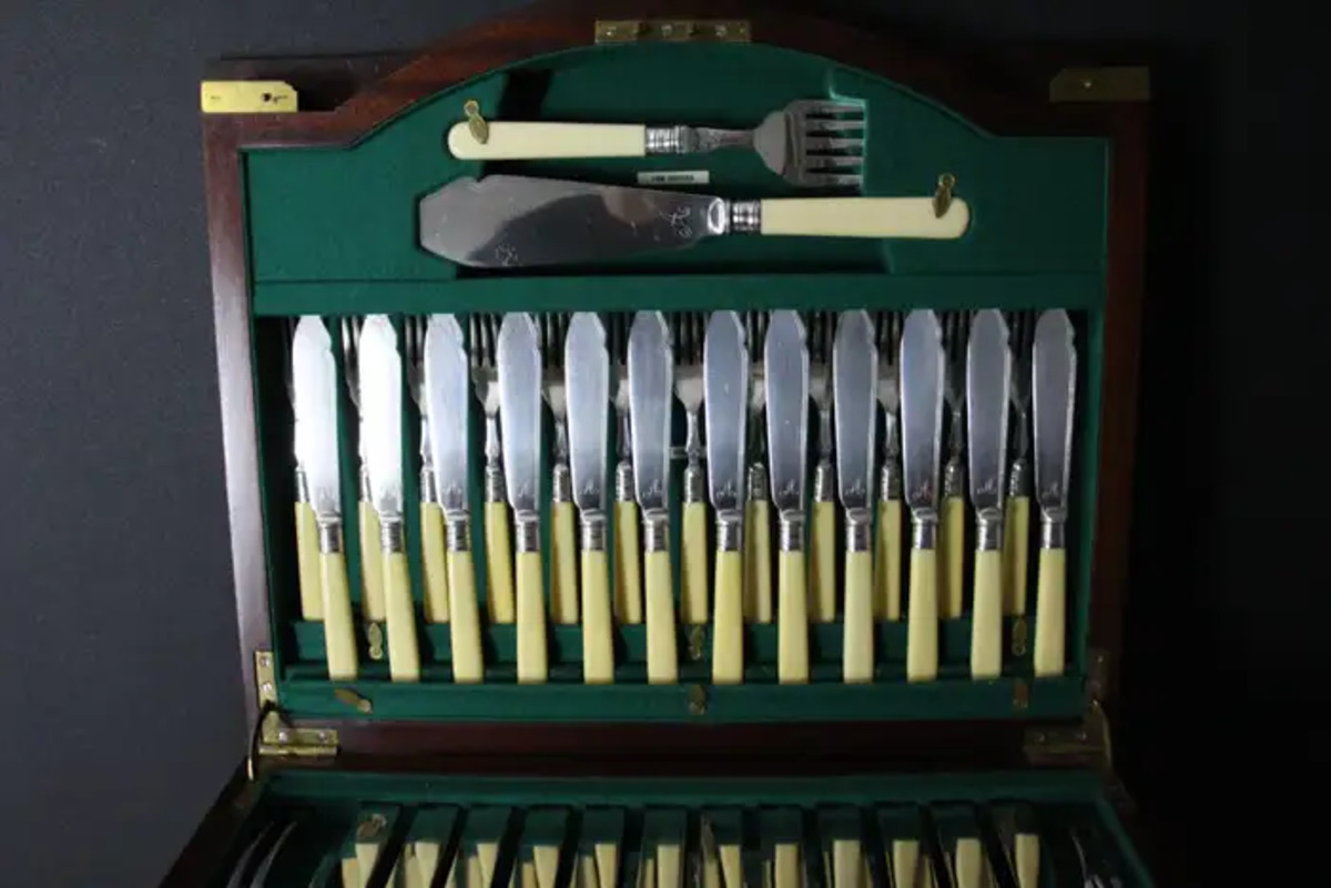 Il s’agit d’un service de 12 couverts comprenant 105 pièces, fabriqué par John Round and Sons de Sheffield.