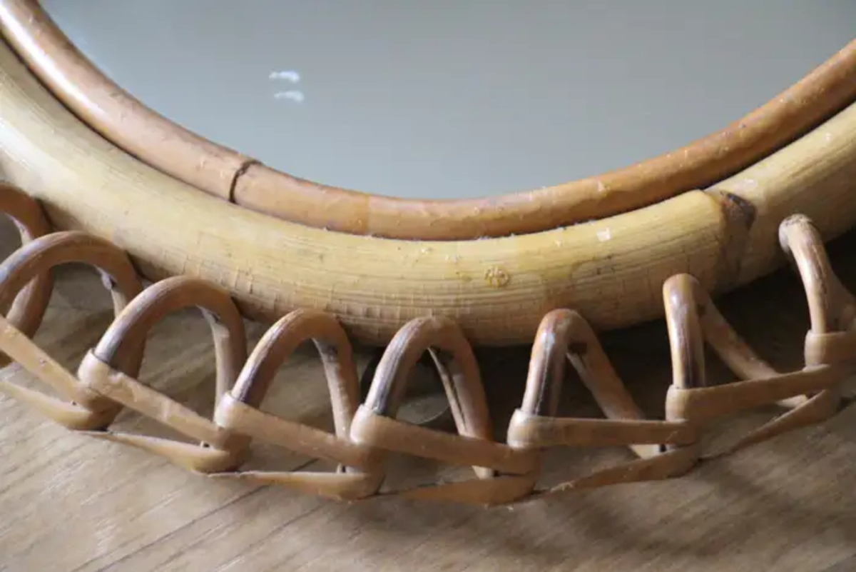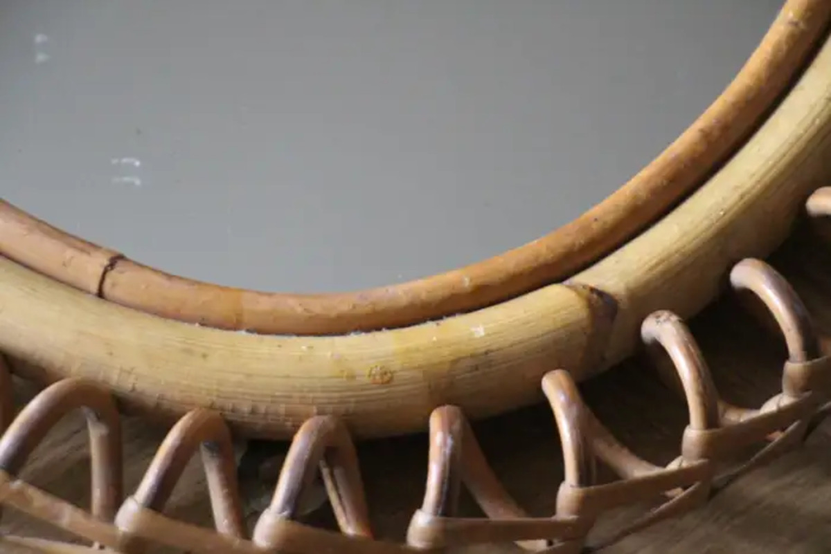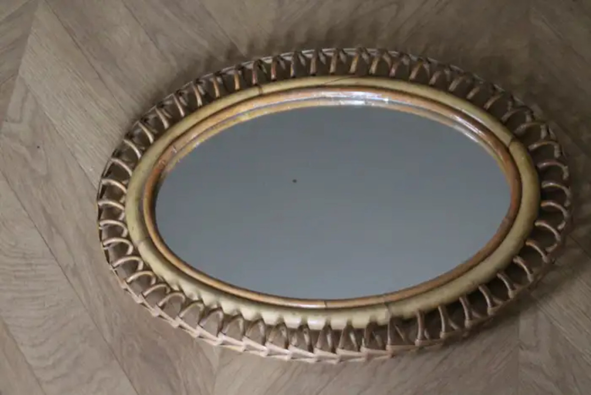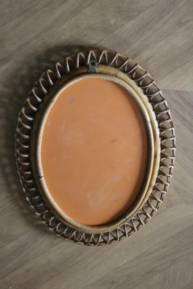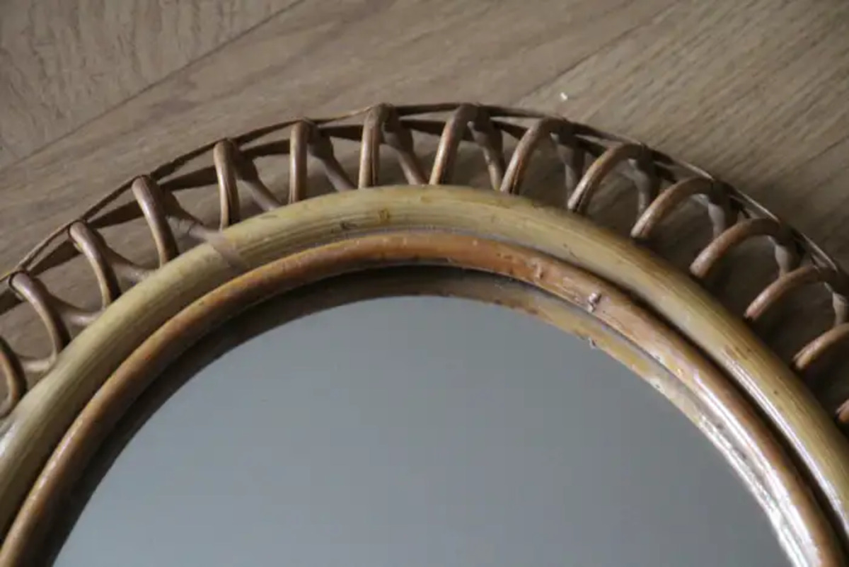Miroir mural oval Vintage des années 60 en Rotin et Bambou par Franco Albini