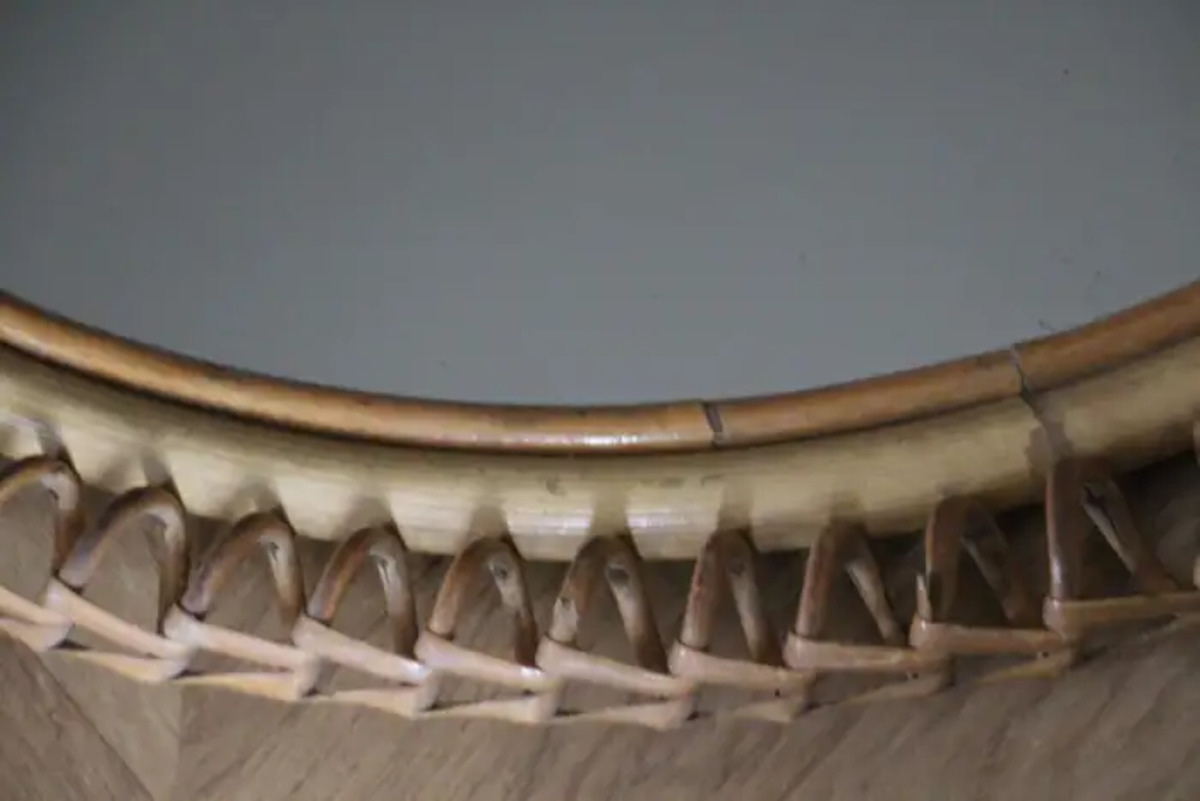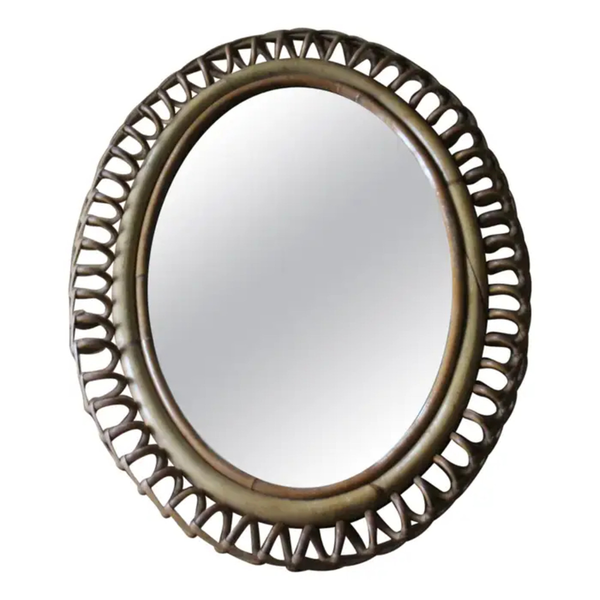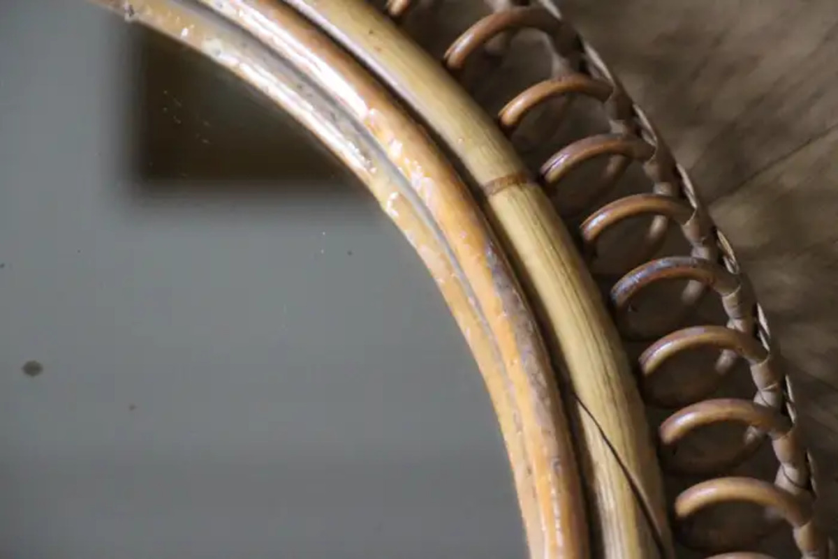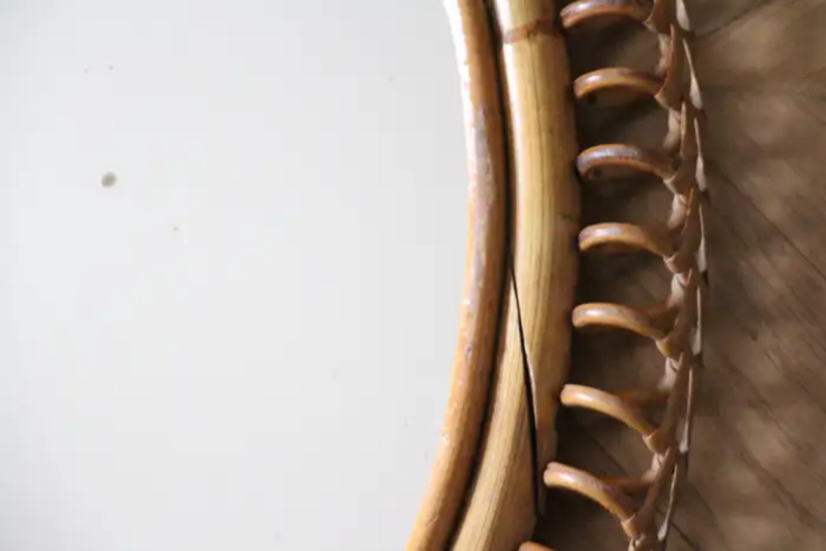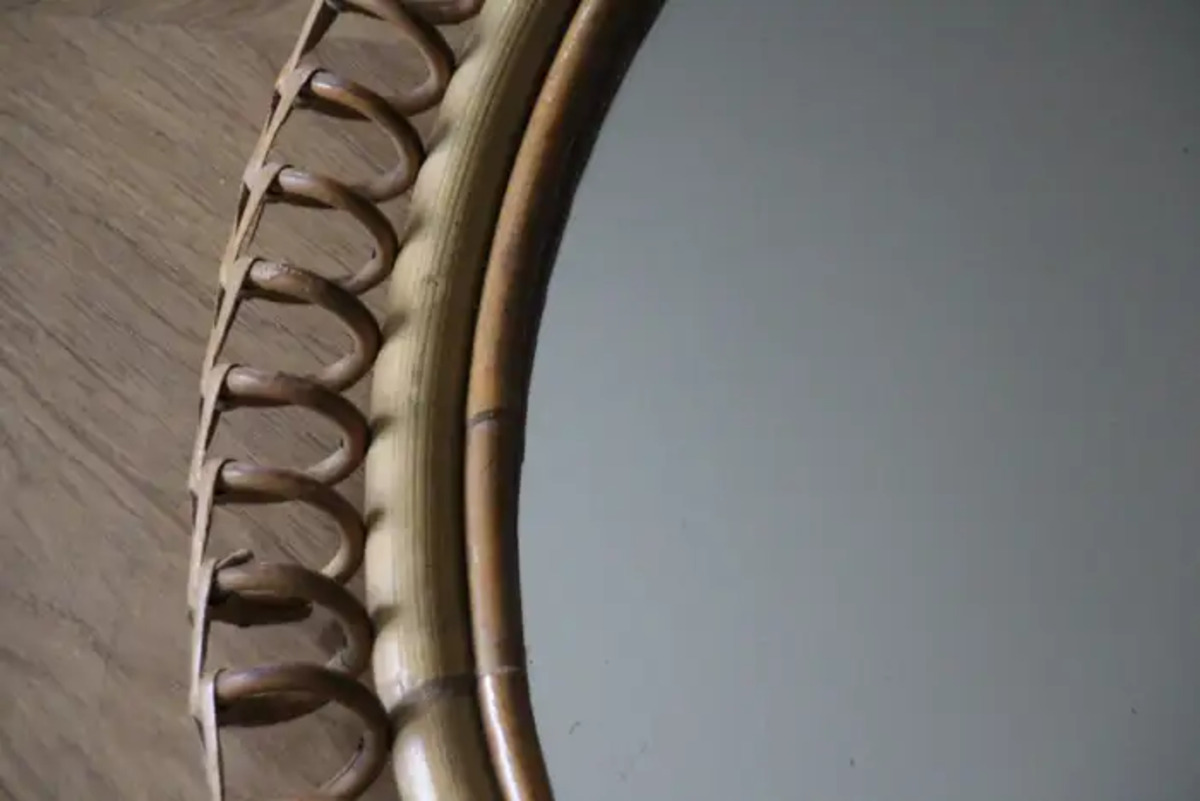 Miroir mural oval Vintage des années 60 en Rotin et Bambou par Franco Albini