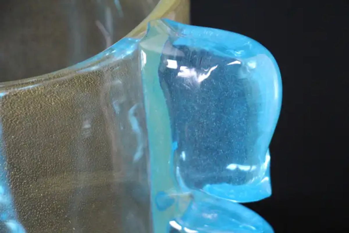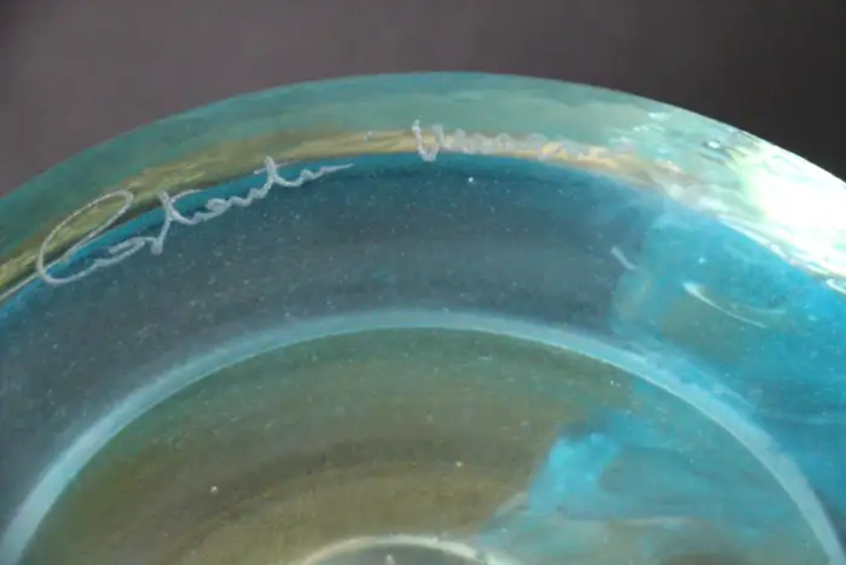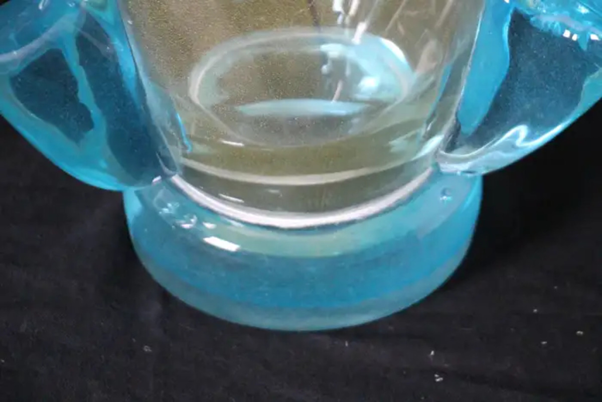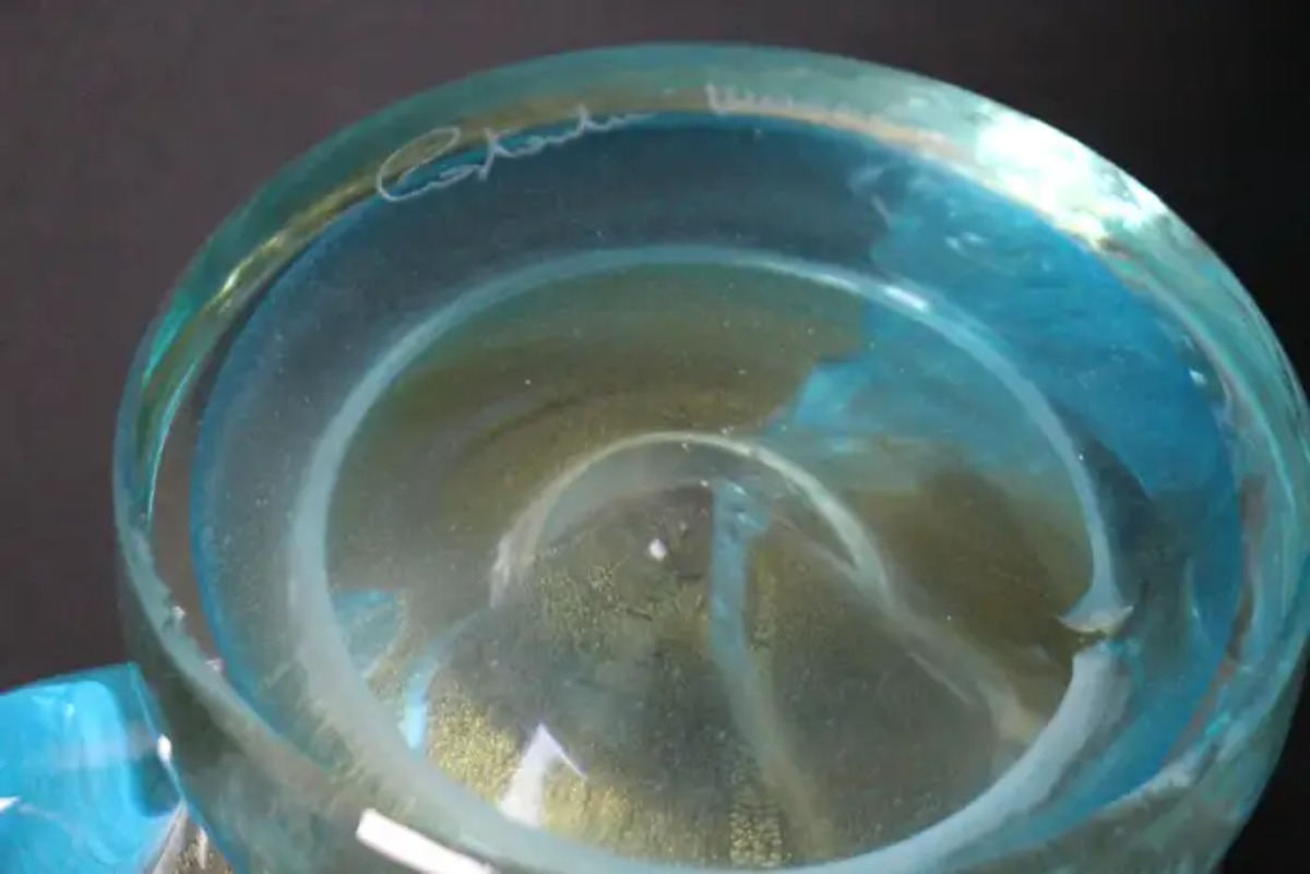 Elles sont composées de 3 généreux festons en verre bleu turquoise, qui ressemblent à des ailes stylisées et leur donnent une allure aérienne. Leur base est également en verre bleu.