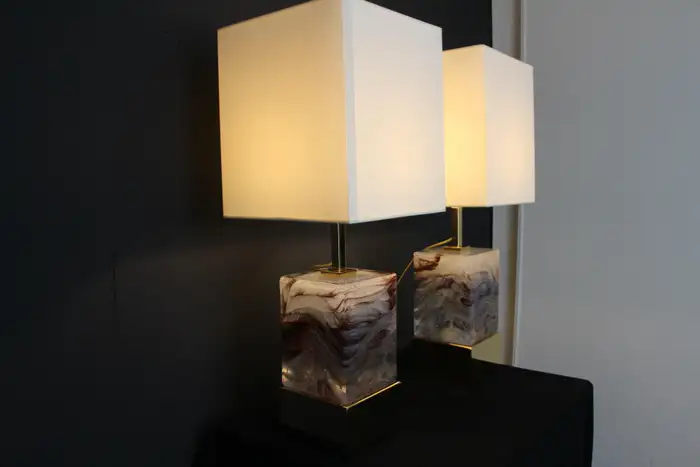 Les lampes de table design moderne reposent sur une base en laiton carré poli, ajoutant à leur élégance. Leur esthétique moderne s’harmonise parfaitement avec différents styles d’intérieurs, qu’ils soient classiques, modernes ou de type “mid-century”. Leur look résolument contemporain et leur couleur leur confèrent une personnalité singulière, captivant le regard et suscitant l’admiration.