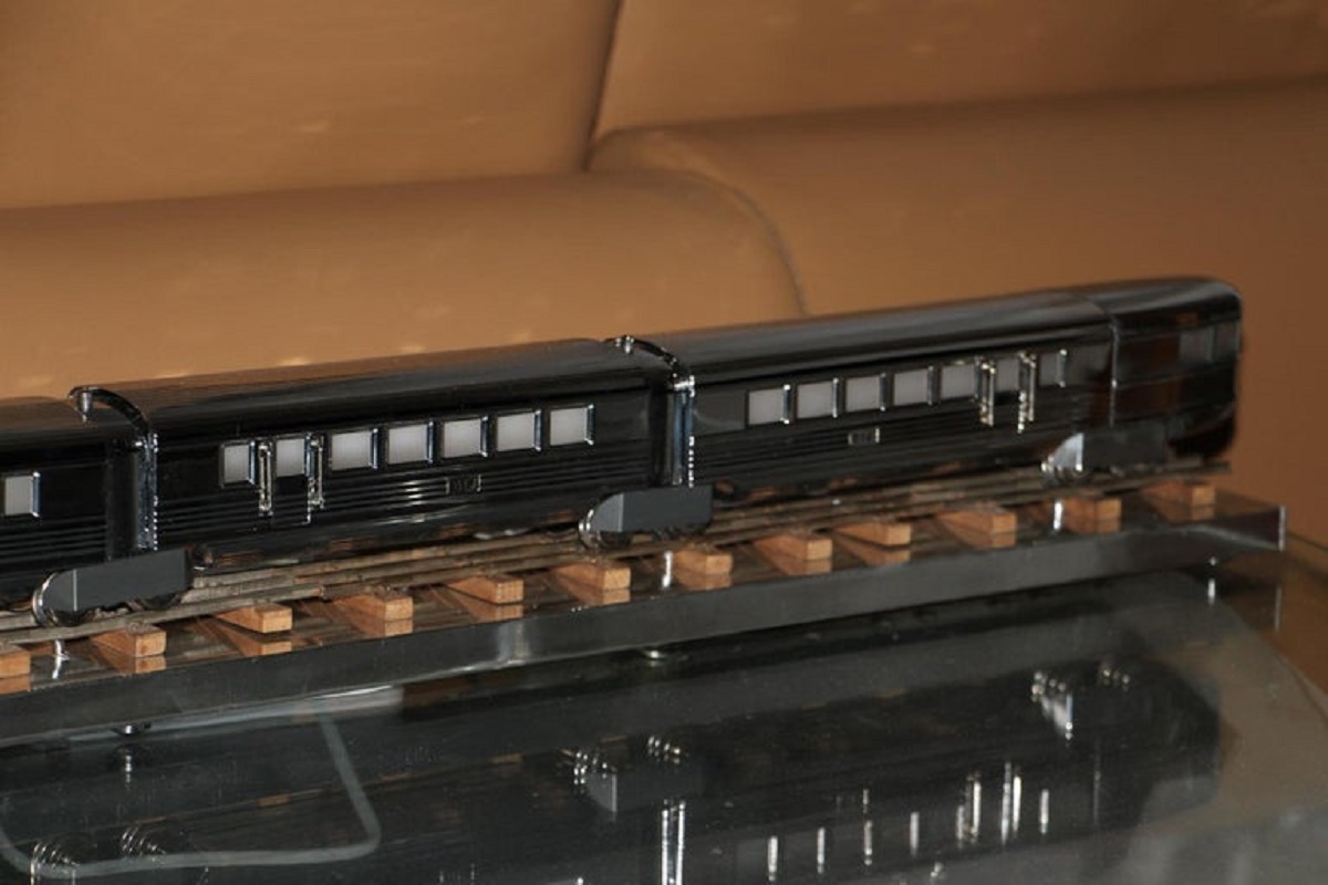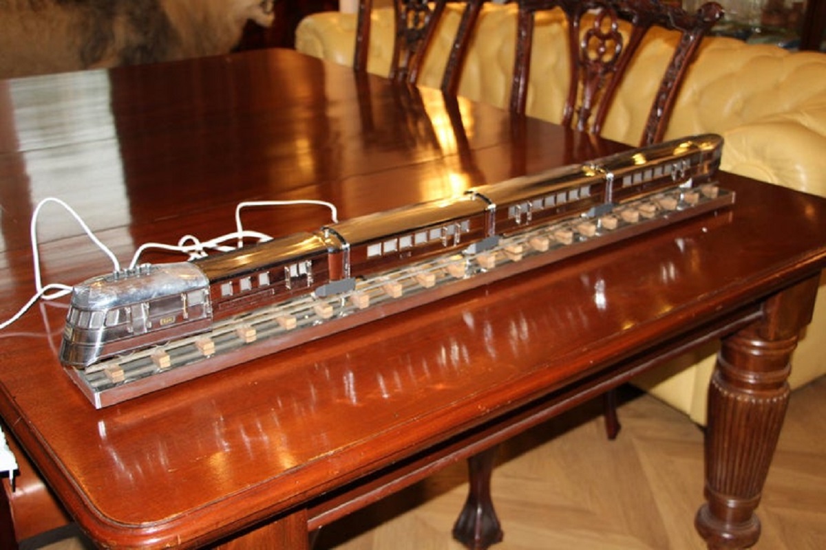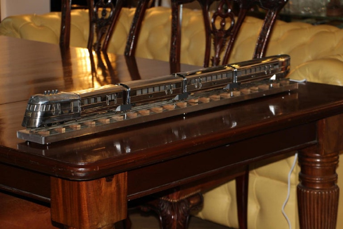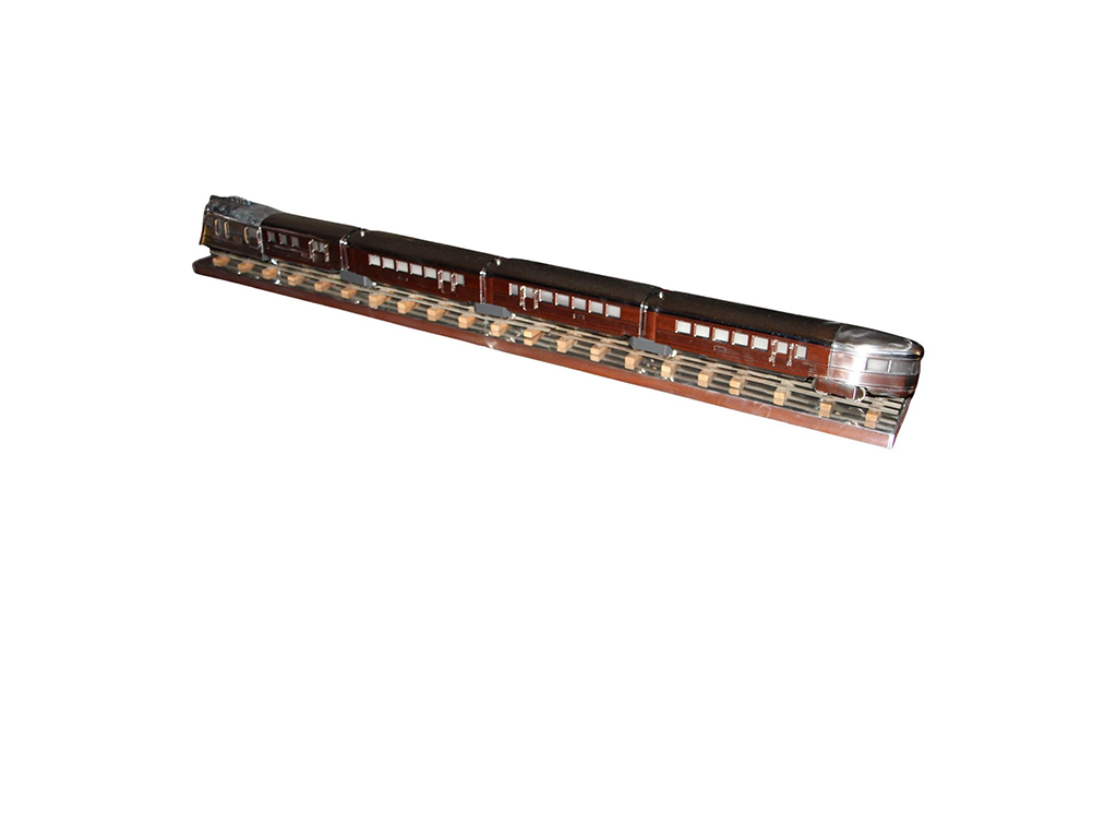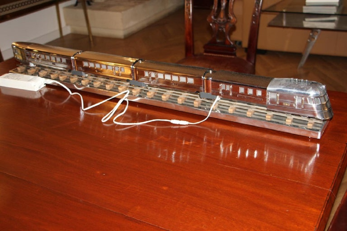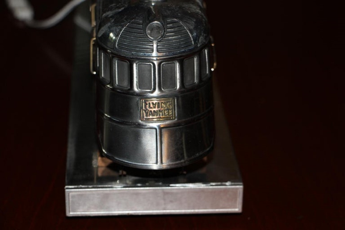 Ce modèle de train miniature en aluminium poli très inhabituel est équipé de lumières LED à l’intérieur et constitue une lampe de table spectaculaire et magnifique. C’est une pièce très rare et décorative qui peut être placée dans un bureau, un salon ou même dans une chambre. Il crée un beau décor et surtout il fait une lumière très douce pour créer une ambiance incomparable… Il est fixé sur son pied en aluminium poli pour un beau résultat.